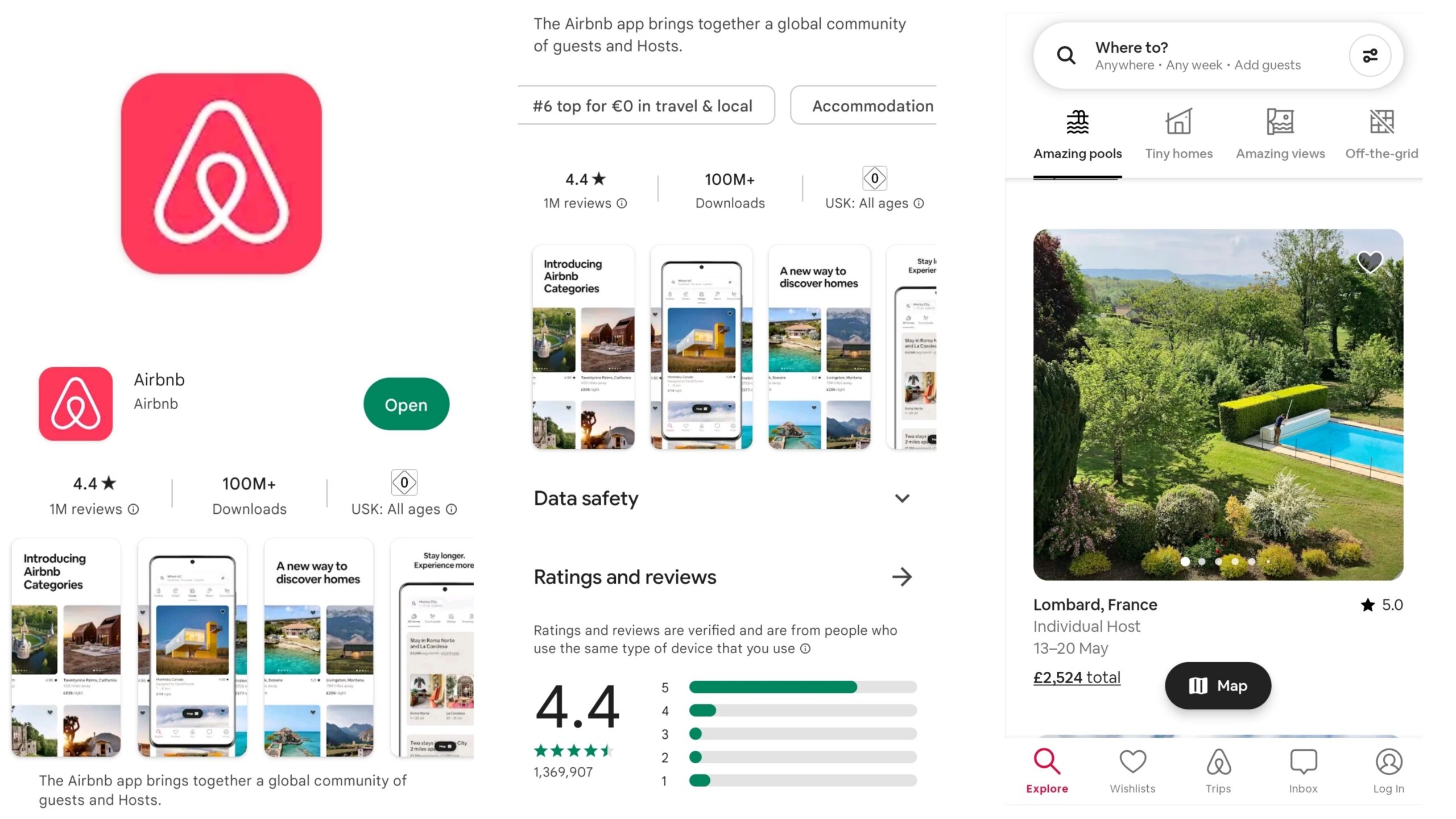 Tot pentru rezervări folosim și Airbnb. Platforma pune la dispoziție case sau camere pentru închiriat în 191 de țări. Puteți personaliza căutarea după preț, limba vorbită, zonă și facilități din apropiere. Noi am închiriat atât întreaga locație, cât și cameră privată în casa cuiva cu spații comune (ex. baie, bucătărie). Când alegem o cazare pe Airbnb suntem atenți de fiecare dată ca proprietarul să fie Superhost sau să aibă multe recenzii pozitive. Noi folosim aplicația din anul 2016 și am avut rezervări în Franța, Austria, Germania și SUA.