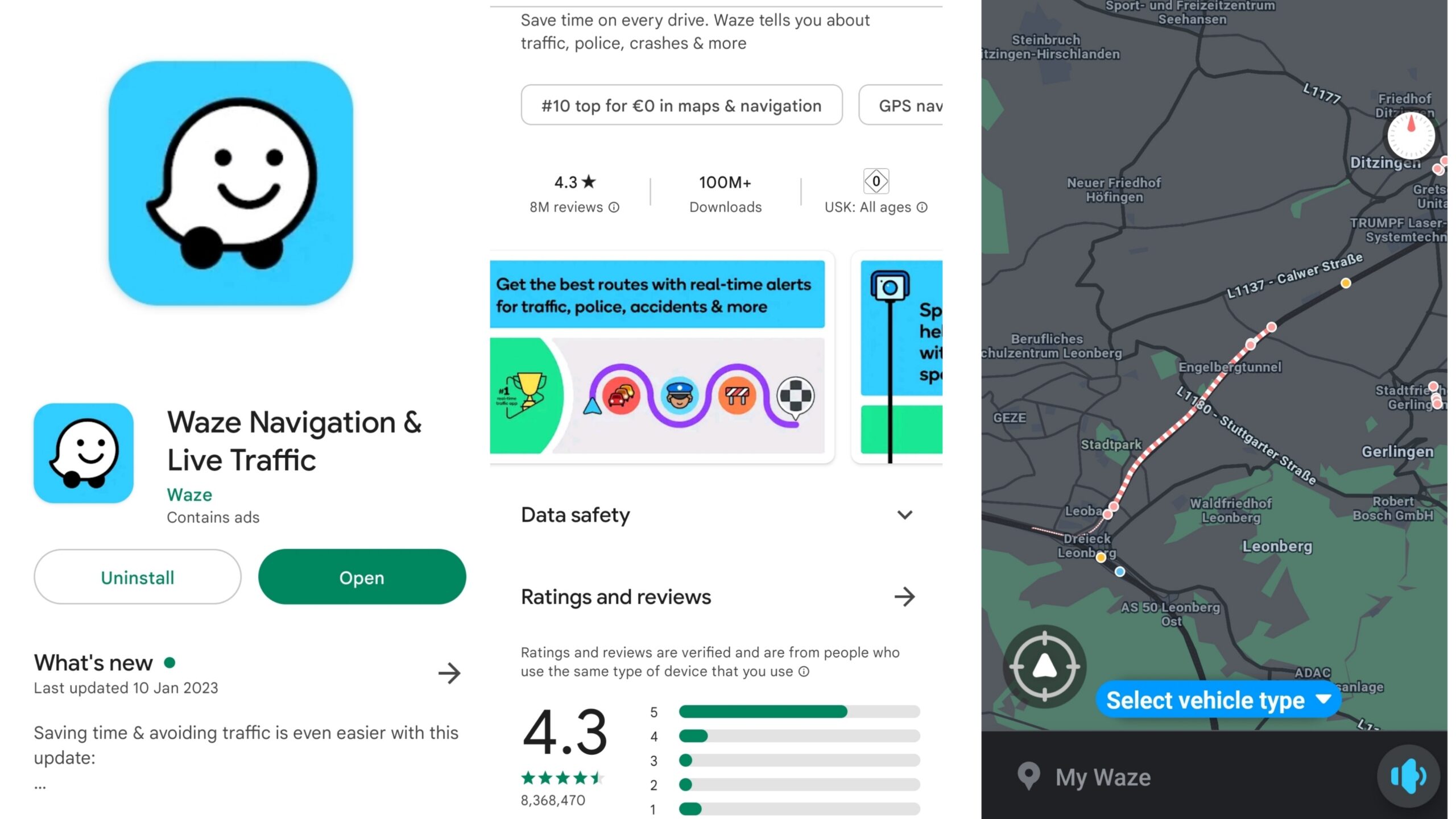 O altă aplicați cunoscută pentru condițiile de trafic și planificarea rutelor este Waze. O mare diferență între Waze și Google Maps este că Waze se bazează pe comunitate, în timp ce Google Maps se bazează pe date. Un plus pentru Google Maps este că oferă indicații atât pentru mers cu mașina, cât și mers pe jos, cu bicicleta sau transportul public.