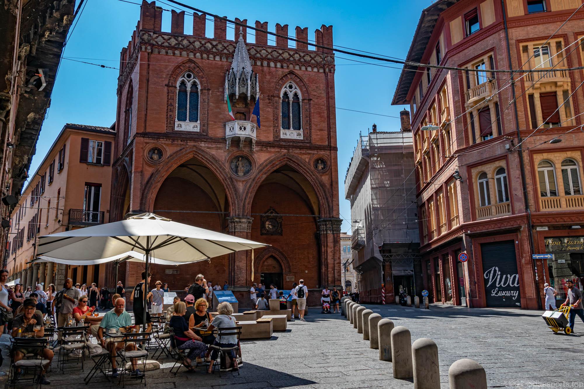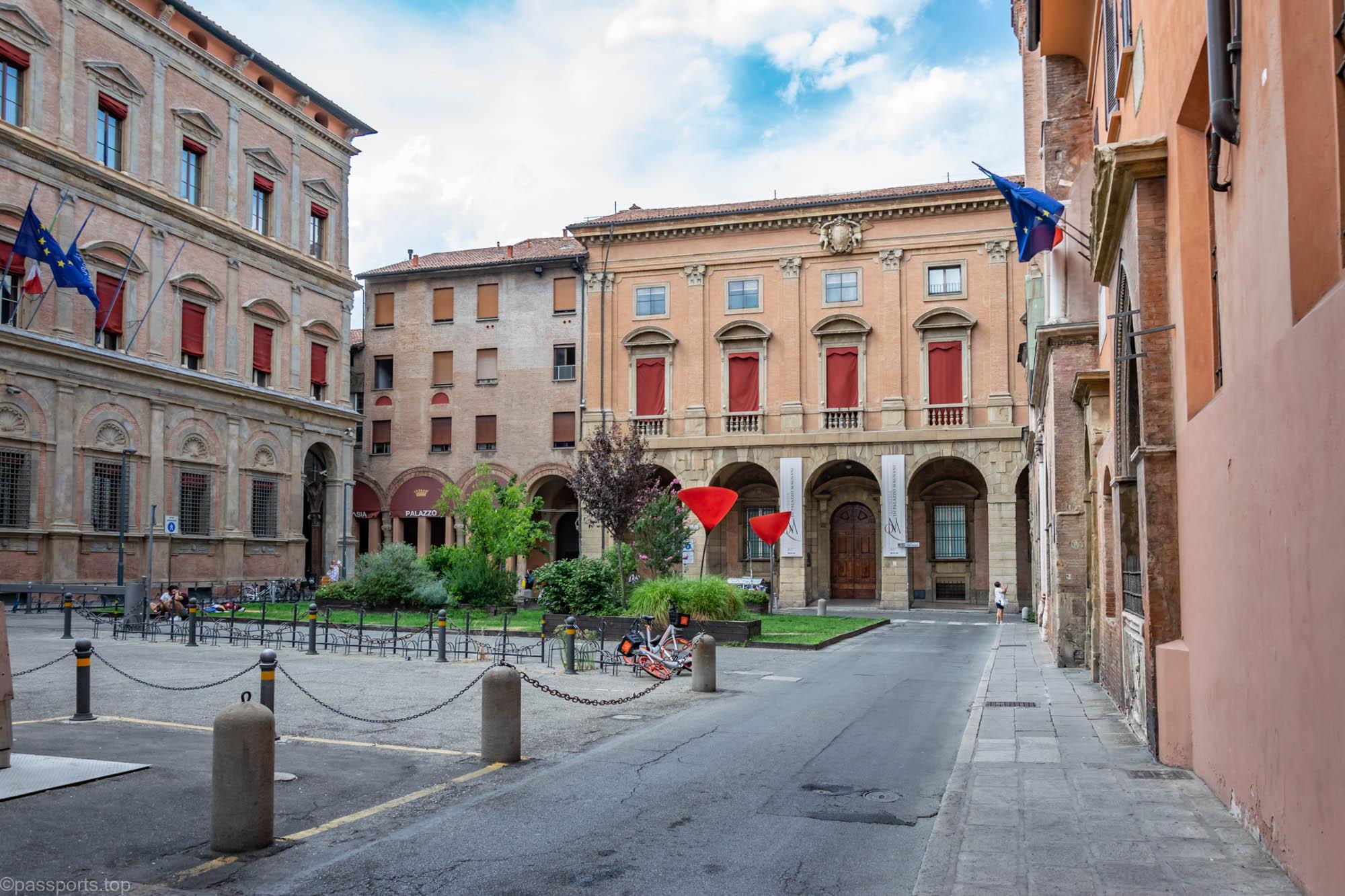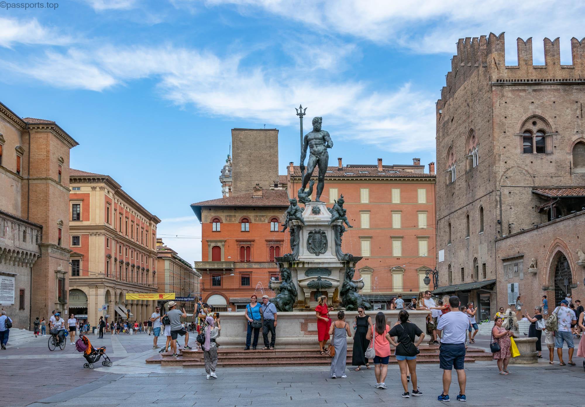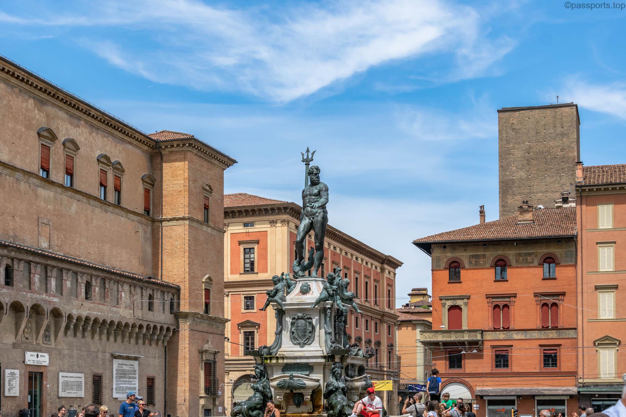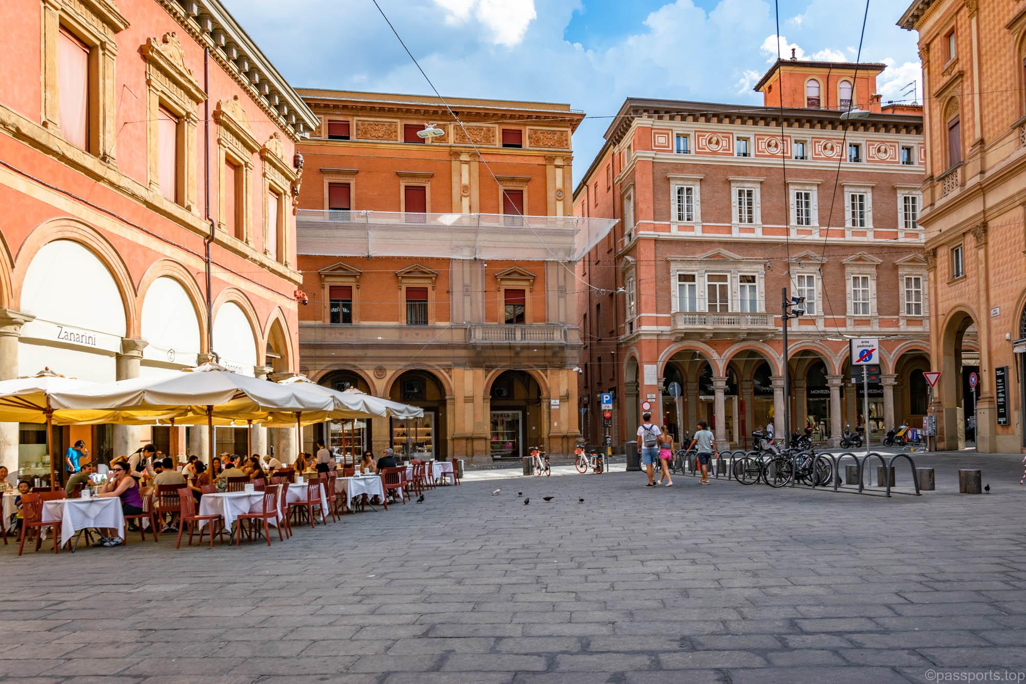 Piazza Maggiore este mărginită de clădiri medievale vechi, inclusiv catedrala principală (Basilica di San Petronio), Palazzo d’Accursio, Palazzo dei Notai, Palazzo del Podestà și Palazzo dei Banchi.
