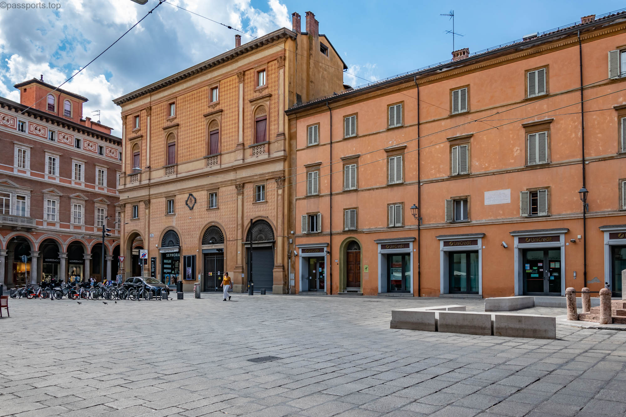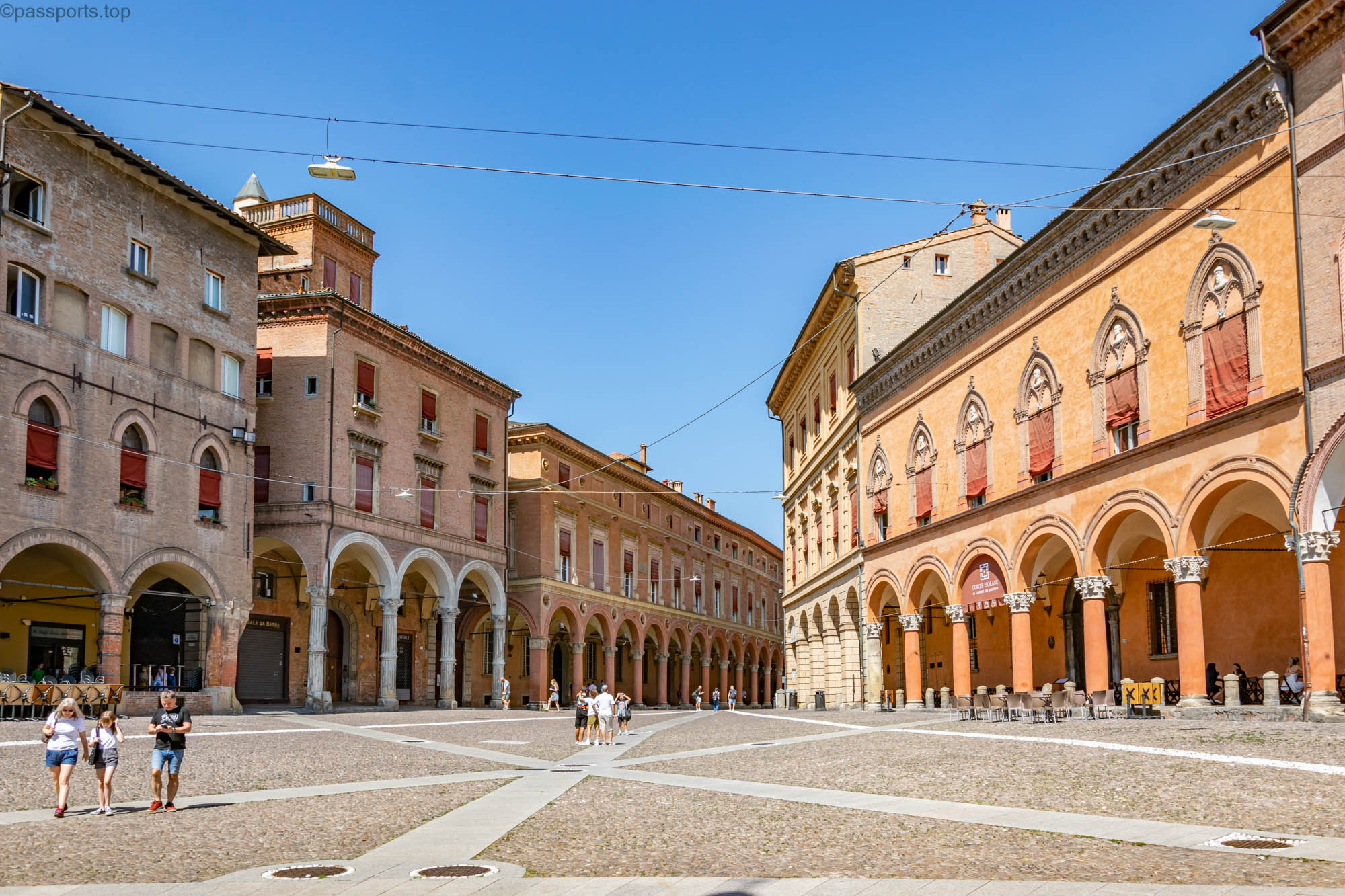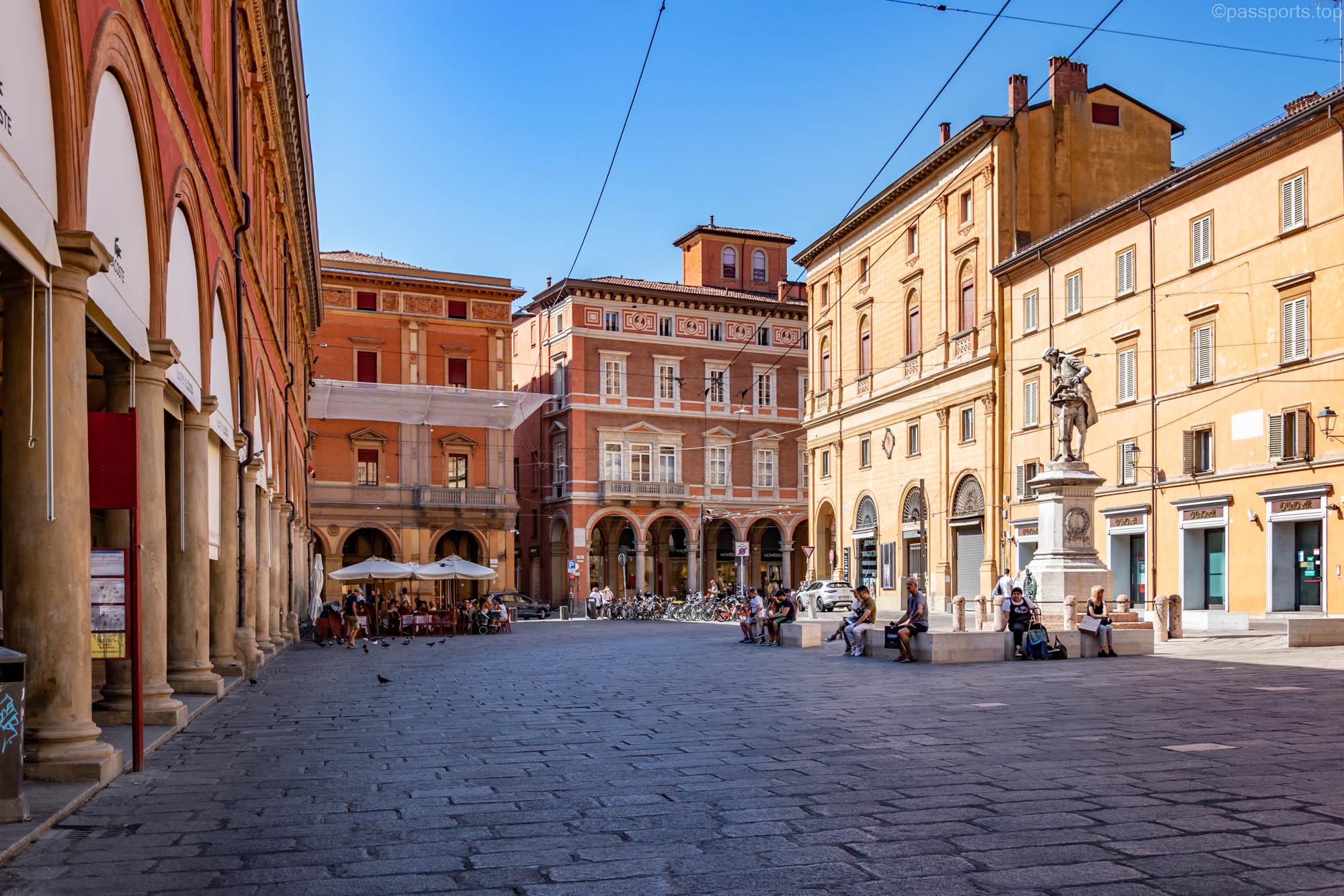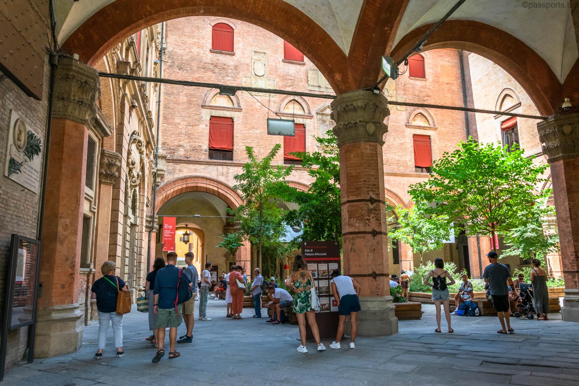 Piazza Maggiore este mărginită de clădiri medievale vechi, inclusiv catedrala principală (Basilica di San Petronio), Palazzo d’Accursio, Palazzo dei Notai, Palazzo del Podestà și Palazzo dei Banchi.