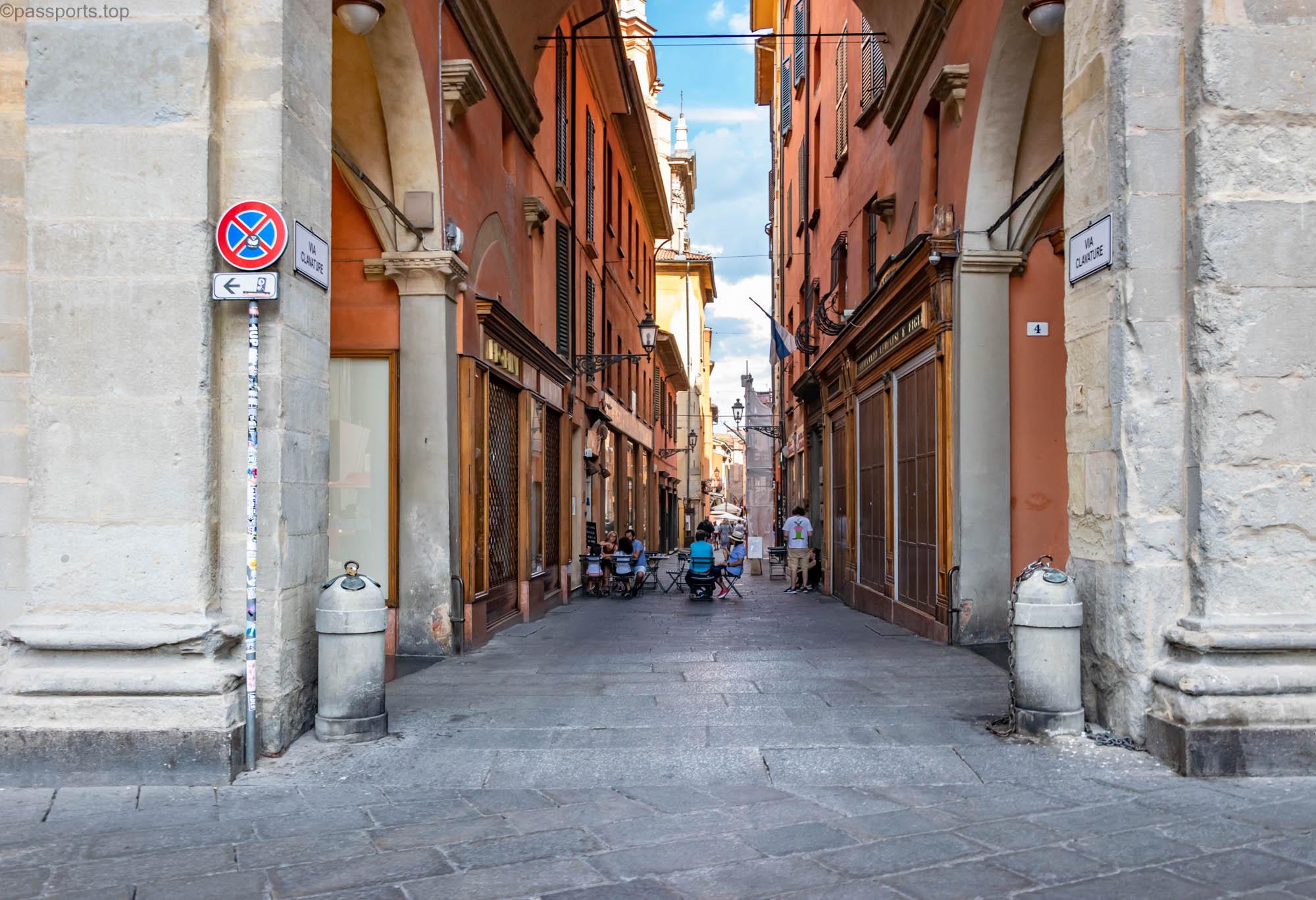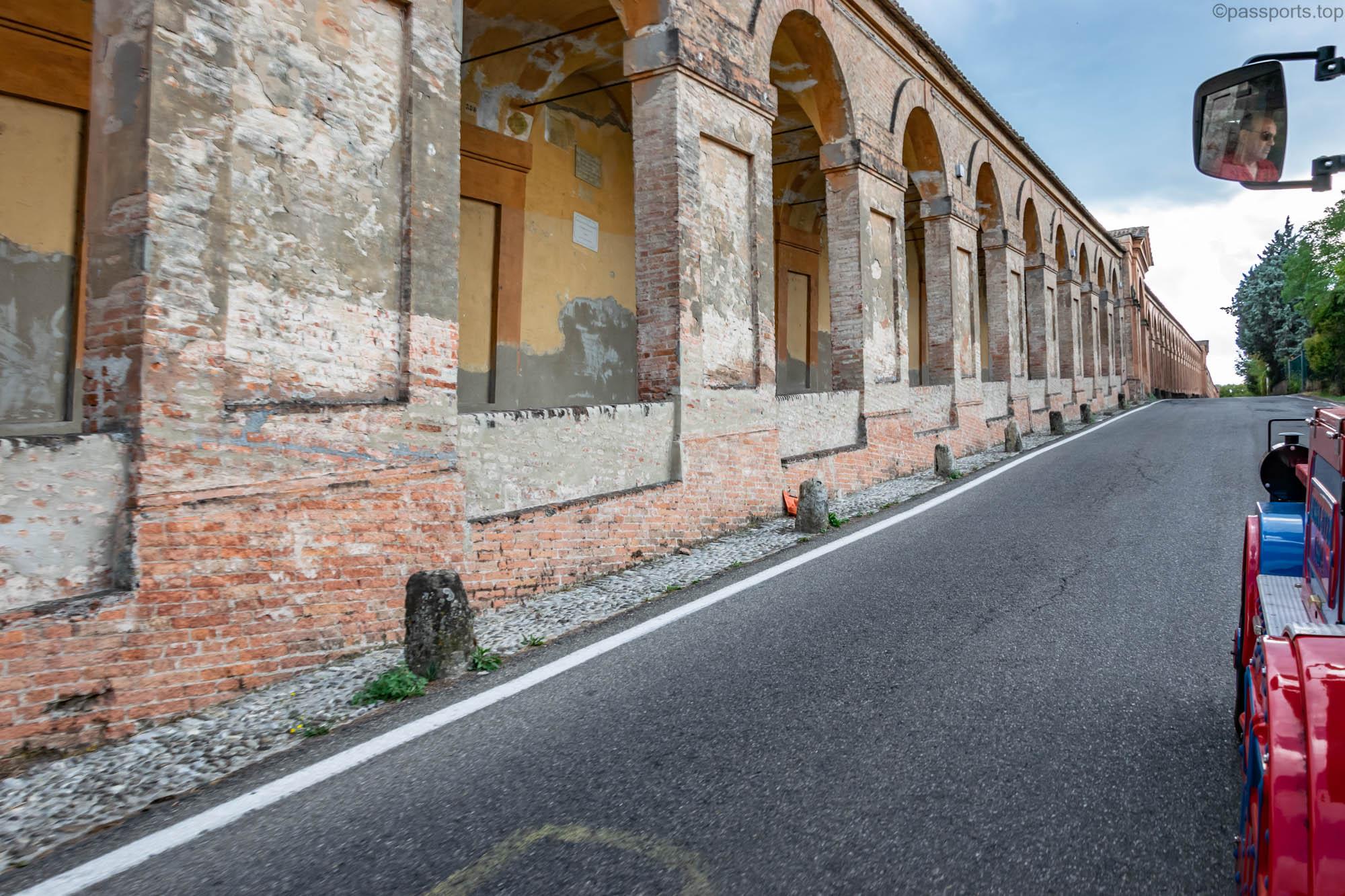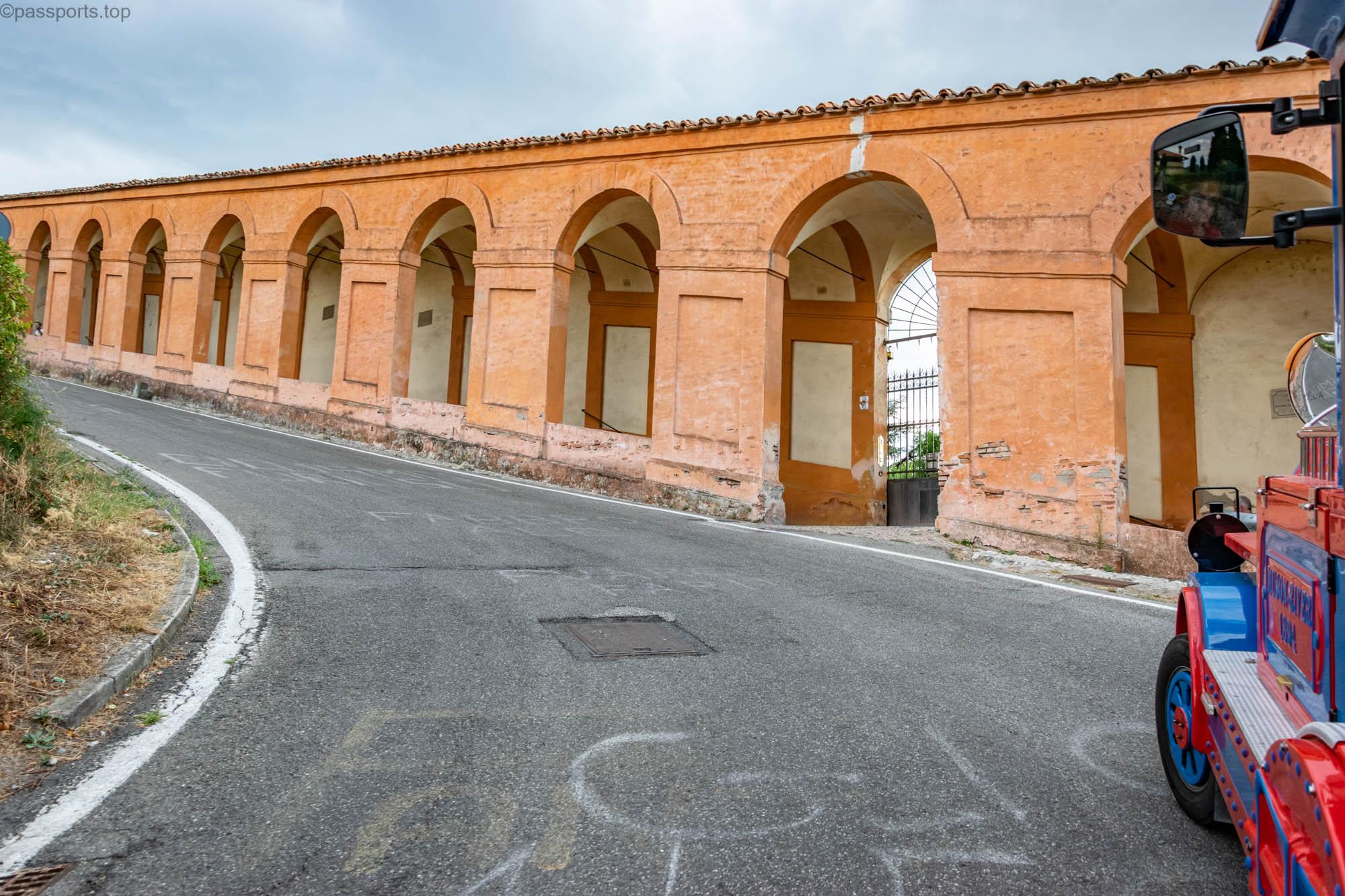 Există numeroase porticuri în jurul orașului, dar cele mai faimoase sunt Arcul Bonaccorsi, porticurile de pe Via Farini și pasarela care duce la Sanctuarul Madonna di San Luca.