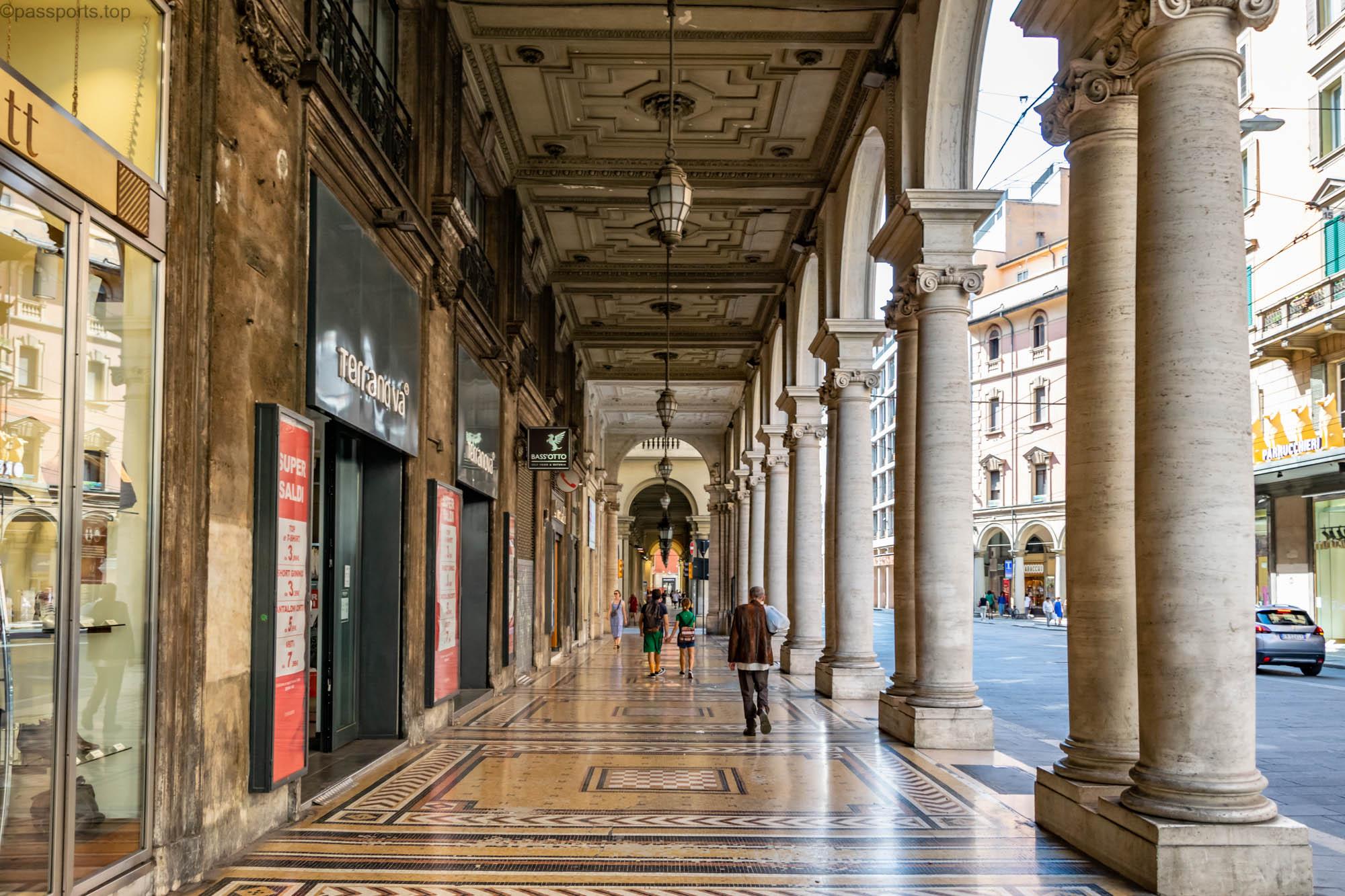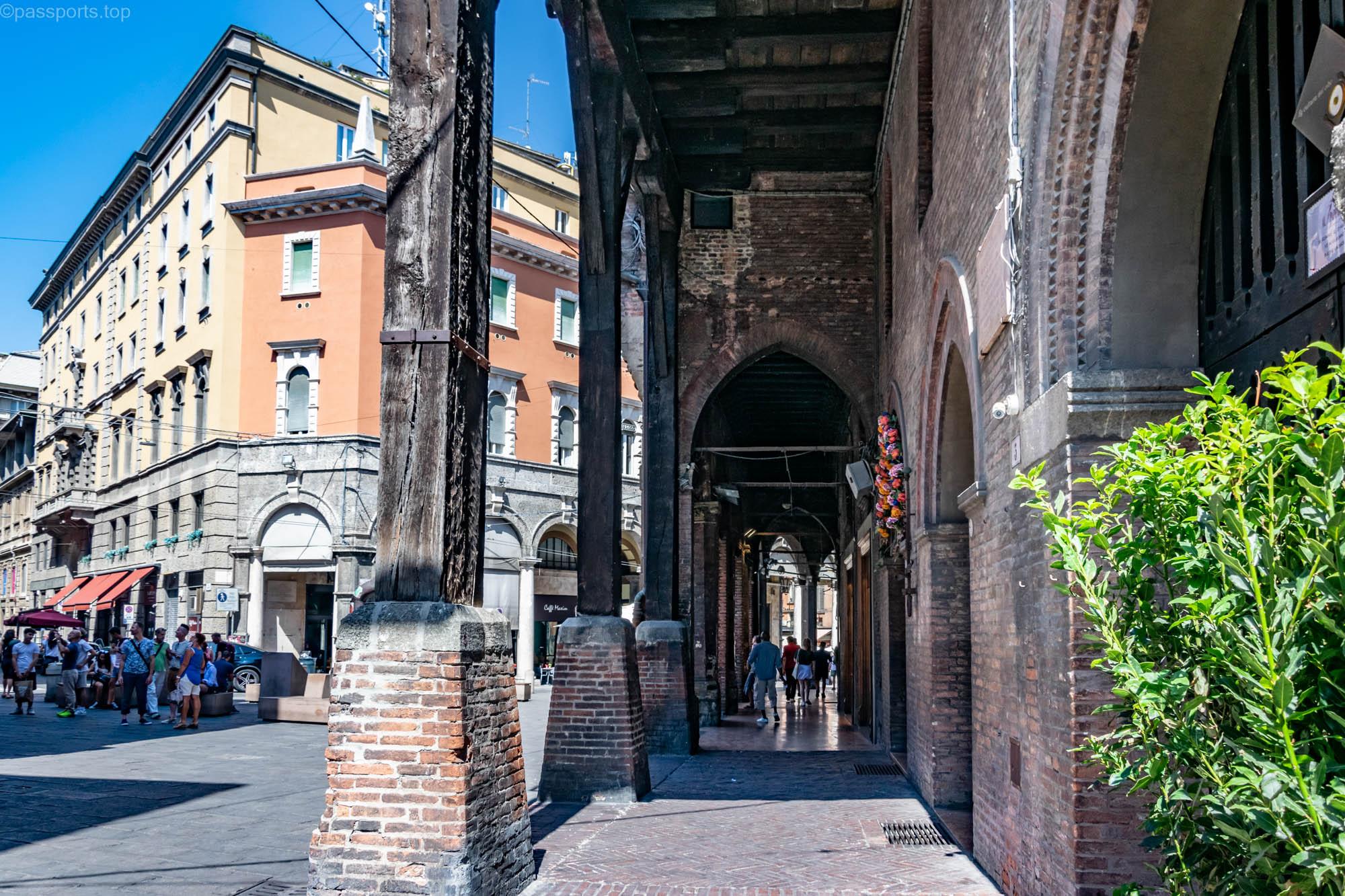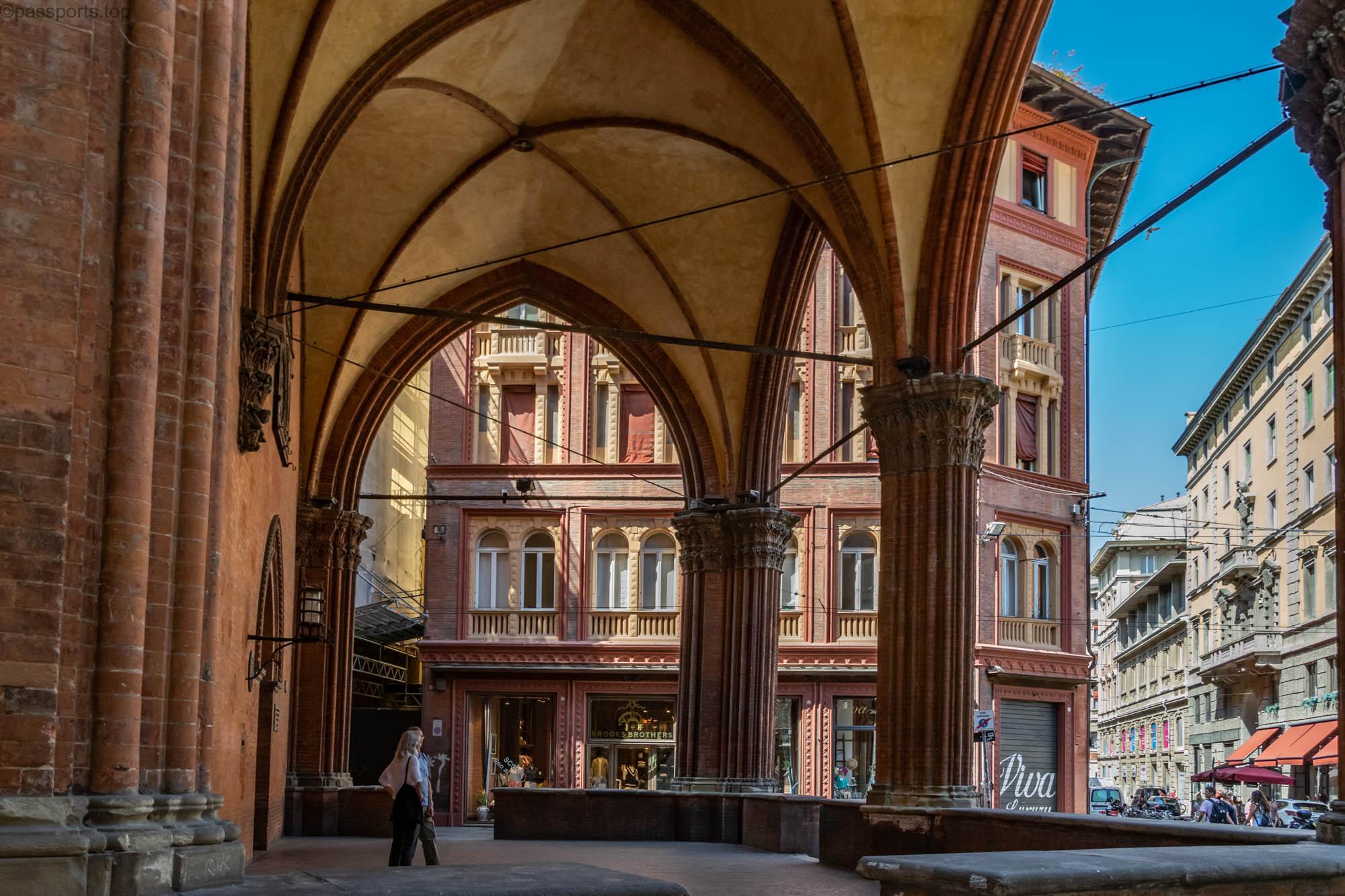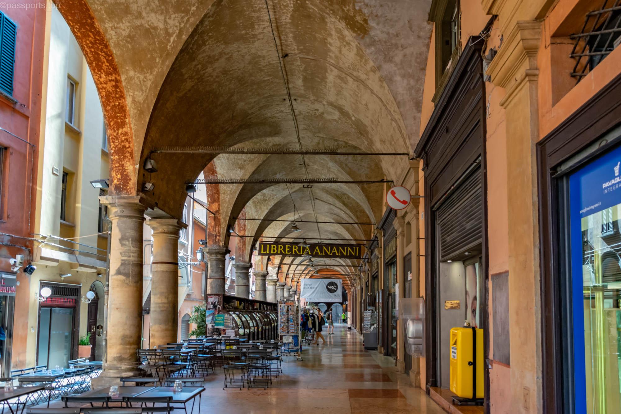 Bologna este renumită pentru porticurile sale extinse, incluse în Patrimoniul UNESCO. Un portic este o pasarelă parțial închisă, căptușită cu arcade și coloane.