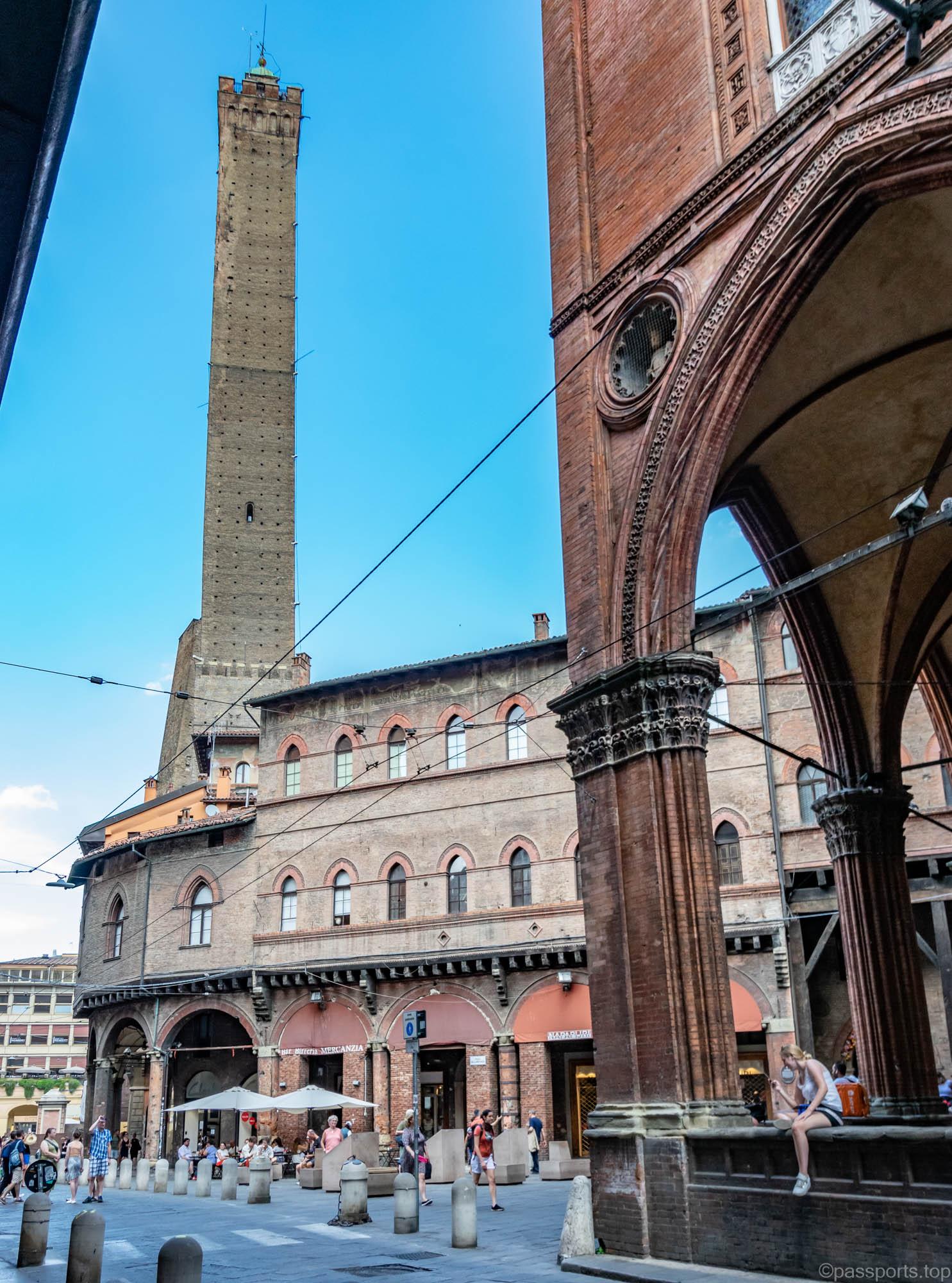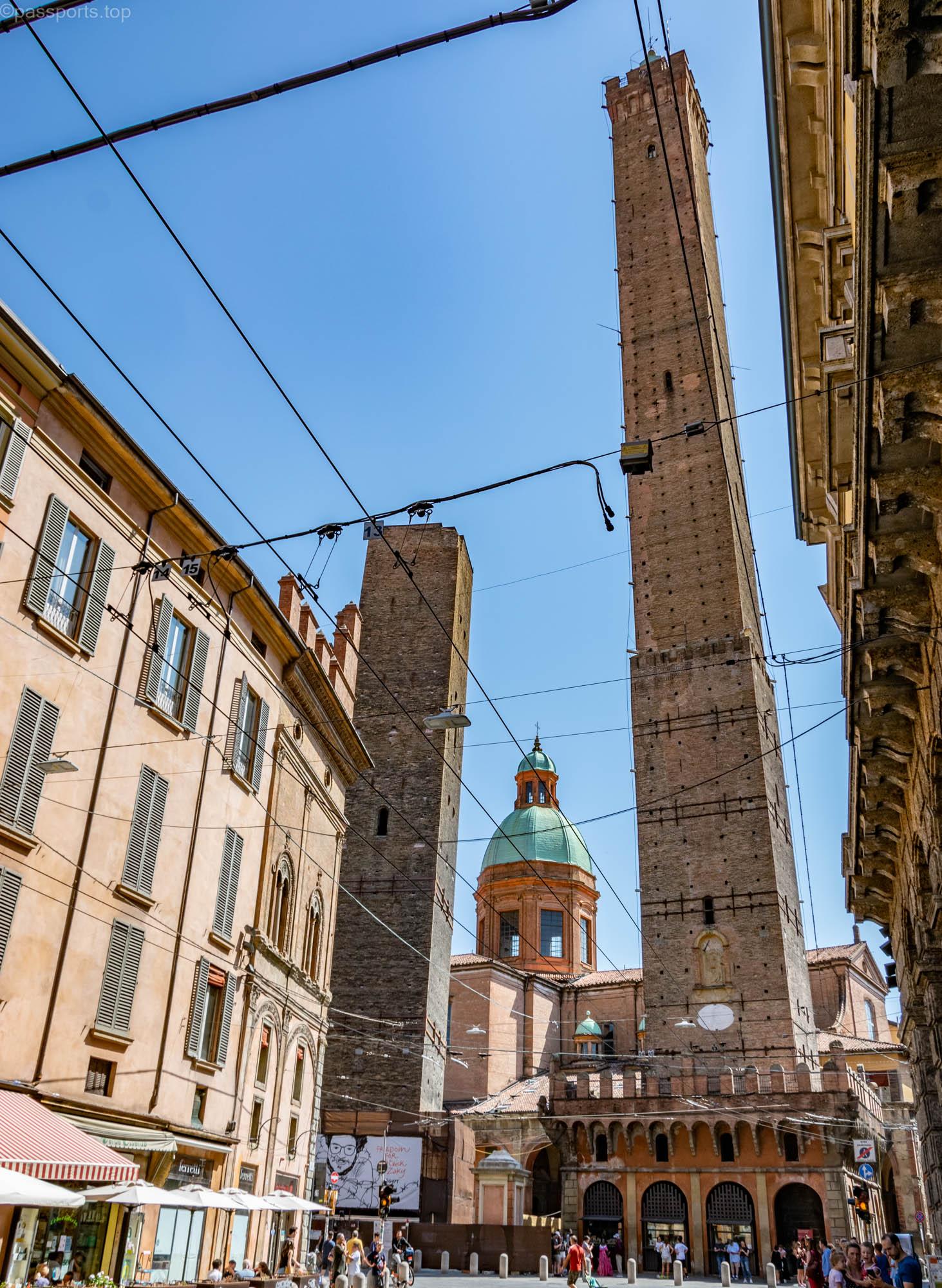 Au fost construite în secolul 12 și din pricina cedării solului au început să se încline. Puteți admira orașul din turnul Asinelli – are 97 metri înălțime și 498 de trepte, iar urcarea costă 5€/persoană.