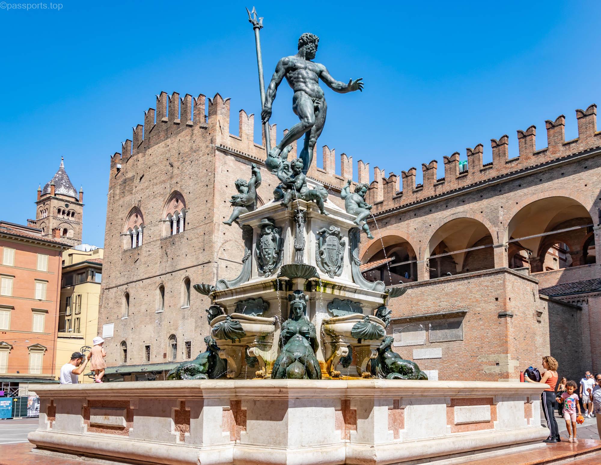 Fântâna lui Neptun se află situată în Piazza del Nettuno. A fost construită din marmură și bronz între 1563 și 1566 și reprezintă simbolul puterii papale: așa cum Neptun domină apele, la fel Papa domină lumea. La bază sunt reprezentate fluviile Nil, Gange, Dunăre și Amazon, râurile principale cunoscute în acea perioadă.
