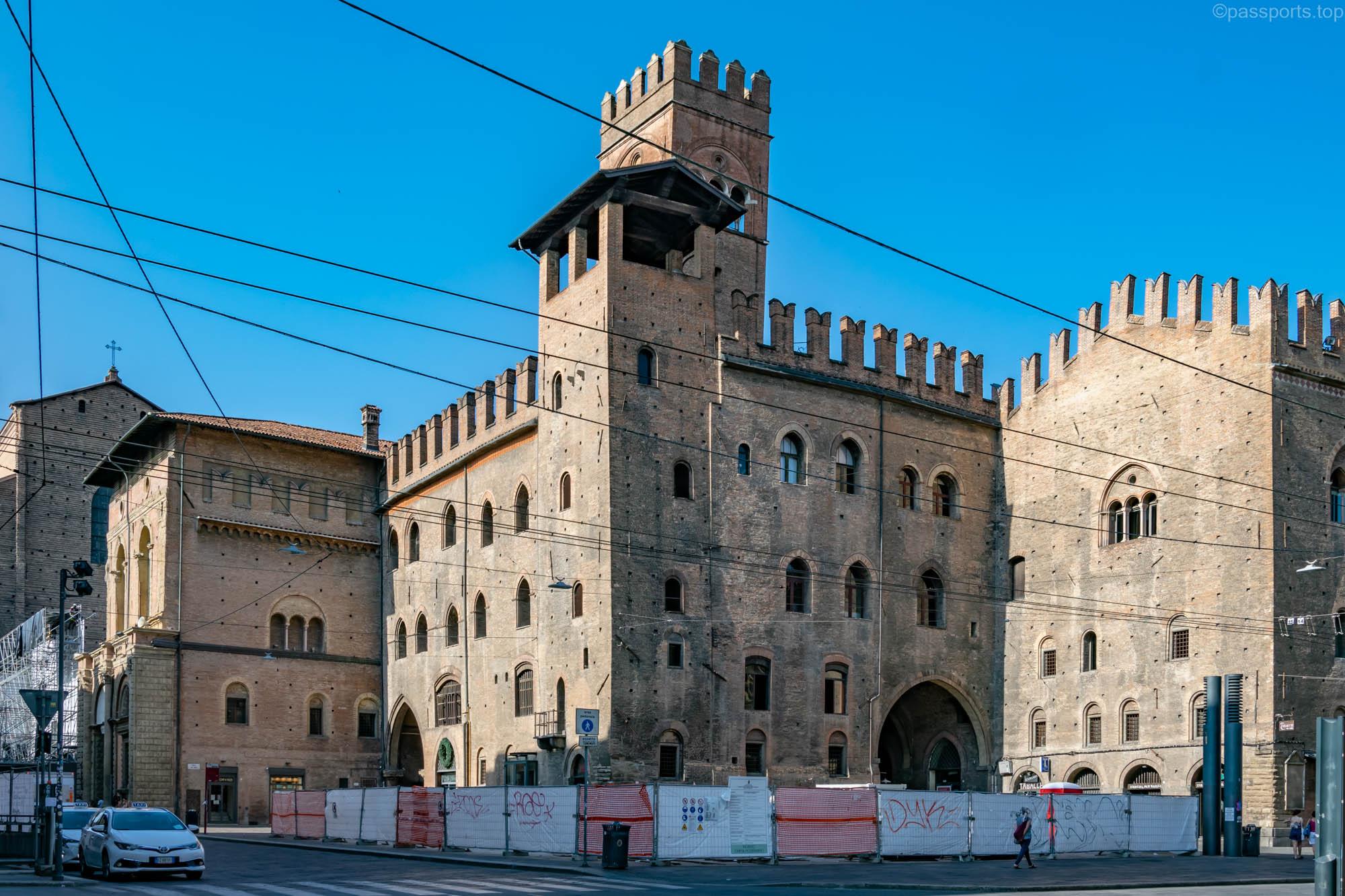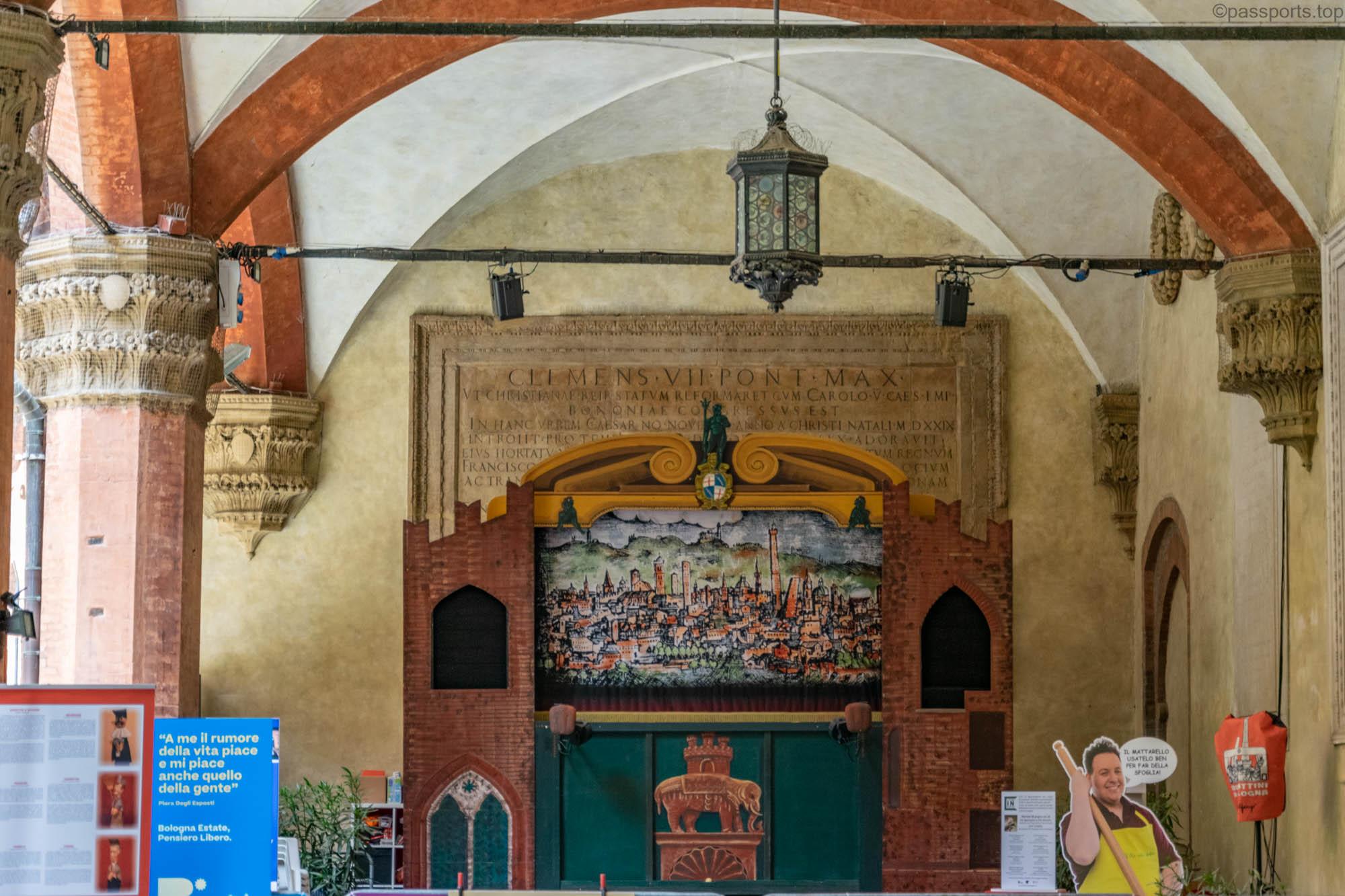 În trecut a fost clădirea principală a Universității din Bologna, iar acum găzduiește faimosul Teatru Anatomic – o sală construită în secolul 17, ce era folosită la lecțiile de anatomie. În centrul camerei se află o masă de marmură (o copie a originalului), iar de jur împrejur sunt bănci.
