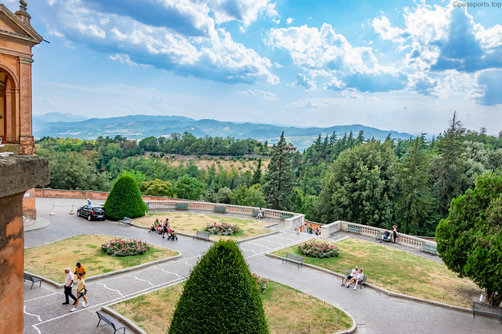 Cel mai lung portic duce la vârful Monte della Guardia. De la o înălțime de aproximativ 300 m puteți admira Bologna și regiunile înconjurătoare. În plus, în vârful dealului se află Sanctuarul Madonna di San Luca.
