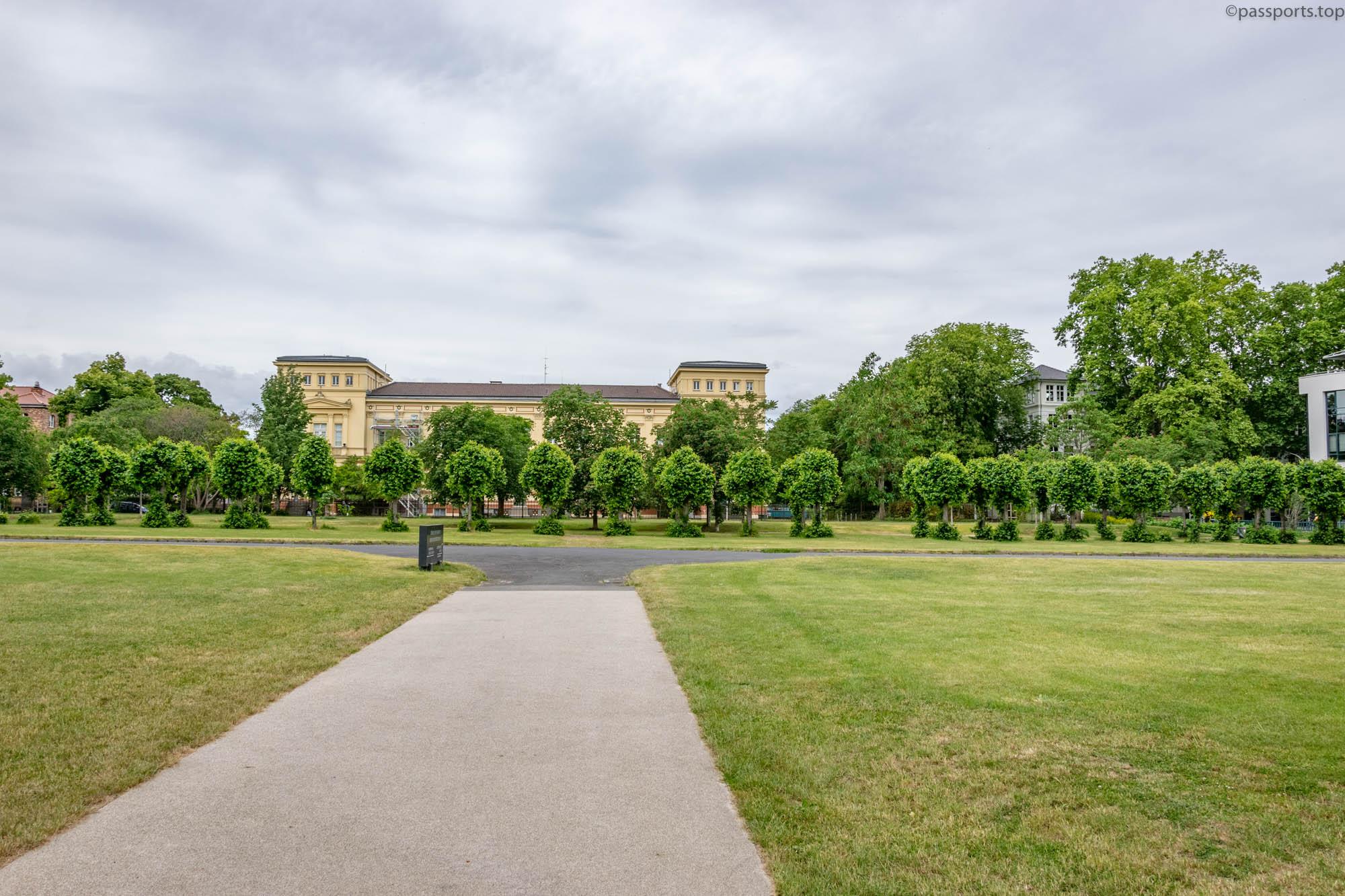 În fața clădirii se întinde Hofgarten – un parc mare și un loc popular pentru studenții vin aici să se relaxeze sau să studieze.