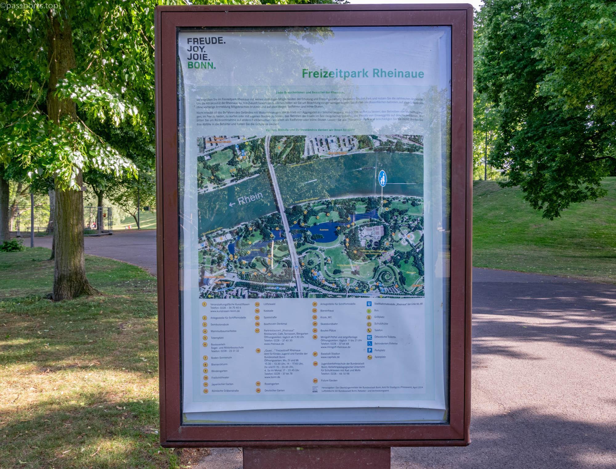 Freizeitpark Rheinaue este un parc de agrement fondat în 1979, devenit astăzi simbol al orașului. Cu o suprafață de 160 de hectare, parcul este aproape la fel de mare ca centrul orașului.