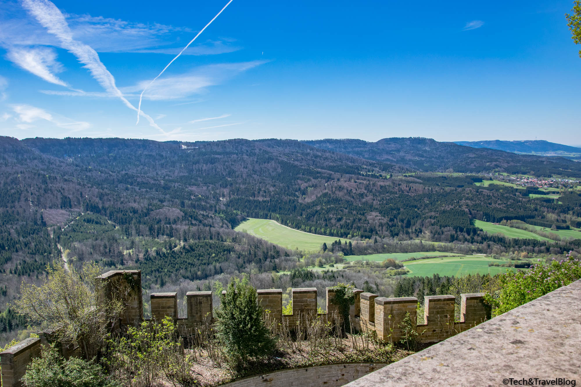 După 30 de minute de urcat prin pădure se ajunge la intrarea principală în castel. Intrarea între zidurile fortificate se face printr-o poartă regală („Poarta Vulturului”) pe care este înfăţişat prinţul Frederick I, călare pe armăsarul lui. Din dreptul zidurilor exterioare ale castelului vizitatorii au în fața lor o priveliște superbă asupra dealurilor și pădurilor din zonă.