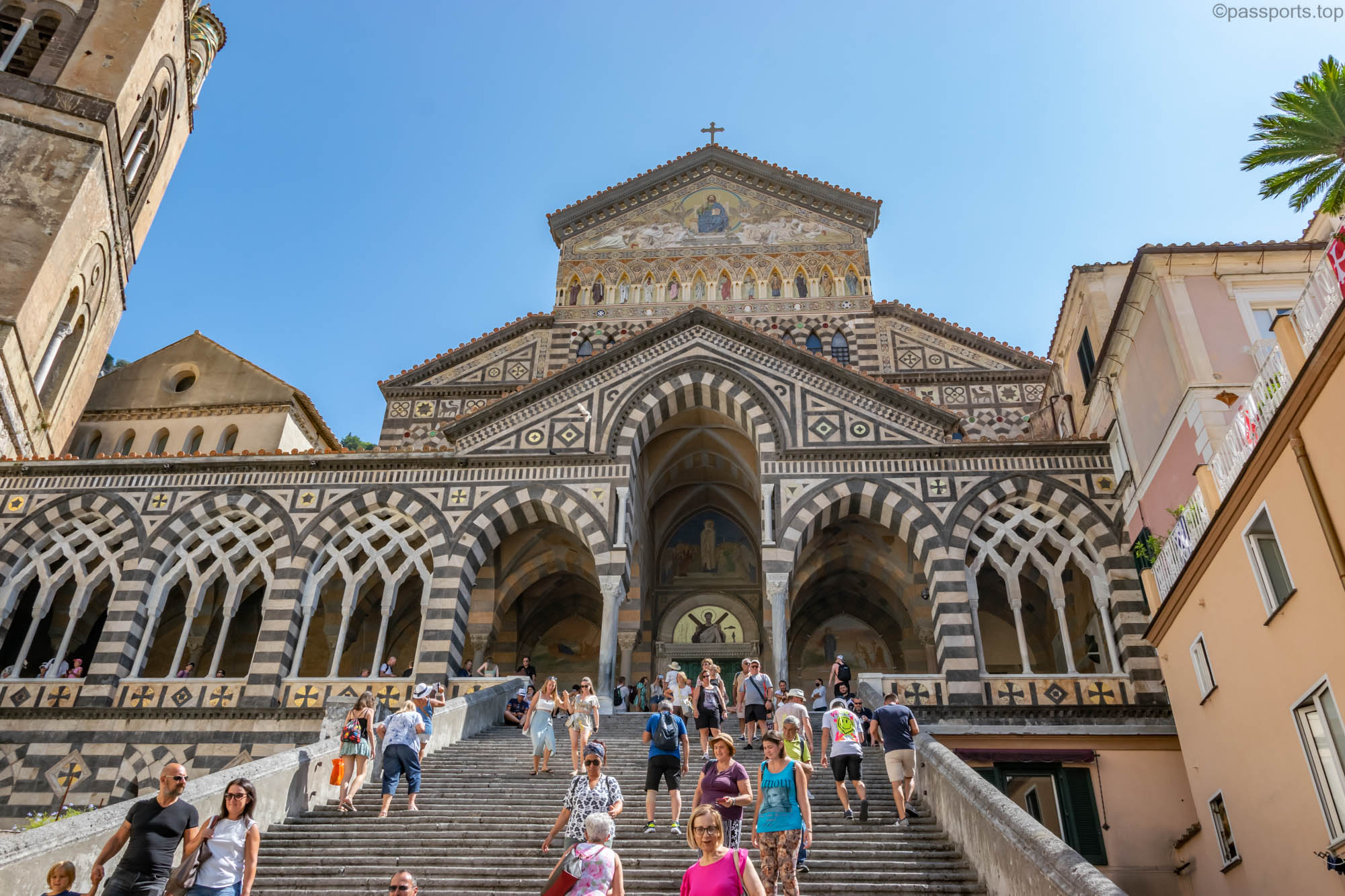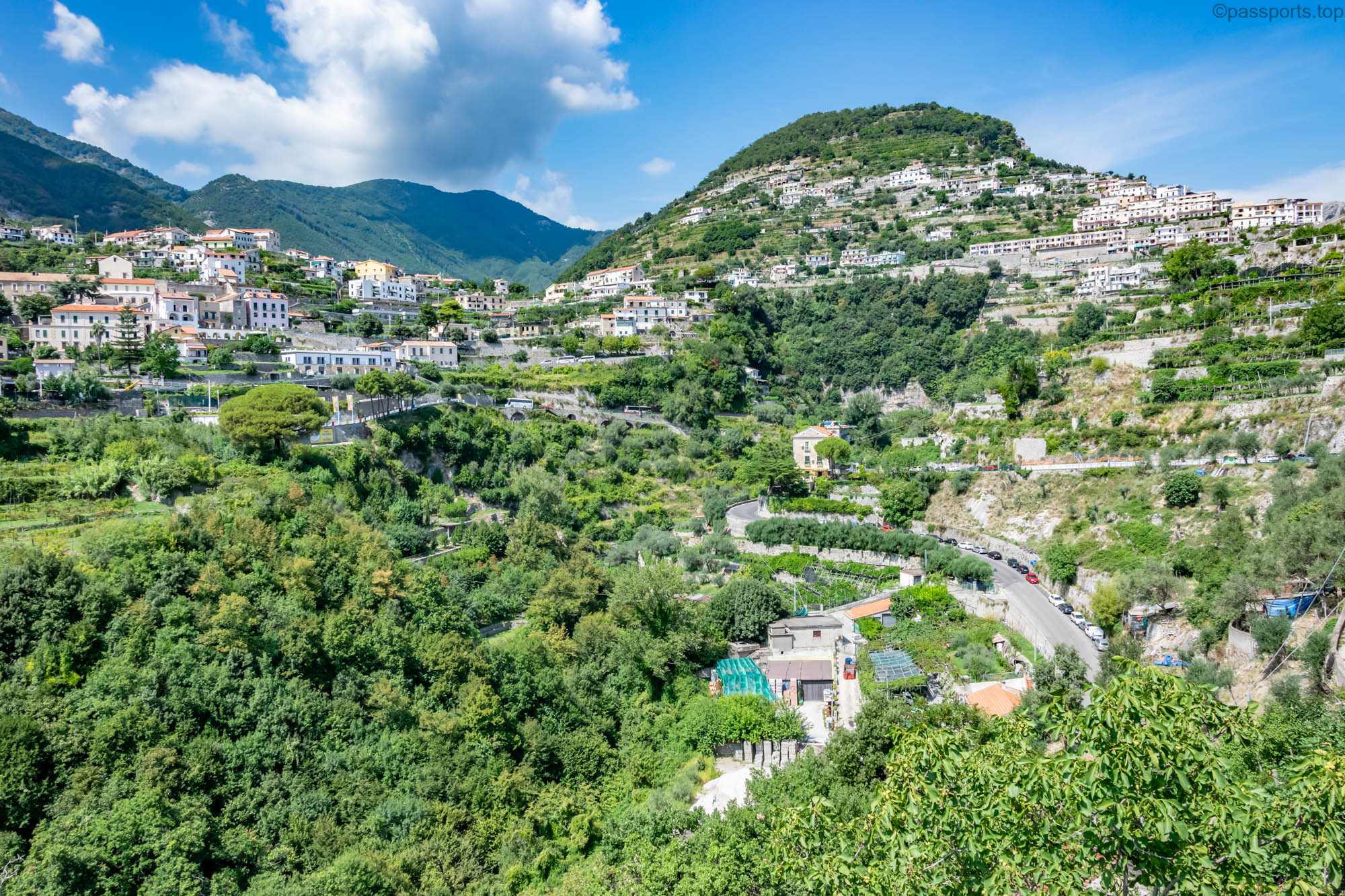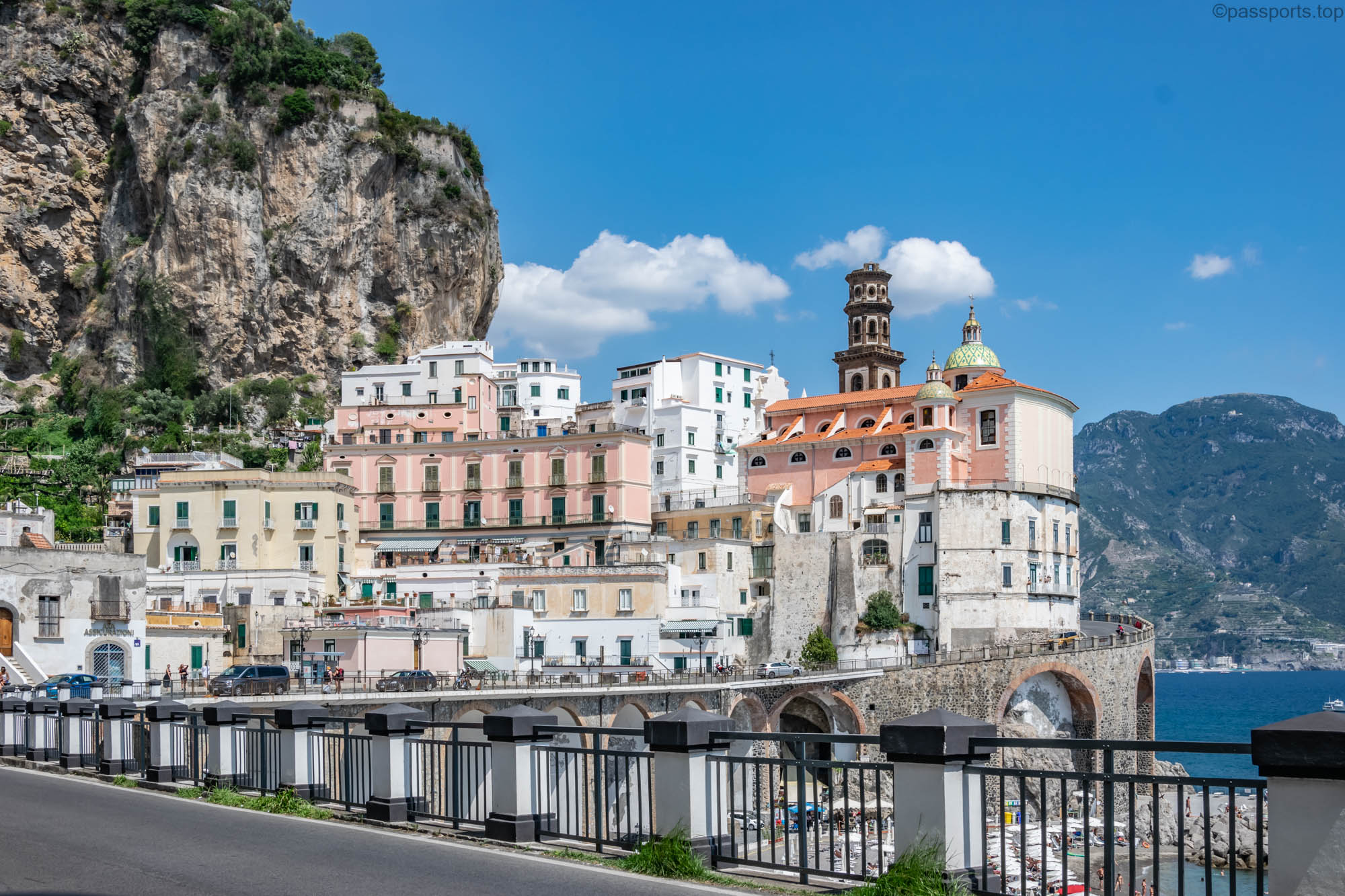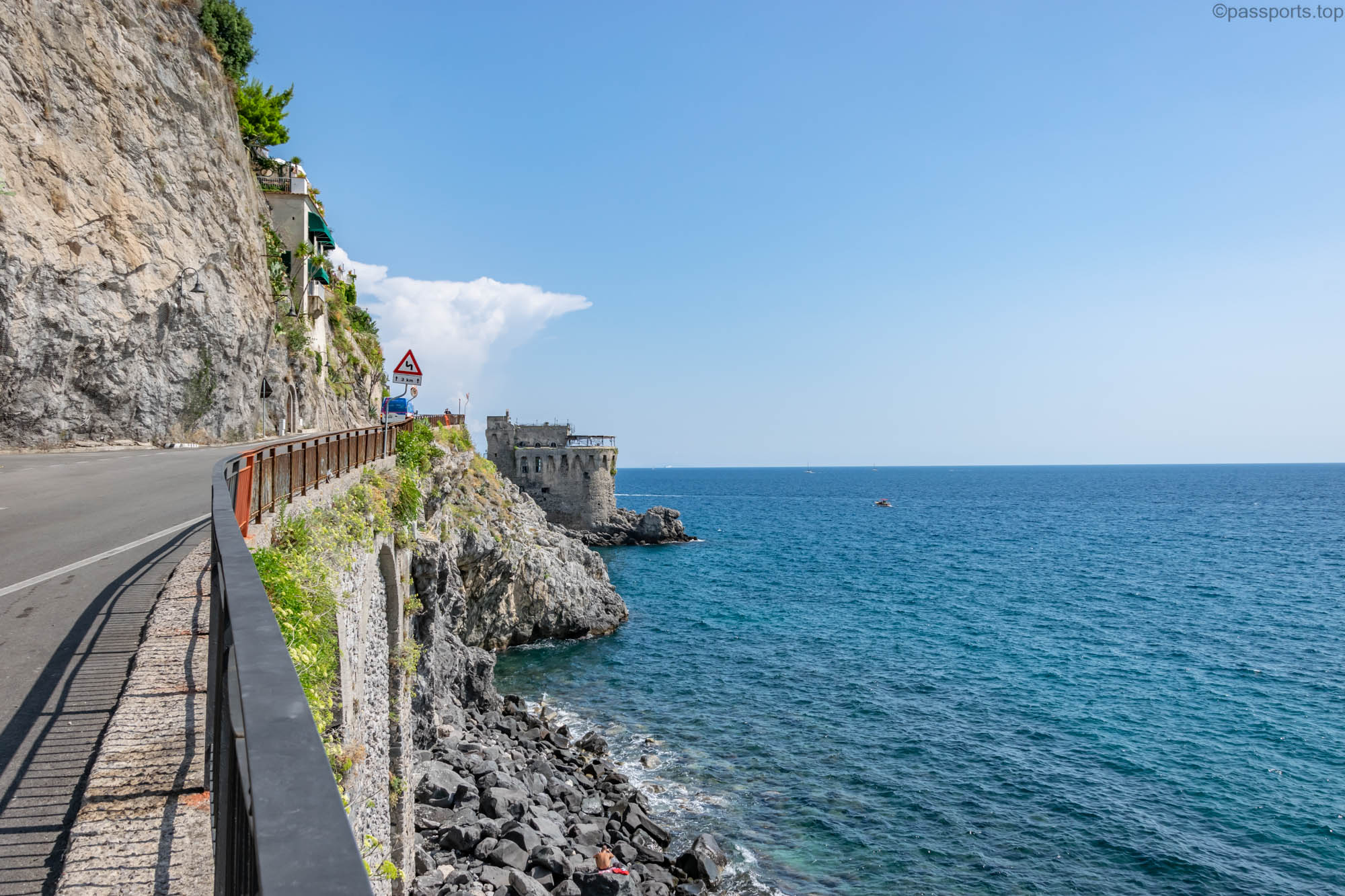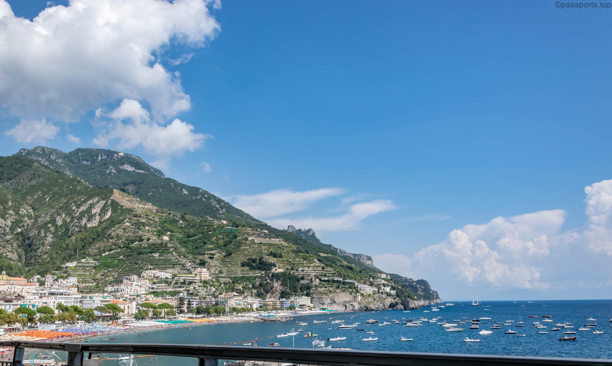 The Amalfi Coast is located in southern Italy, in the Campania region, 50 km from Naples. It is one of the most famous driving routes in the world, and driving along its curves, high on the cliffs, is truly spectacular.