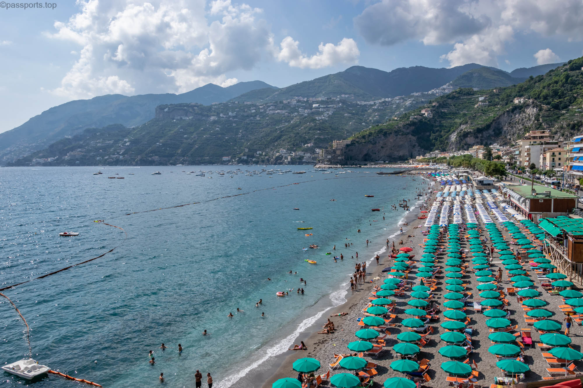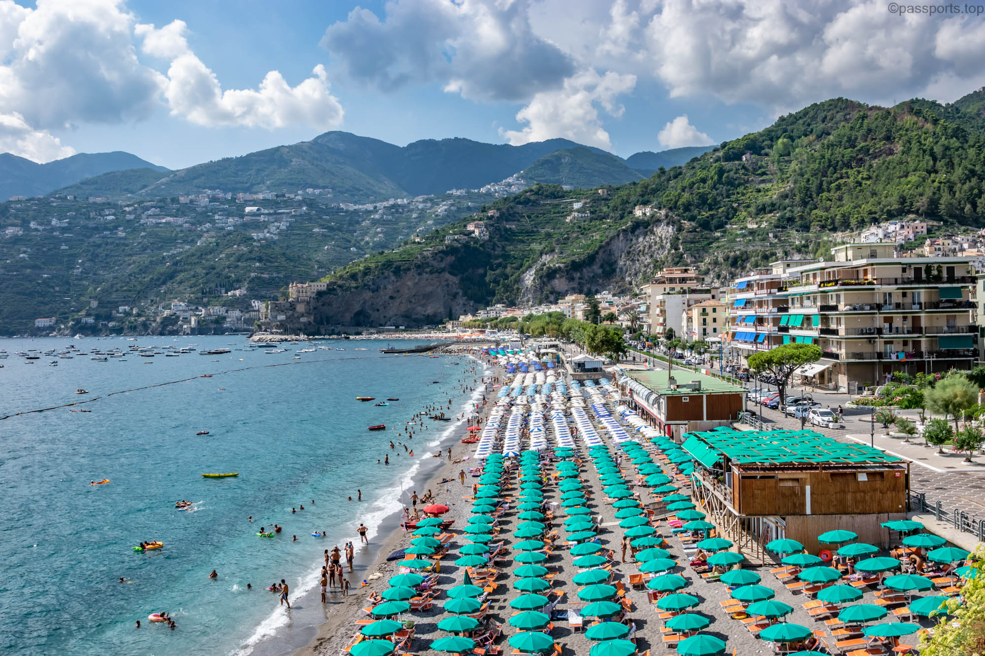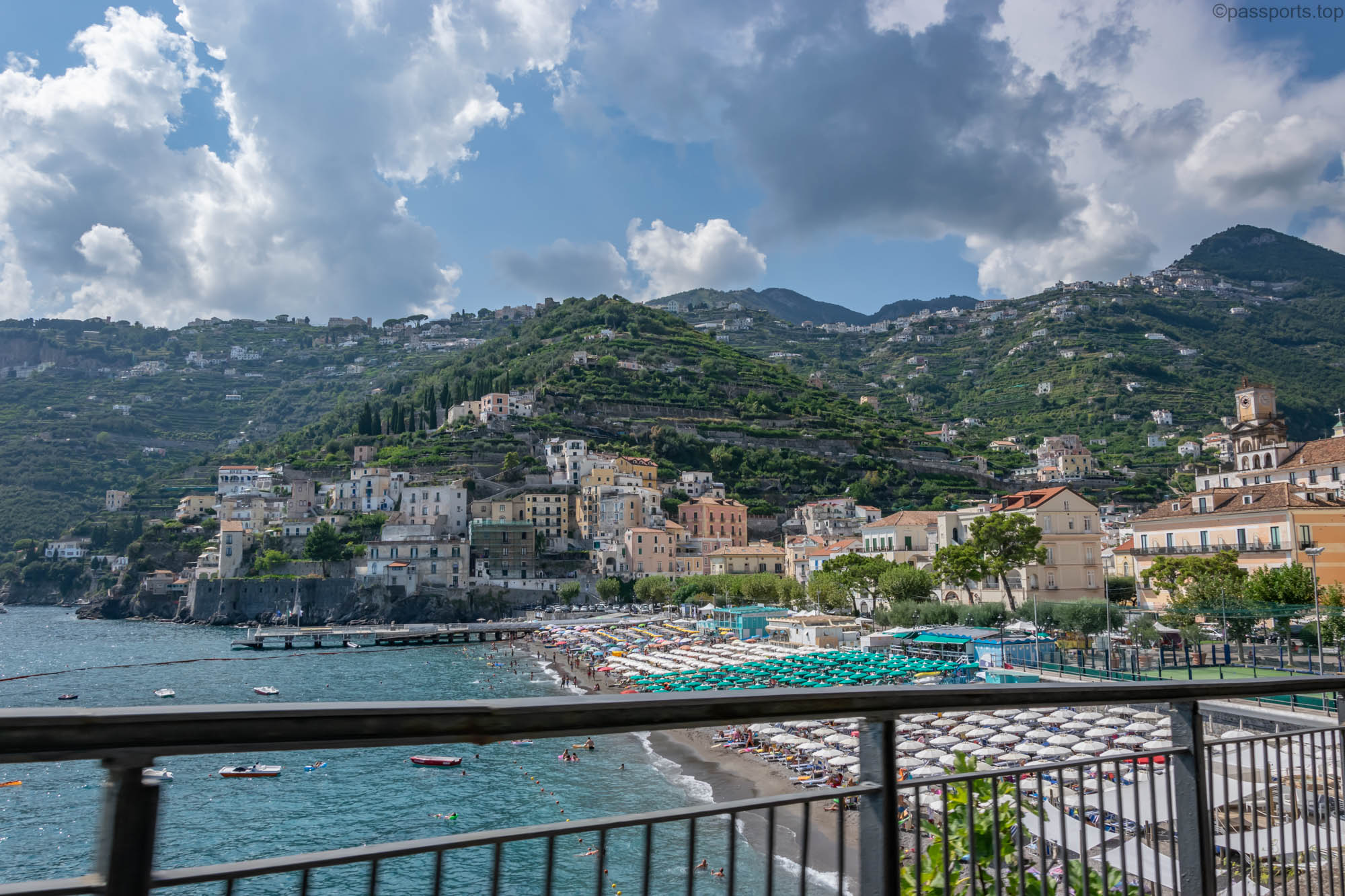 Near Minori is the town of Maiori which has the longest beach on the Amalfi Coast (930m long and 40m wide) and one of the few sandy beaches.