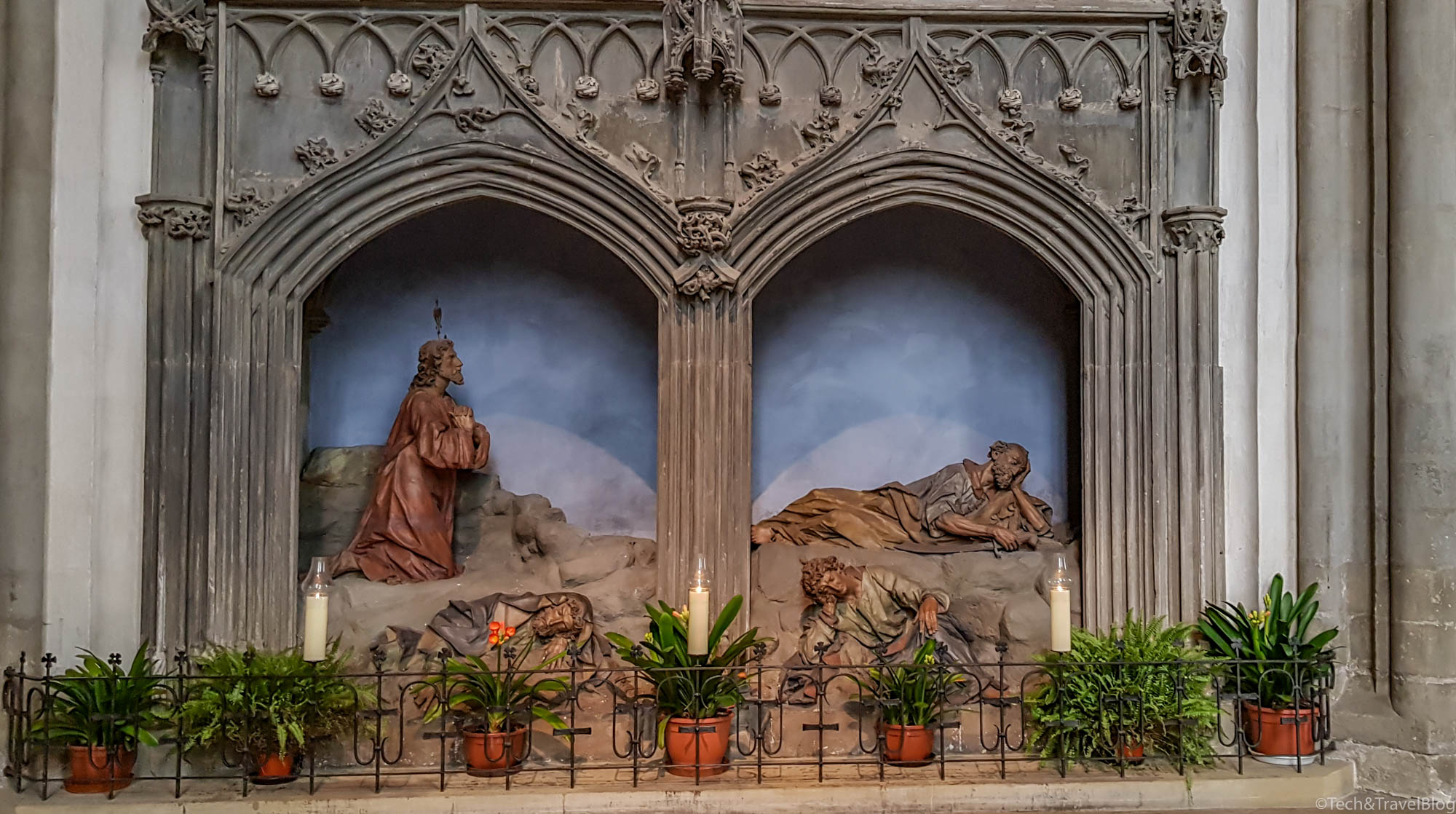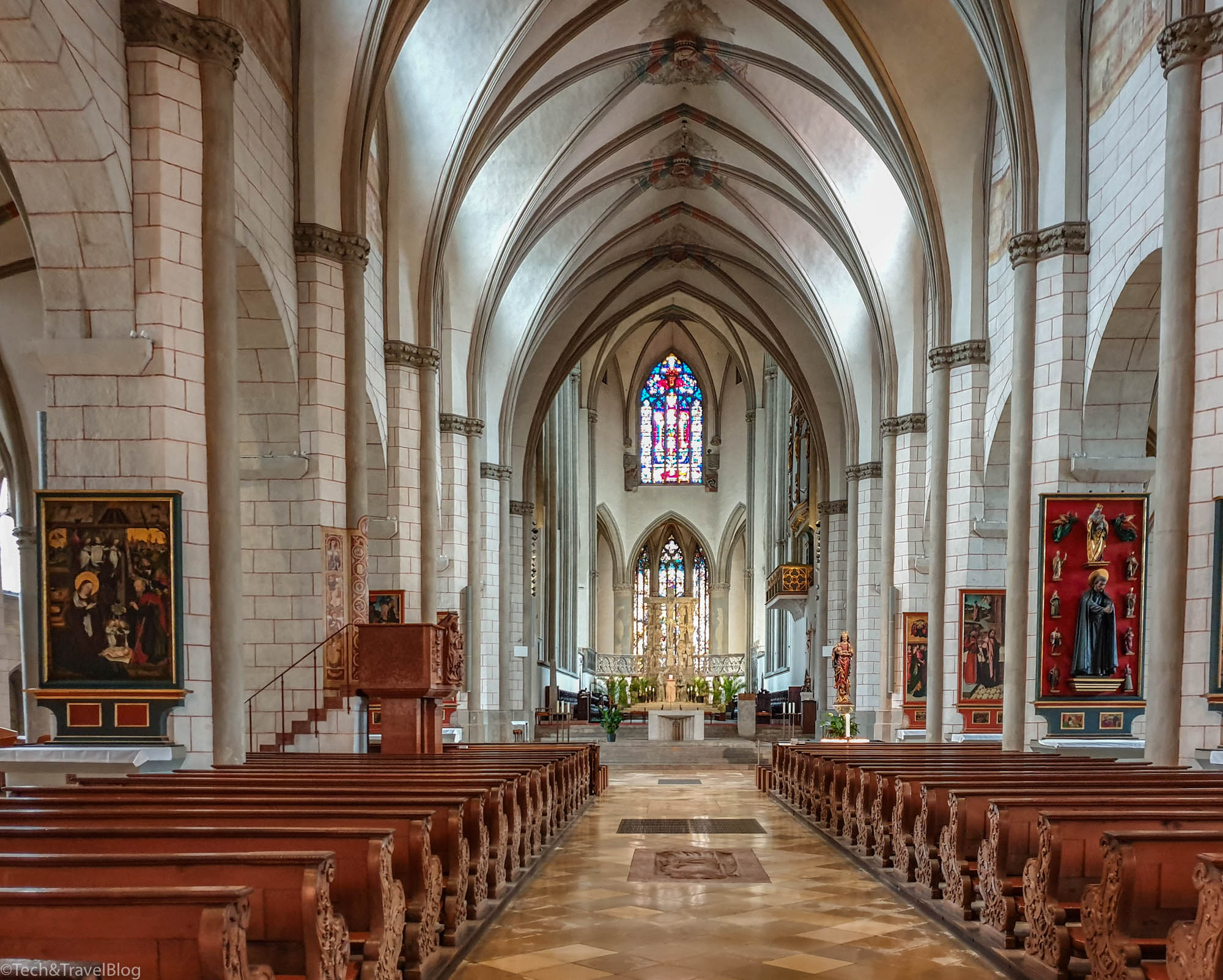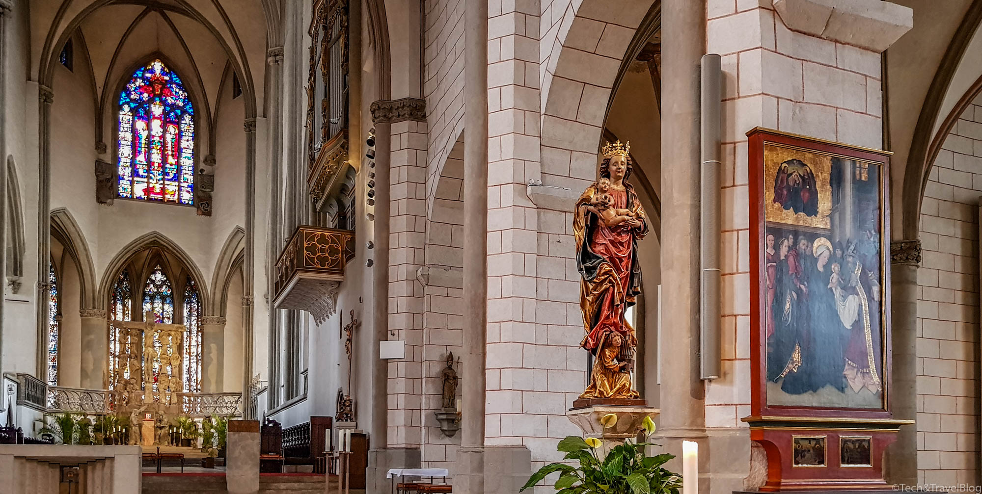 Inside the church are the oldest stained glass windows in Germany, dating from around 1100, but also Gothic elements and paintings by Hans Holbein (considered one of the greatest portrait painters of the 16th century).