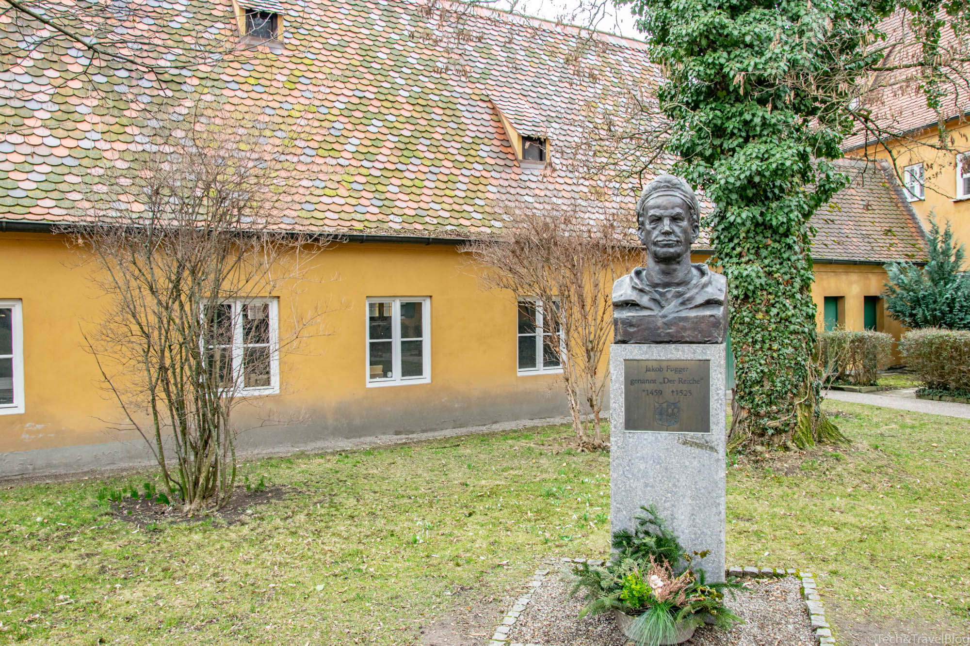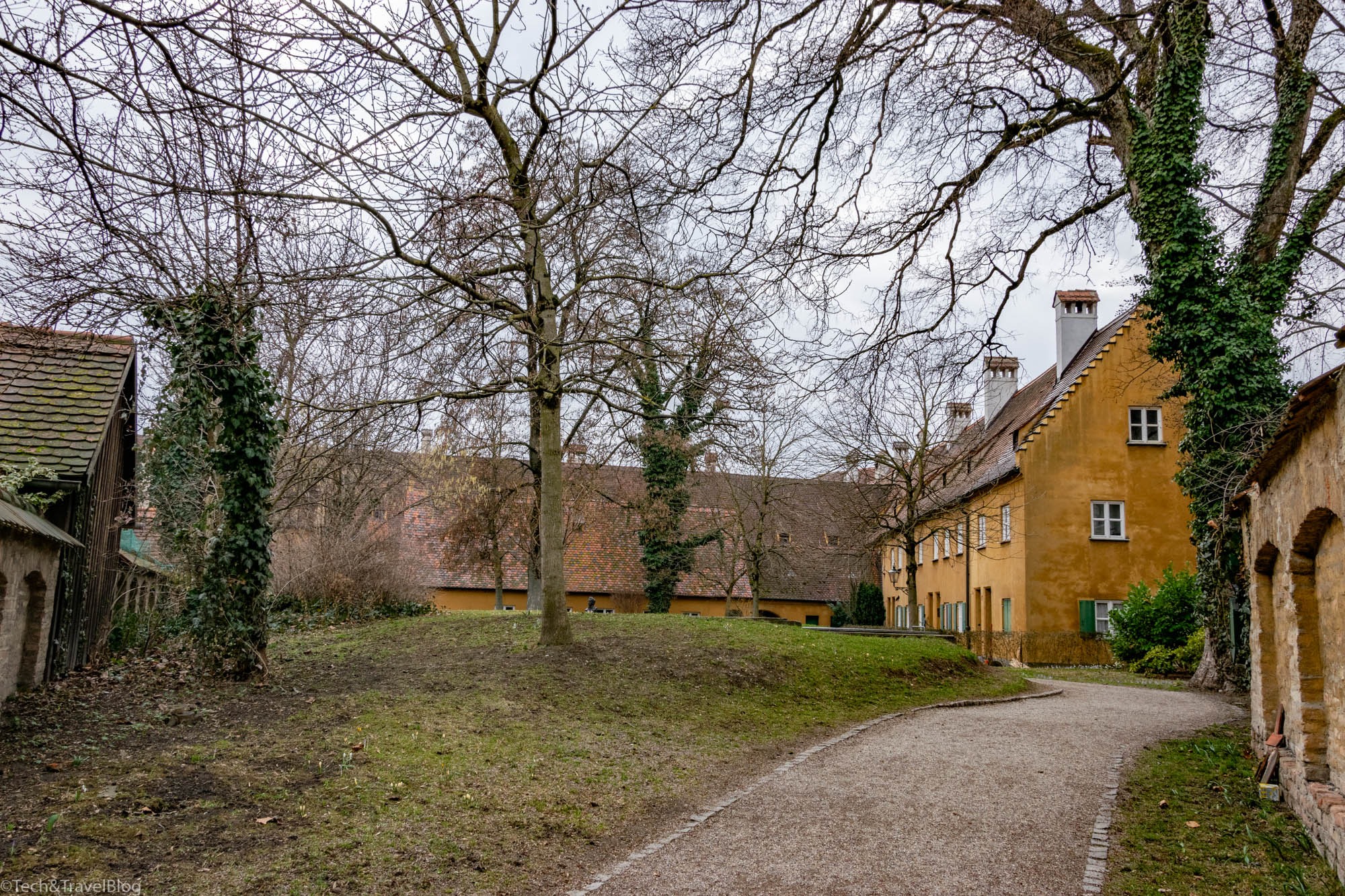 The Fuggerei neighborhood is the oldest social project, initiated in 1521 by Jacob Fugger. 67 buildings were built in the neighborhood where the rent costs less than €1/year and a church. The neighborhood is surrounded by a fence and has its own gate, and a fee of €4/person is charged for the visit. One of the houses has been turned into a museum and can be visited.