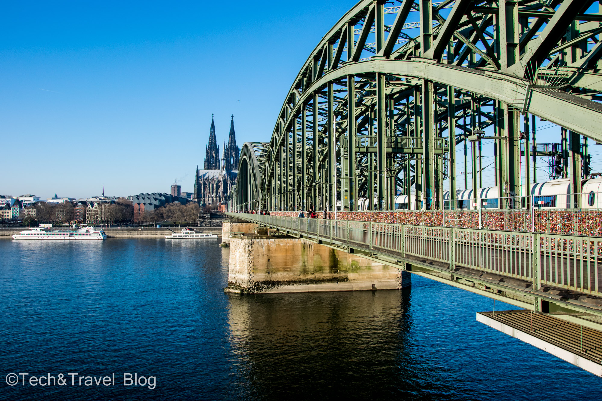 Another well-known attraction is the Hohenzollern Bridge (Hohenzollernbrücke) – originally built for both rail and car transport. After its destruction in 1945 and its reconstruction, it became accessible only for rail and pedestrian traffic. It is the most heavily used railway bridge in Germany, with more than 1200 trains a day crossing it. The bridge is built over the river Rhine and has a total length of 409 m. Since 2008, being inspired by the Pont des Arts – the famous bridge in Paris where tourists used to catch a “love lock” and throw the key into the Seine, many couples started picking locks here too, on the fence between the pedestrian area and the railway. The Dutch band Nits dedicated a song to this, the track being called “Love Locks“.