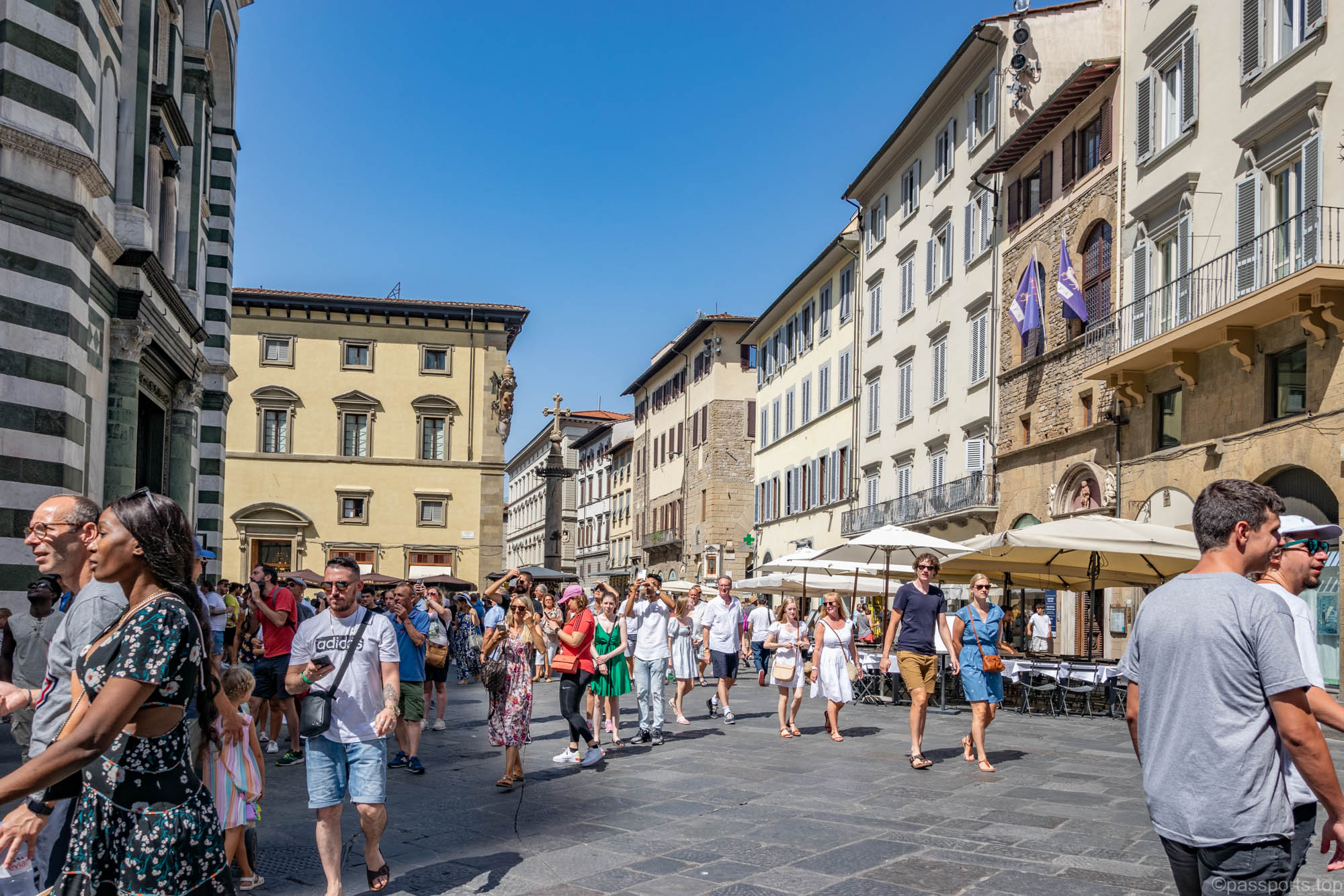 The cathedral is free to visit, but I recommend going early because there is a huge queue at the entrance. To climb the dome and Giotto’s bell tower you need a ticket and an appointment in advance and you need to buy the Brunelleschi Pass, which costs €30/person (includes the Duomo Chapel + Baptistery + Belfry + Opera del Duomo + Santa Reparata). To enjoy the panoramic views you have to climb 463 steps (92 meters) on the dome and 414 steps (82 meters) to the top of the tower.