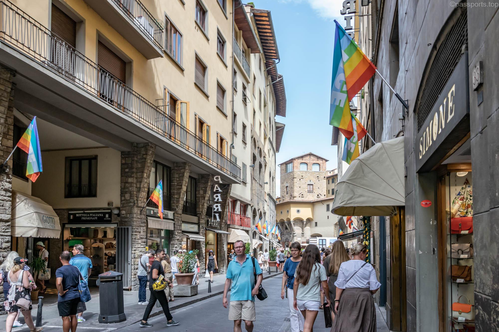 Along the bridge, above the shops, is the Corridor Vasari, built by the Medici family, connecting Palazzo Pitti and Palazzo Vecchio, passing through the Uffizi Galleria.