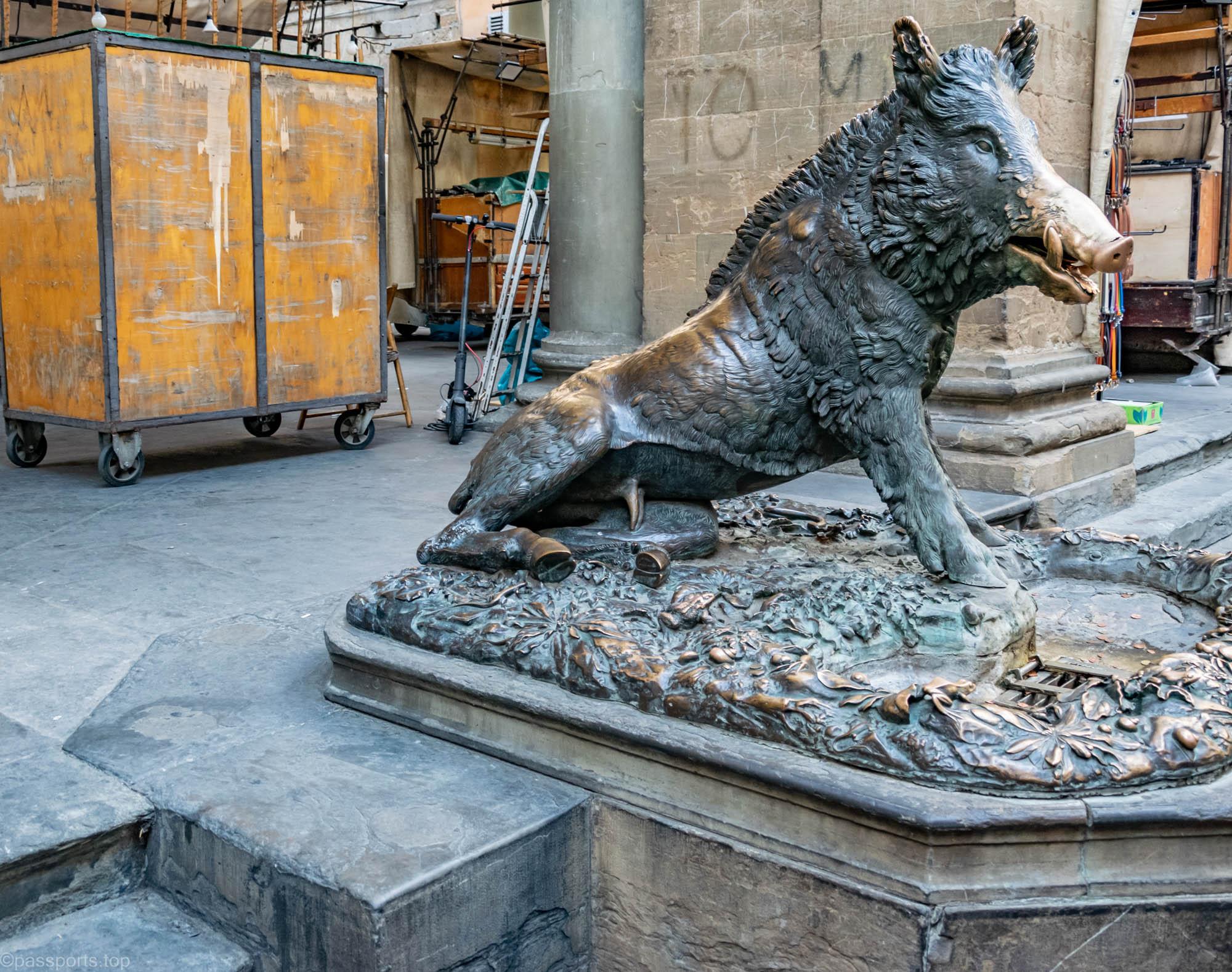 Near the Piazza della Signoria is the Piazza del Mercato Nuovo with the famous bronze Statuette of the Boar, Fontana del Porcellino. Legend has it that you have to stroke his nose, then put a coin in his mouth and if it falls into the channel below you will be lucky.