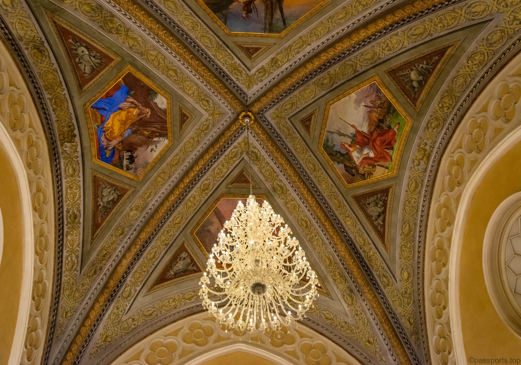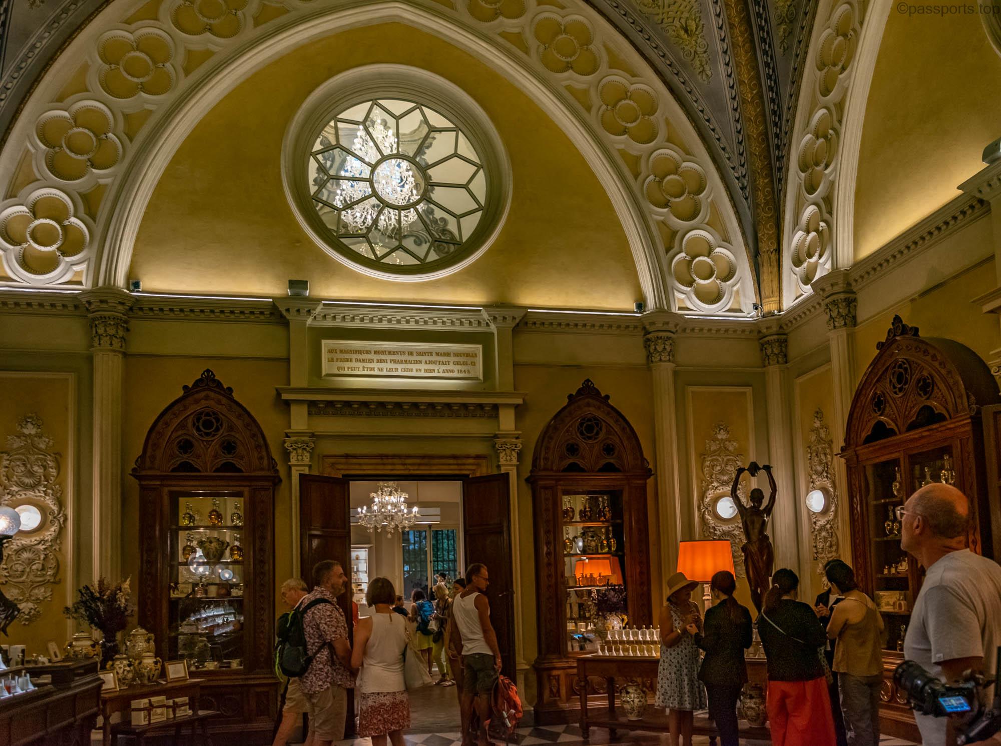 The interior is decorated with frescoes and chandeliers, and you can purchase creams, perfumes and even pet products.