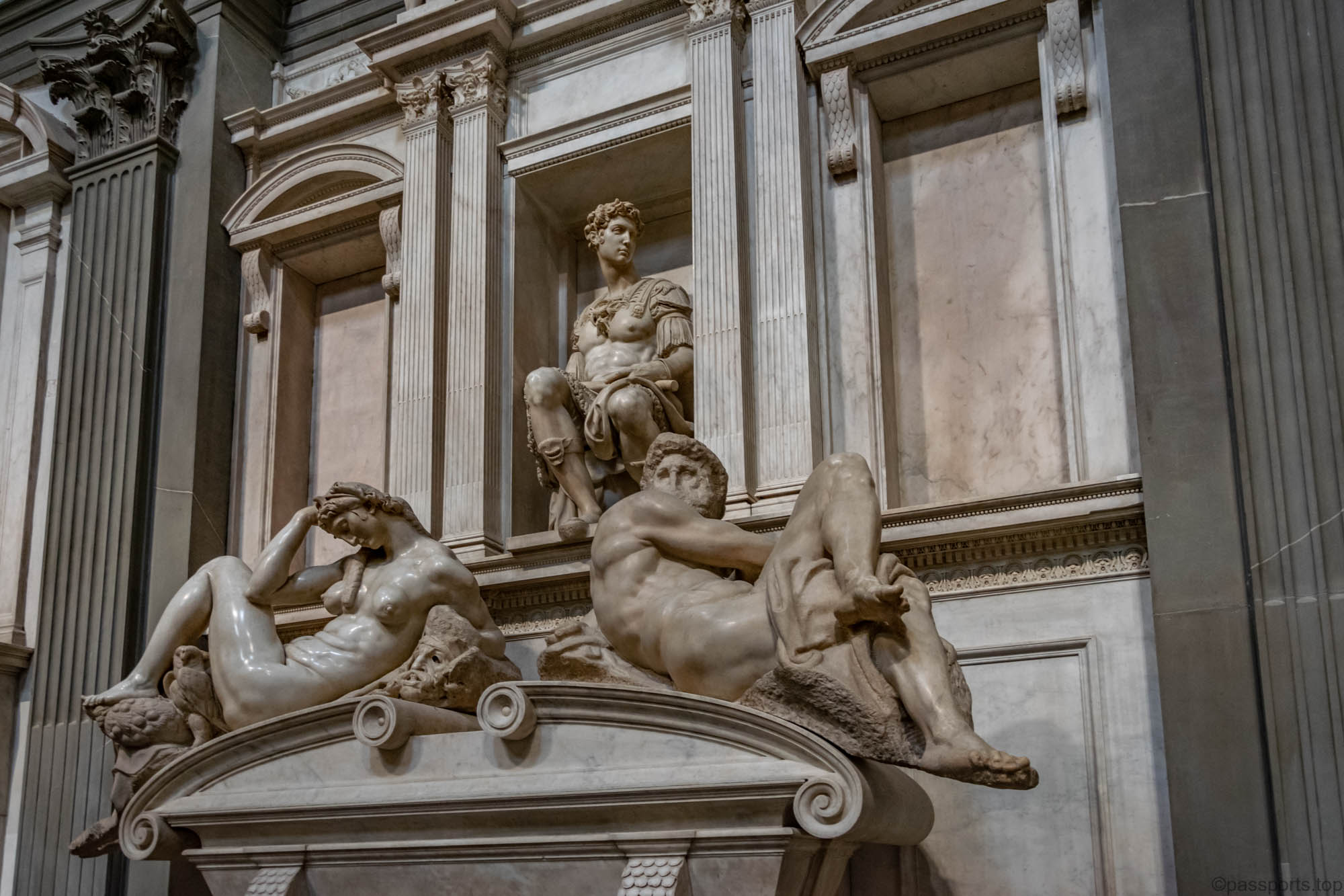 The Cappelle Medicee houses the vaults where the bodies of the Medici family rest. The interior is gorgeous, awash in marble and glittering jewels, and the chapel houses some of the most beautiful statues sculpted by none other than Michelangelo.