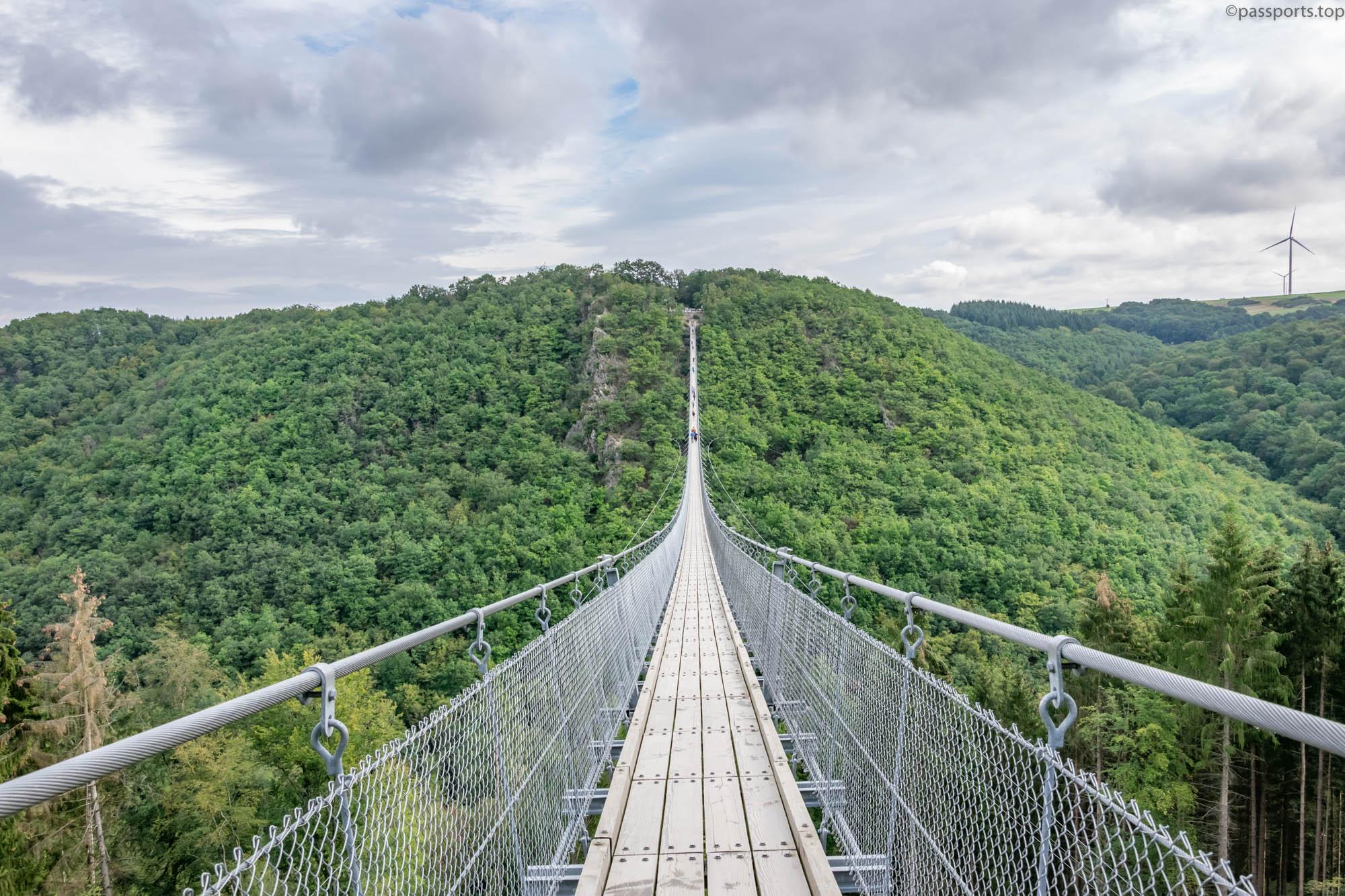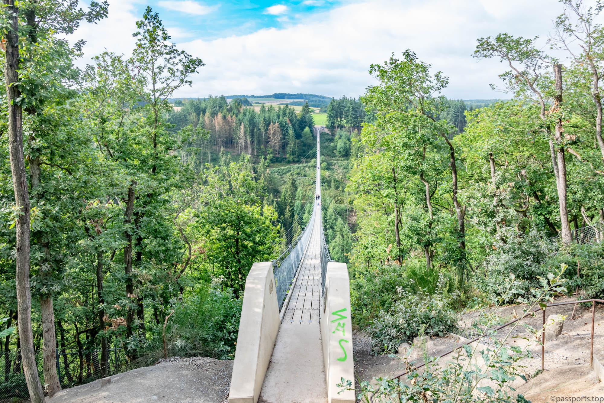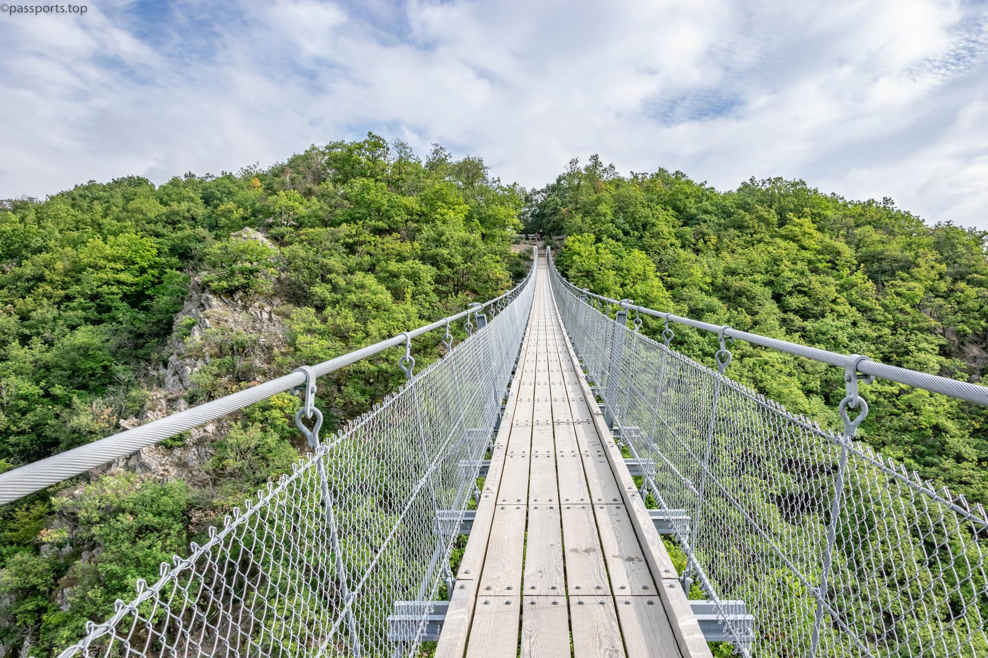 Not far from Burg Eltz, about 30 kilometers away, is a town less known to tourists, called Mörsdorf. In 2015, a metal cable bridge suspended 100 meters above a valley, with a length of 360 meters, was inaugurated.