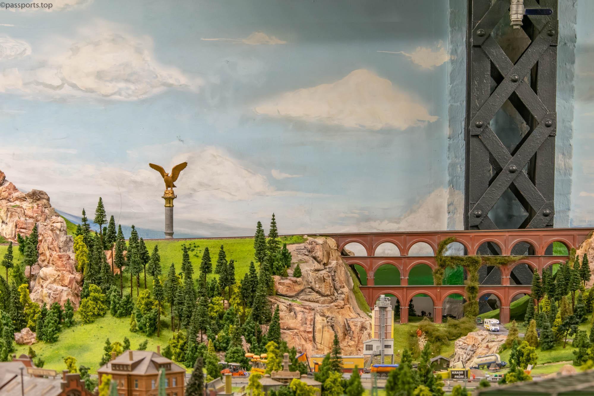 The exhibition includes 1,300 trains with over 10,000 carriages on 15,715 meters of track, over 100,000 moving vehicles, approx. 500,000 lights, 15,400 meters of tracks, 130,000 trees and 400,000 human figurines, and the museum is constantly expanding (sections for Central America and the Caribbean, Asia, England, Africa and the Netherlands will be included), with the new areas being planned until 2028.