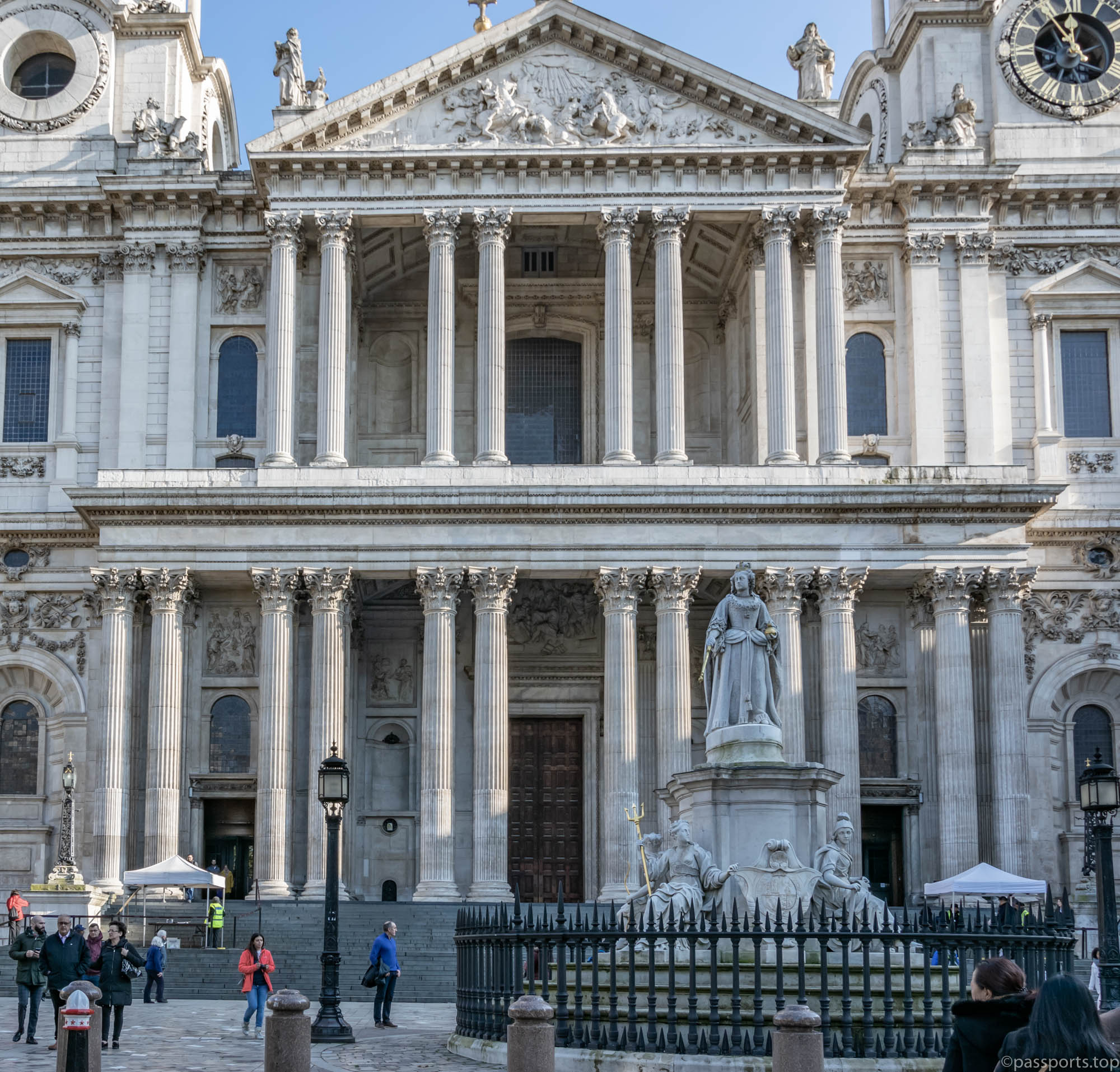 The Queen Victoria Memorial is located in front of Buckingham Palace and comprises the Dominion Gates (Canada Gate, Australia Gate and South and West Africa Gates), Memorial Gardens and a vast central monument commemorating the death of Queen Victoria in 1901.