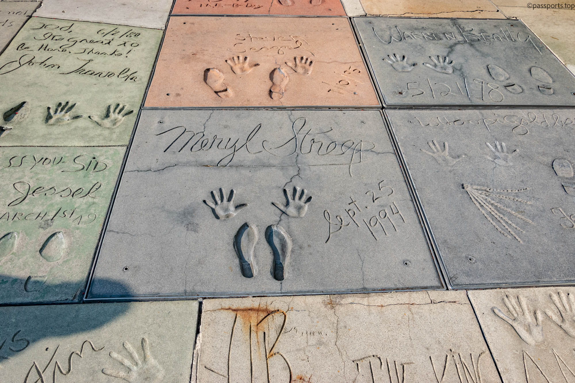 The biggest attraction is the theater courtyard, where hundreds of movie stars and singers have left their hand and foot prints alongside their cement signatures.