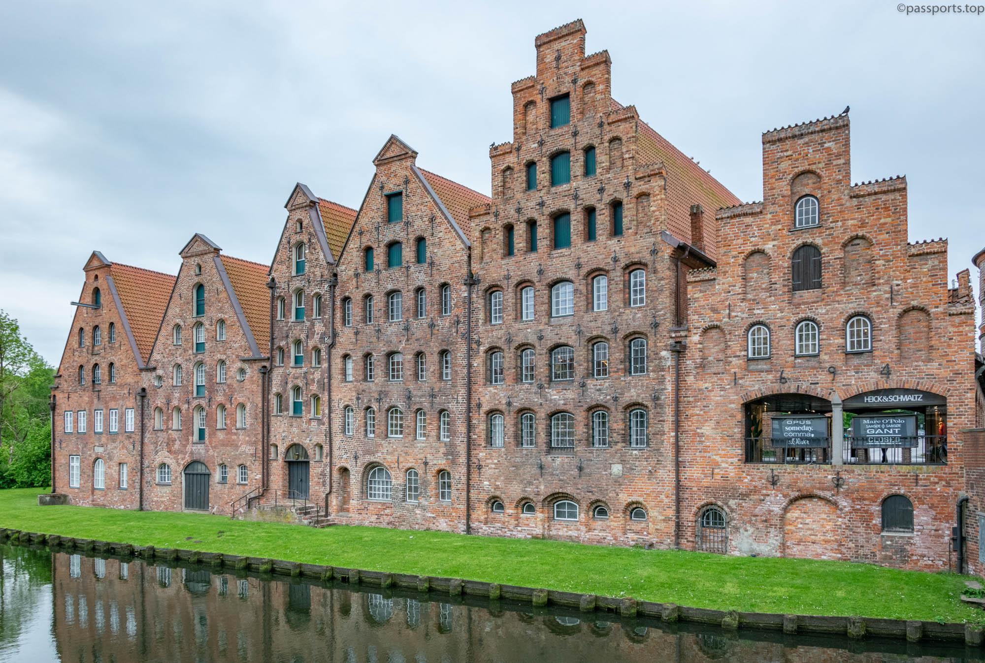 The salt warehouses (Die Salzspeicher) are located near the Holstentor and were built between 1579 and 1745 as a group of brick warehouses in the Renaissance style.