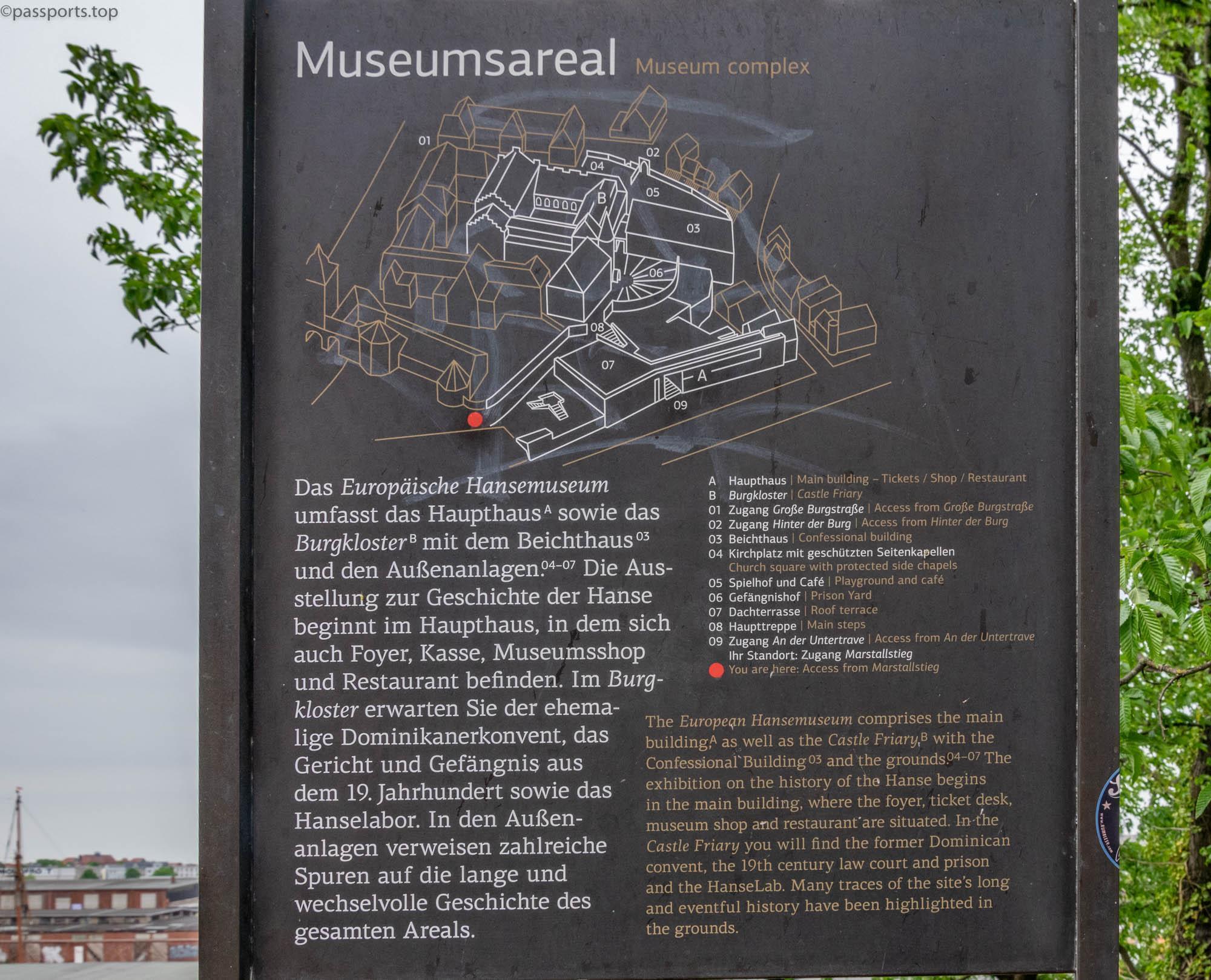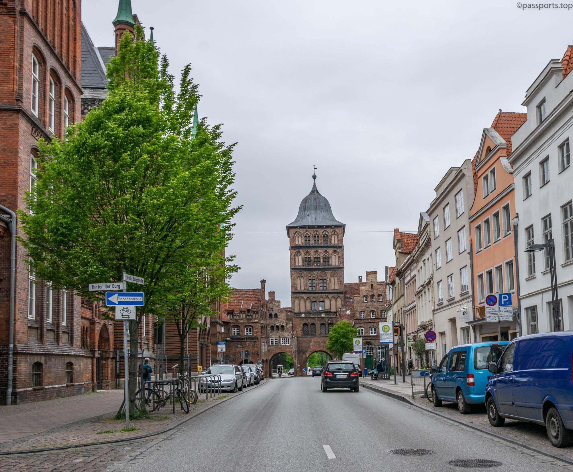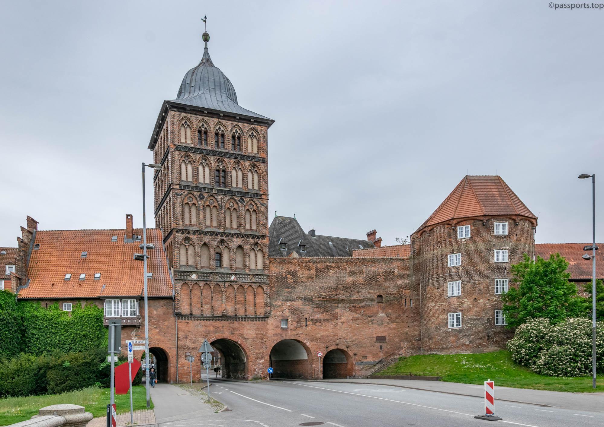 Burgtor is another remnant of medieval fortifications. The gate is next to the Hansemuseum and was built to defend the northern part of the city. It was built in late Gothic style in 1444 and the copper cupola on the main tower was added in 1685.