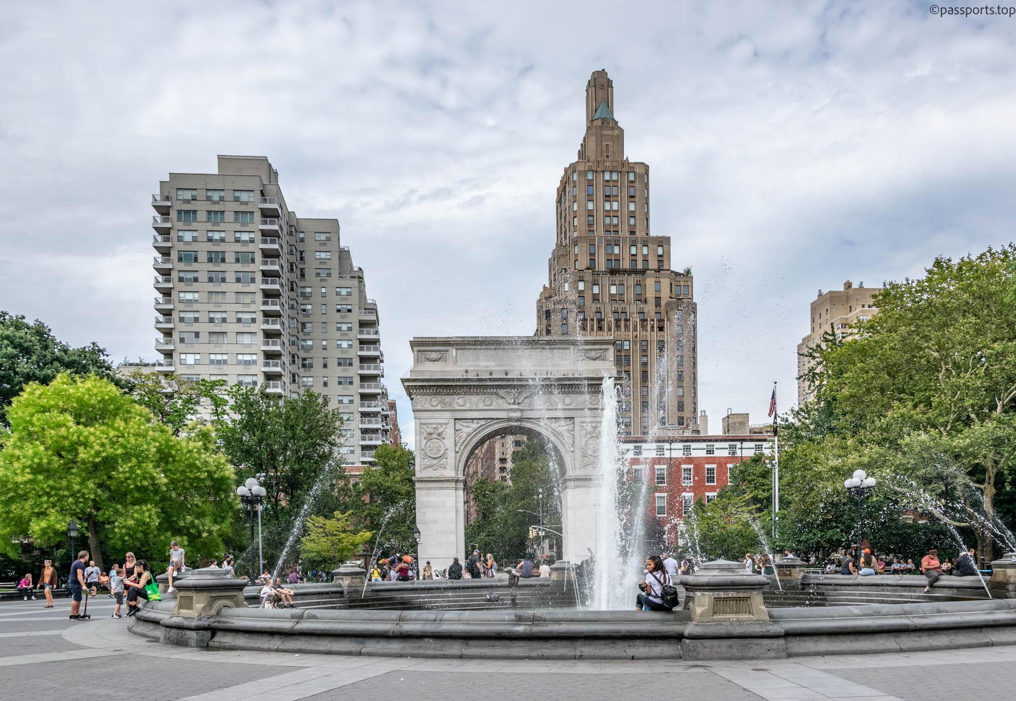 Washington Square Park is known for the marble arch that honors George Washington, the man the park is named after, and its fountain – a popular meeting place. Surrounded by the buildings of New York University, the park is a lively place full of students and musicians.