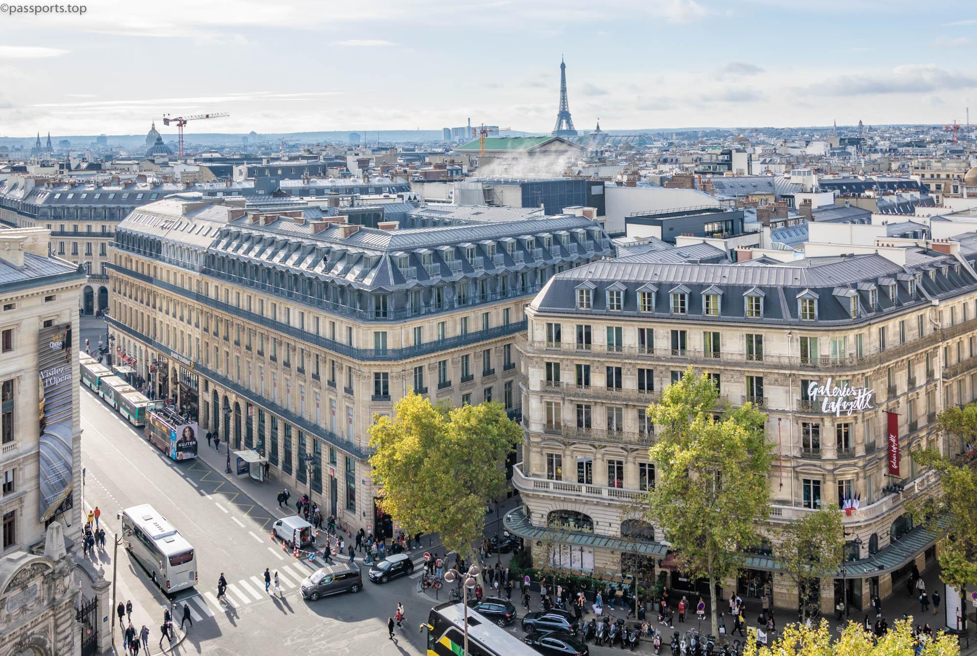 The Terrace of the Galleries offers a beautiful panorama over Paris, from where you can admire the Eiffel Tower, the Opéra Garnier or the Sacré-Cœur Cathedral.