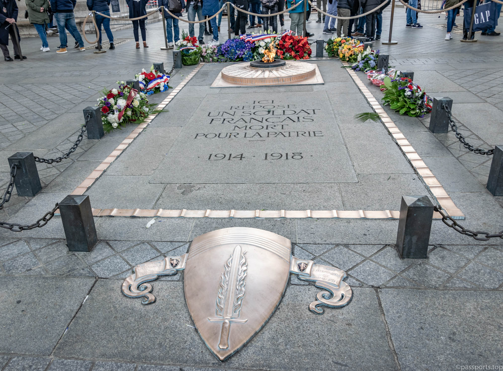 Under the arch is the Tomb of the Unknown Soldier, and every evening at 6:30 p.m. its flame is rekindled – a tradition that was not interrupted even during the Nazi Occupation of Paris.