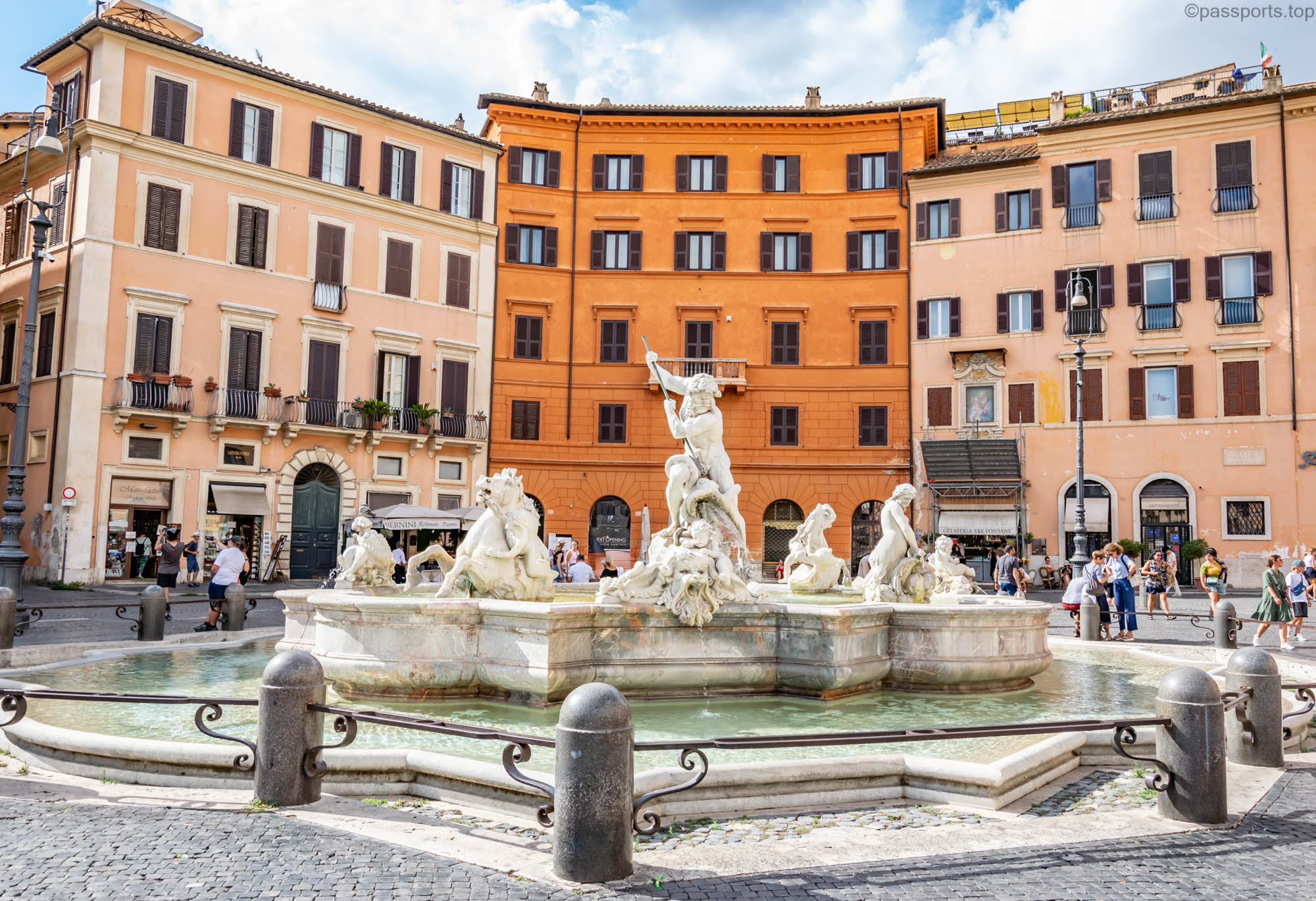 The Fountain of the Four Rivers (Fontana dei Quattro Fiumi) is in the center of the square and is one of the most beautiful fountains created by Bernini. The fountain is a tribute to the four major rivers in the continents where papal authority spread: the Danube (Europe), the Nile (Africa), the Ganges (Asia) and the RÃo de la Plata (America).