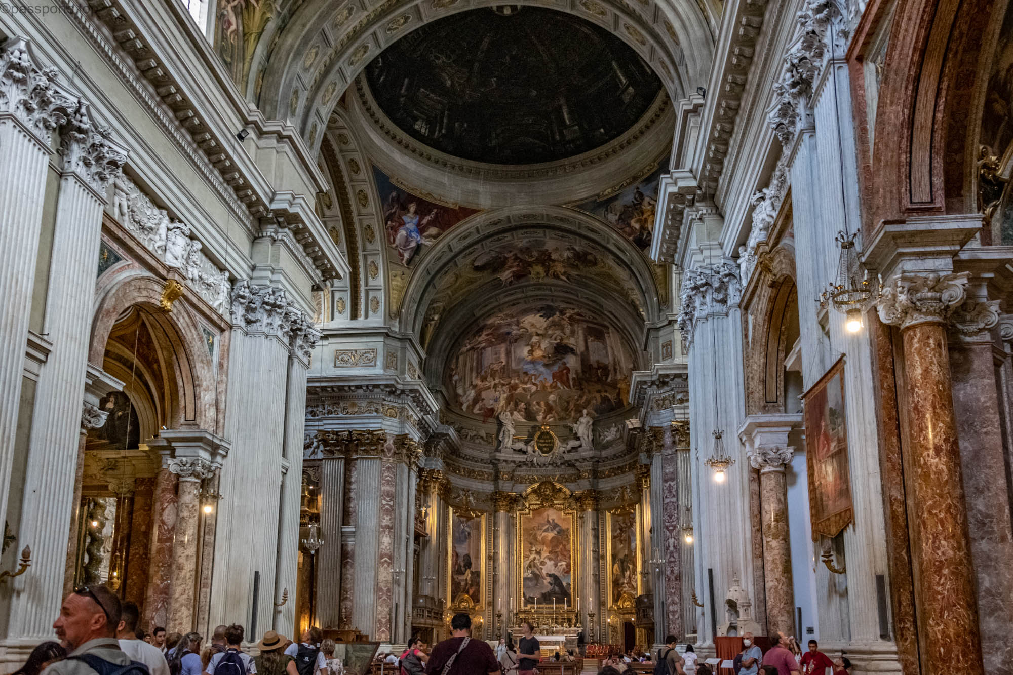 The interior of the church of Sant’Andrea della Valle is decorated with frescoes, the most special being the fresco in the dome depicting the Assumption of the Virgin Mary in the Glory of Paradise. No camera can capture the beautiful interior, so you have to put it on your must-see list. Entry is free.