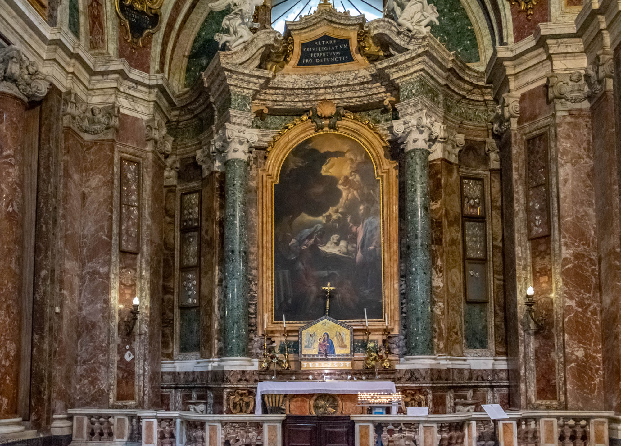 Chiesa Santa Maria dei Miracoli is one of the “twin” churches, along with Santa Maria in Montesanto. We visited only one of the churches inside, the other being closed.
