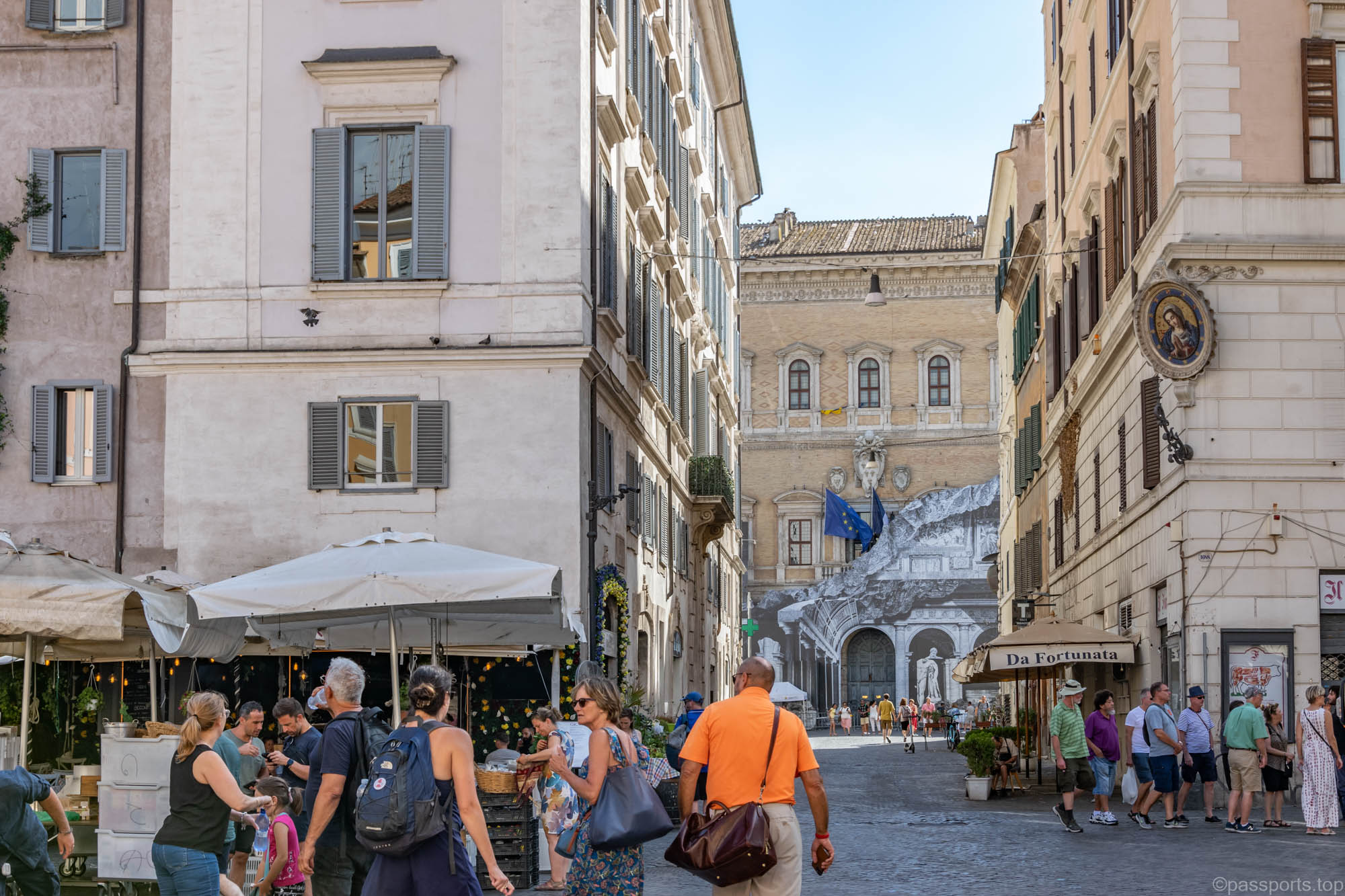 4. The Flower Field (Campo de’ Fiori) is a less crowded market. It got its name from the time when there was a green meadow full of flowers here.