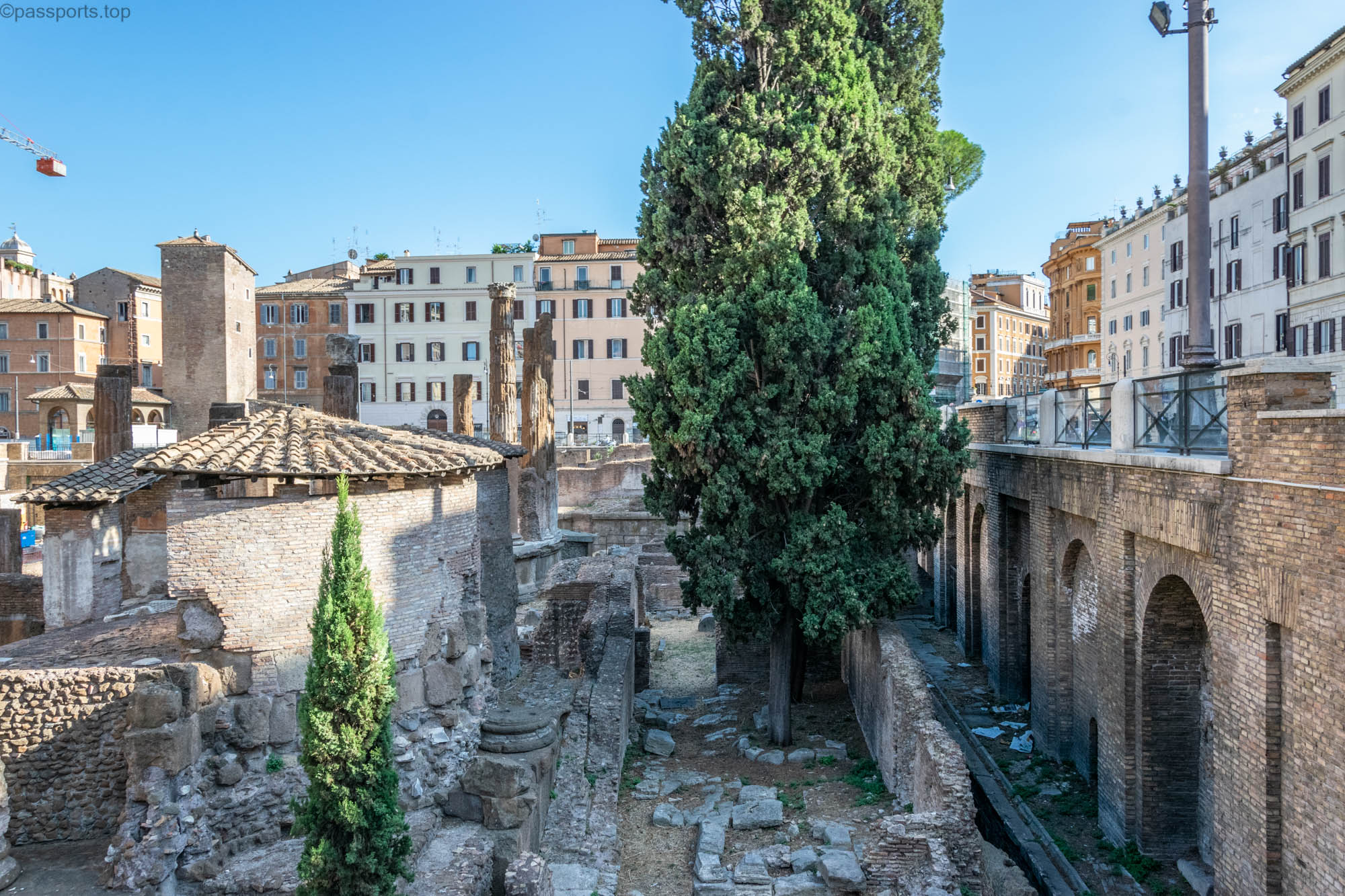Largo di Torre Argentina is a few meters below the current street level, and inside are four Roman temples and the remains of Pompey’s Theatre, built by Pompey the Great (Gnaeus Pompeius Magnus) around 55 BC. This is also where Julius Caesar was assassinated.