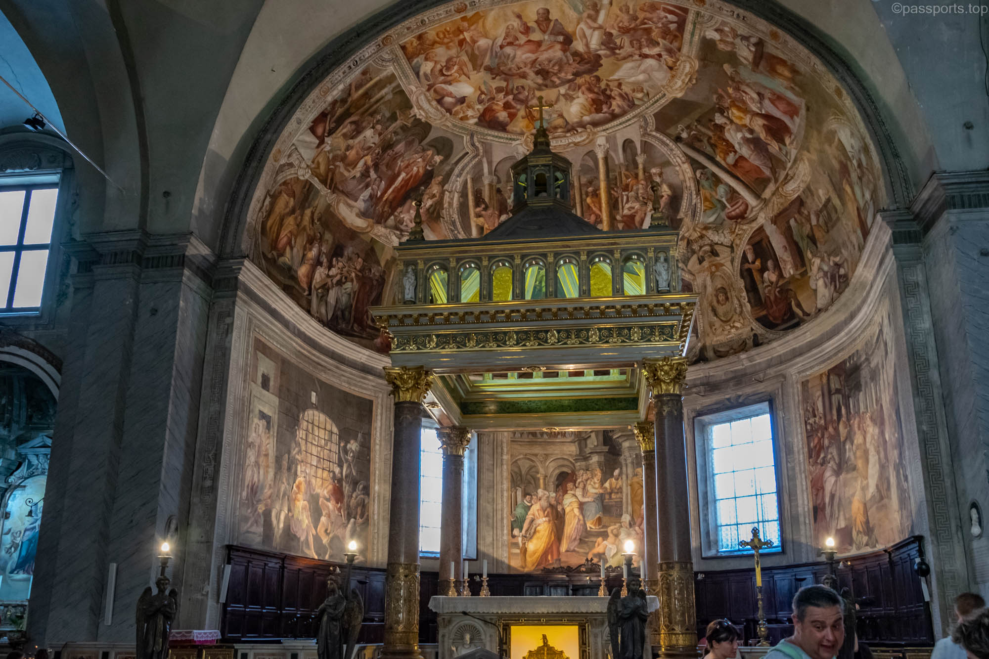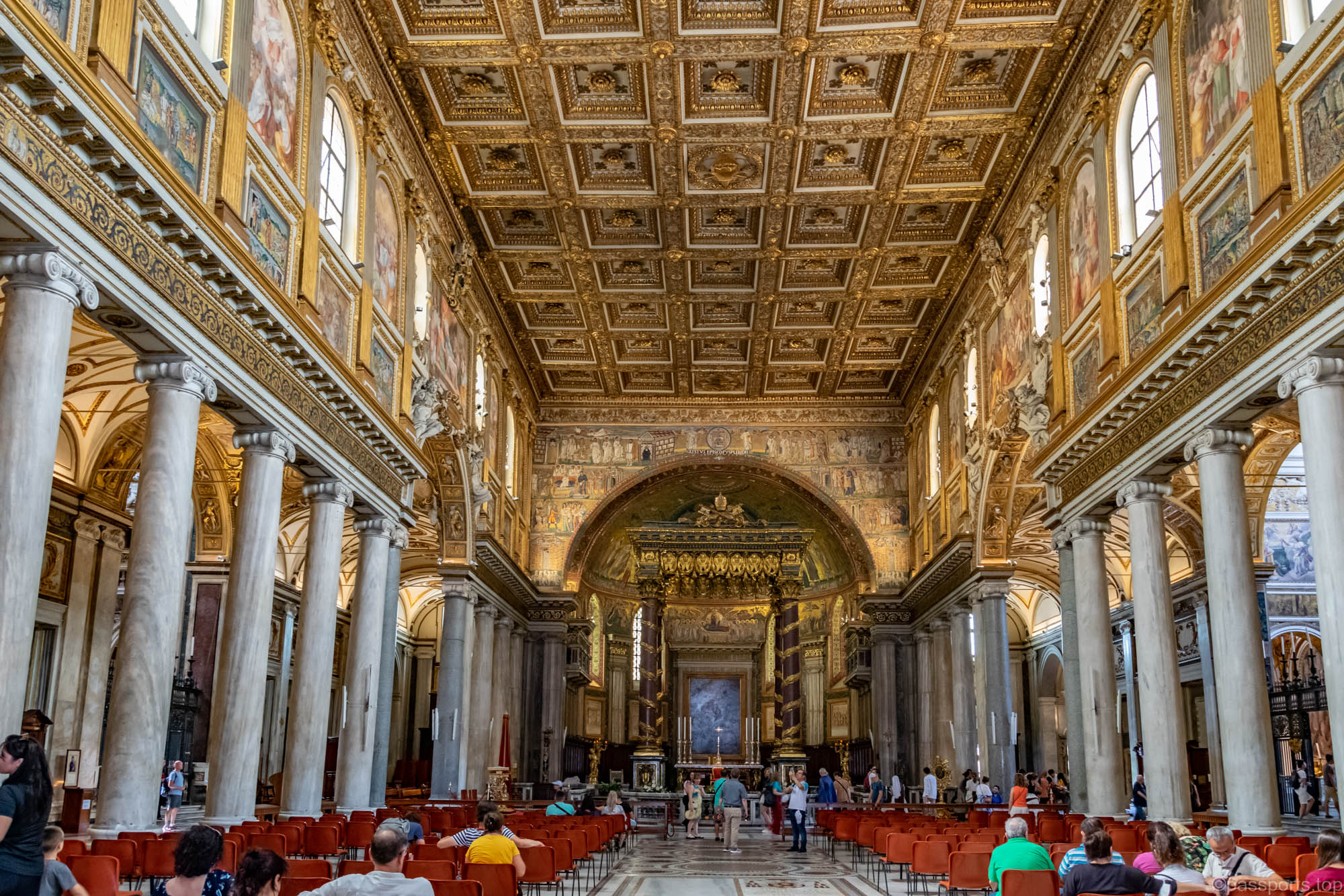 The first thing you notice when you enter is how vast and laden with works the place is. The grand ceiling was decorated with the first gold to reach Rome from the Americas, and the mosaics represent stories from the Old Testament, the first example of mosaics in Rome with both decorative and educational significance.