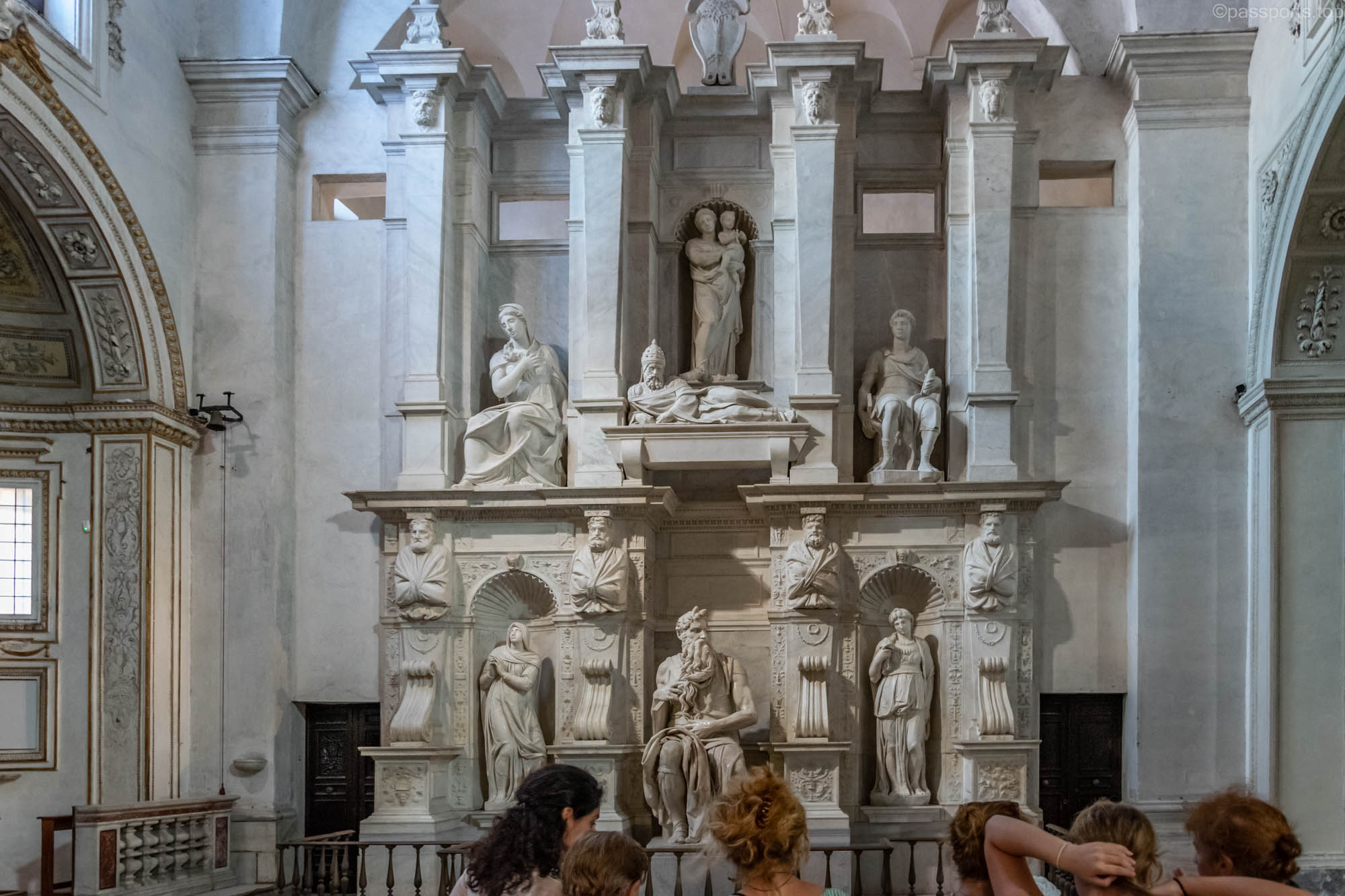 The basilica is also famous for one of the masterpieces of Renaissance art: Michelangelo Buonarroti‘s Moses. A colossal statue, sculpted in 1513, to adorn the funerary monument of Julius II. The work depicts Moses with the Tablets of the Law received from God.Â
