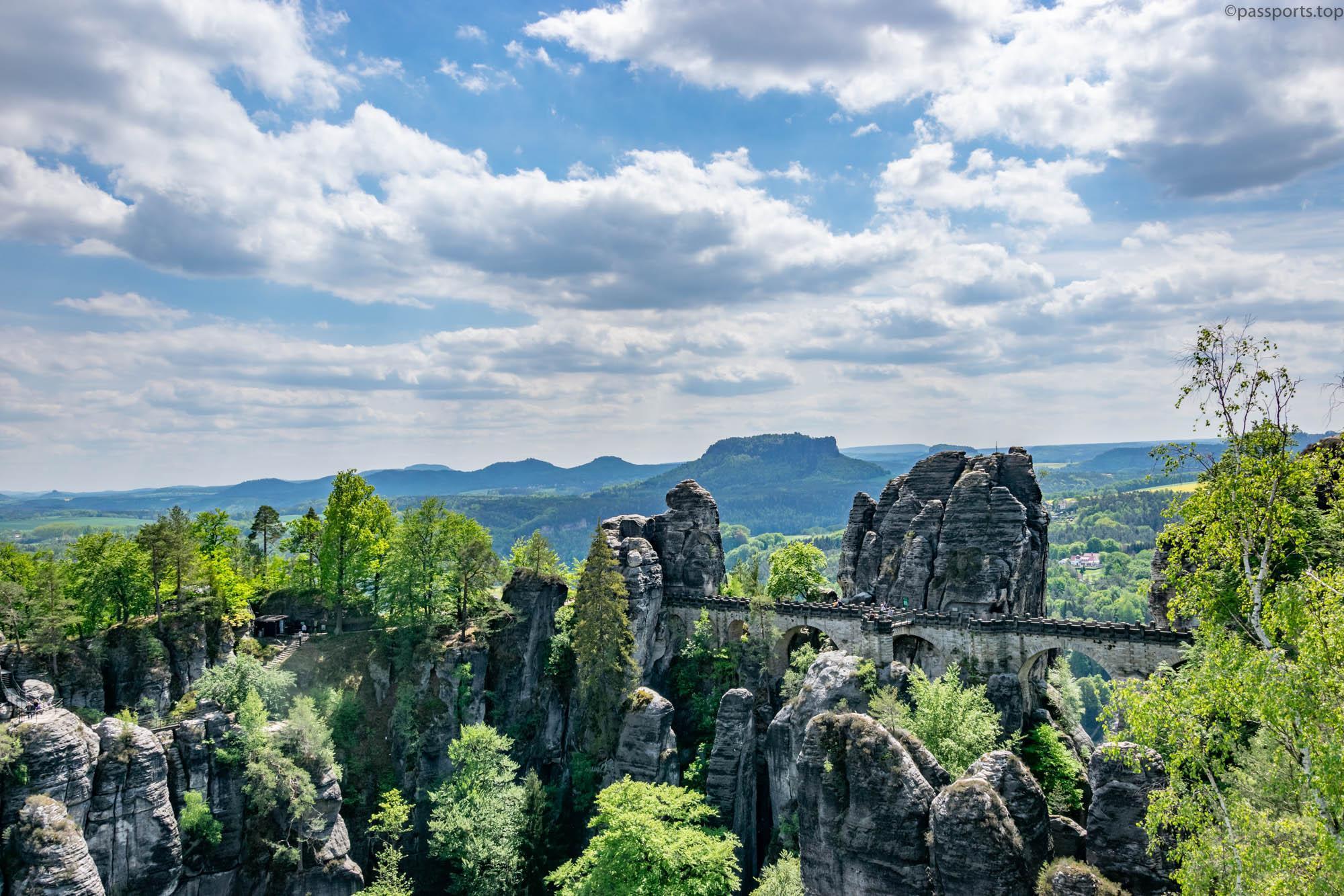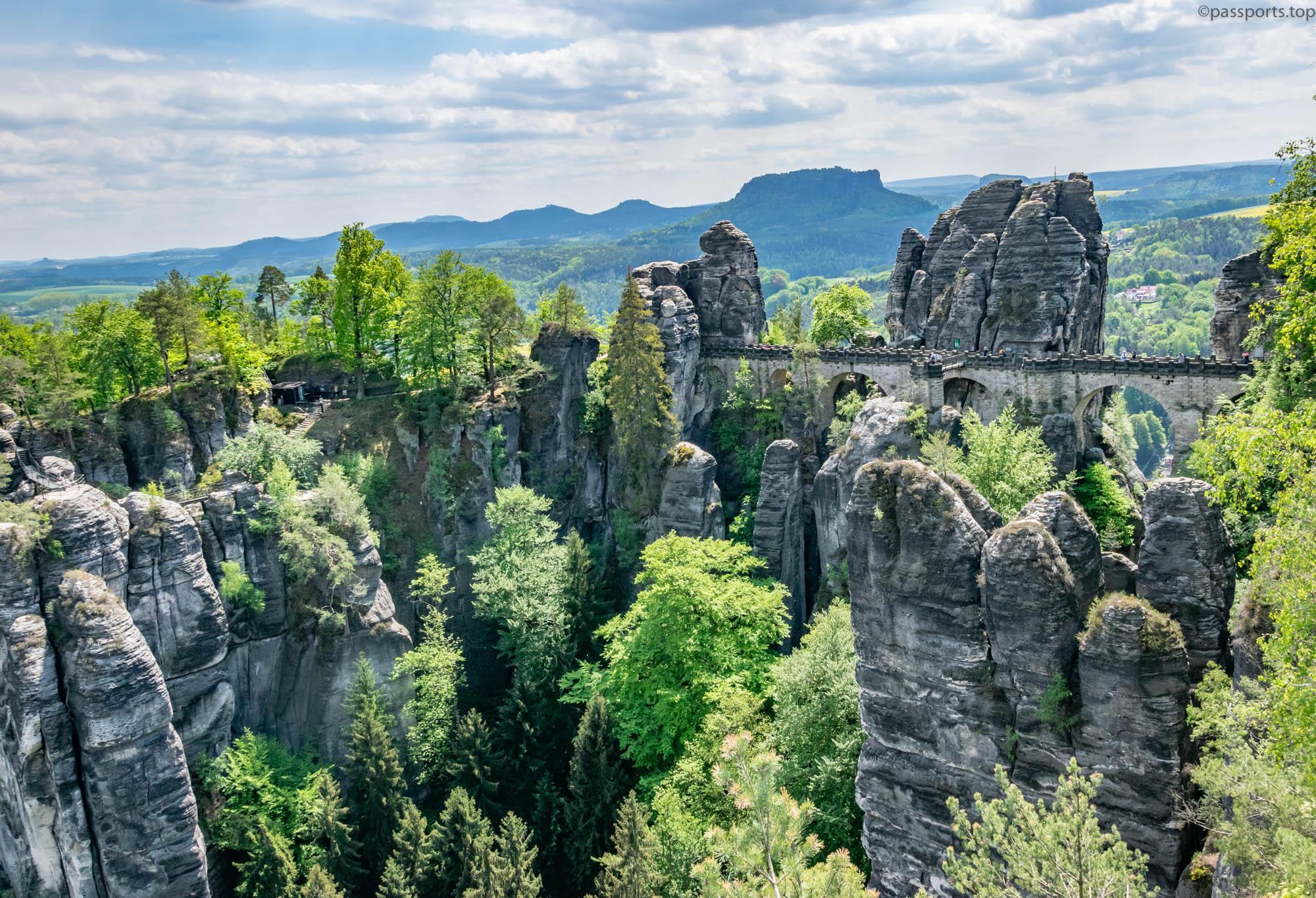 7. Bastei Bridge, Saxon Switzerland, Germany: ⦁ Built on rocks above the Elbe Canyon, it offers a spectacular panorama of the natural landscape of the Saxon Swiss National Park and the Elbe River. ⦁ Is a beautiful place to visit any time of year. In the winter, the snow-covered landscape creates a magical scene. ⦁ Its distinctive architecture and strategic positioning make the bridge a landmark for those visiting the Saxon Switzerland National Park.
