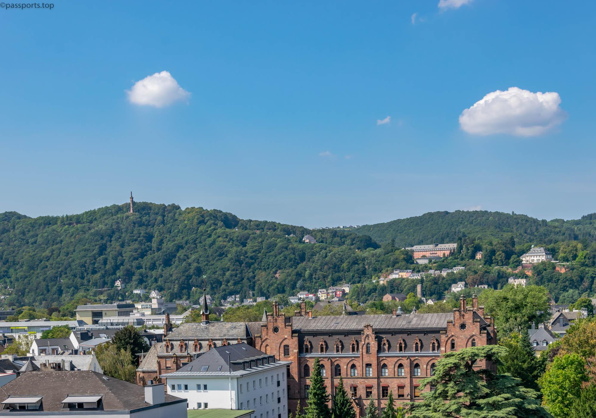 The Mariensäule is a statue depicting the Virgin Mary, located at a height of 300 meters above the Moselle. It is 40 meters high and some sandstone blocks from the Roman city wall were used in the construction, as a recognition of the Roman Catholic tradition.