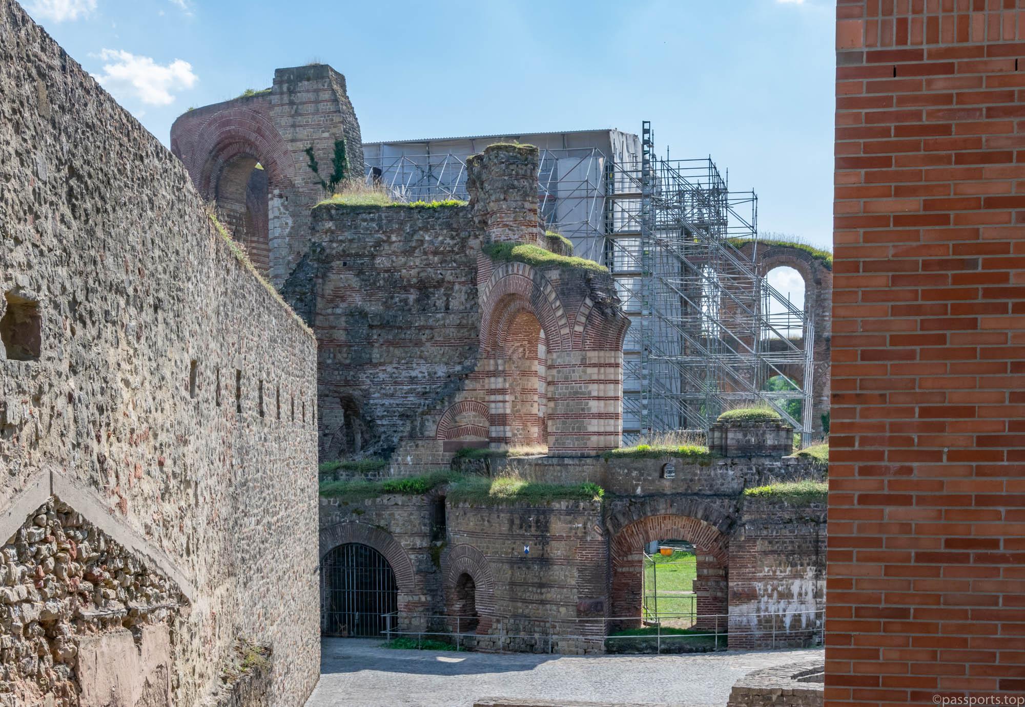 At the end of this complex of gardens are the ruins of the Imperial Baths (Kaiserthermen) – the well-preserved ruins of the Roman public baths, dating from the 4th century.
