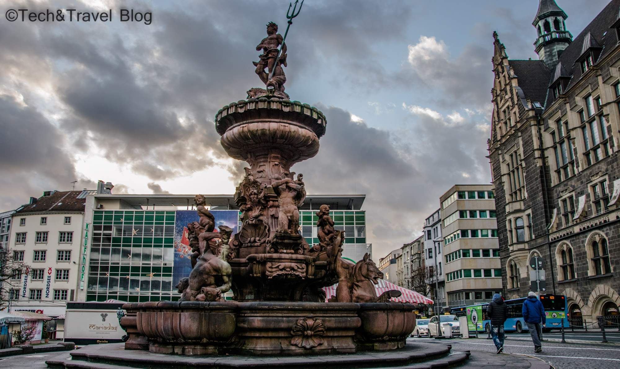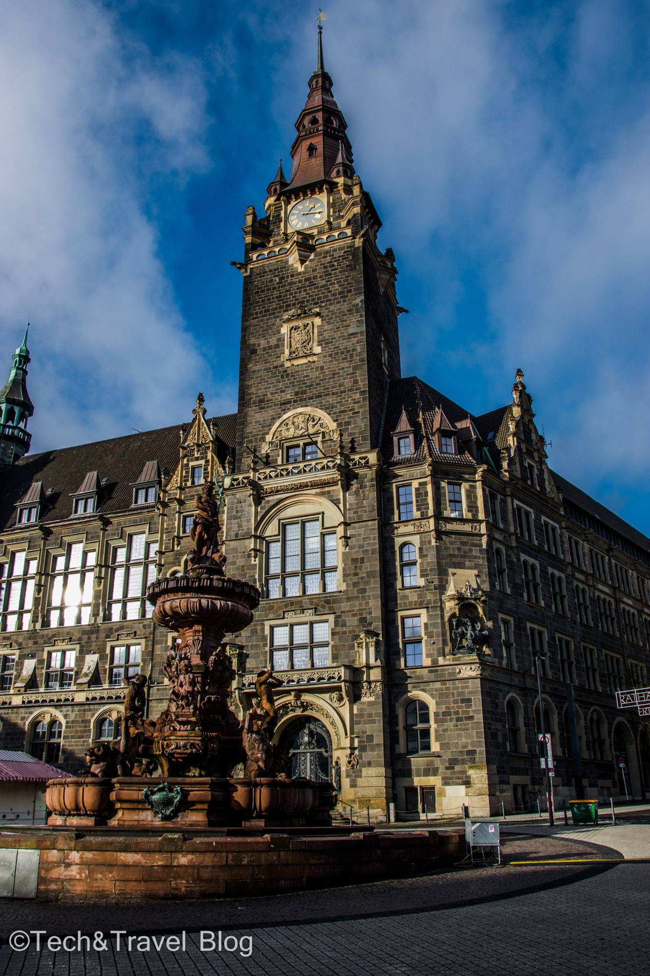 Another tourist attraction is the Neumarkt. There is the Elberfelder Rathaus (New Town Hall) â built in 1895; Jubiläumsbrunnen (Neptune’s Fountain) â a fountain with a height of 11.5 meters, built of red sandstone, being a replica of Neptune‘s fountain in the Cathedral Square of Trento (Italy); Von der Heydt Museum â art museum that includes an impressively large collection, ranging from the beginning of the 16th century to contemporary art; Wuppertaler Uhrenmuseum (Clock Museum) â contains over 2,000 clocks, pendulums, hourglasses from different time periods, the oldest being 5000 years ago.