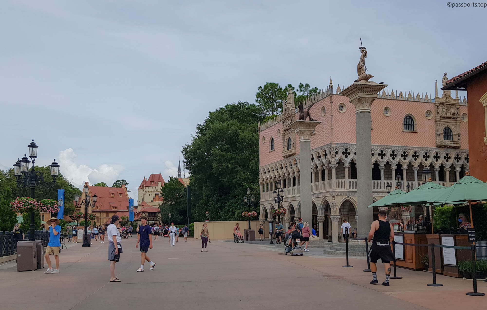 În zona World Showcase se găsesc restaurante cu specific și magazine cu suveniruri și obiecte specifice fiecărei țări.