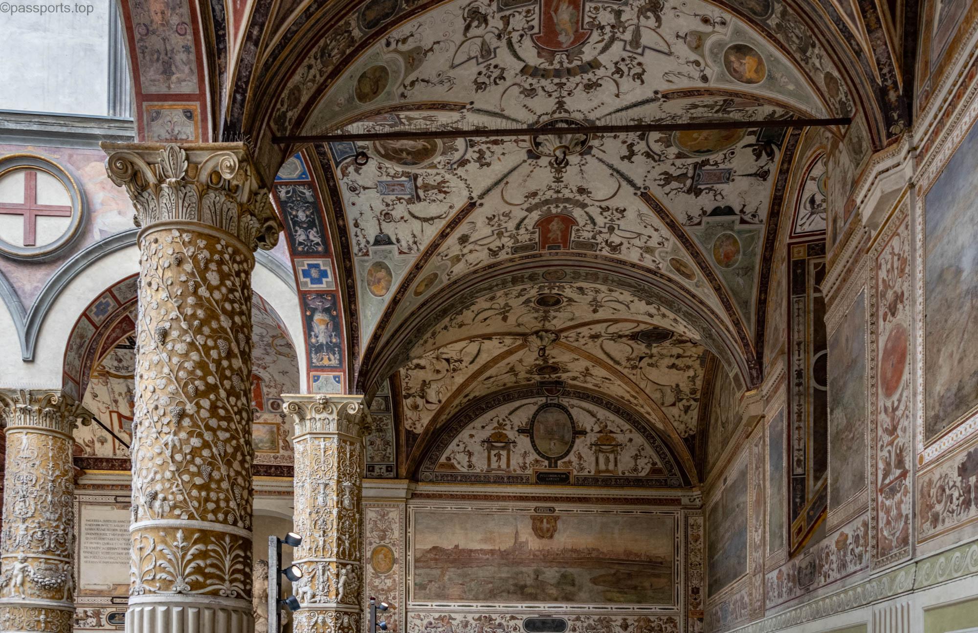 De-a lungul podului, deasupra magazinelor, se află Coridorul Vasari, construit de familia de Medici, care face legătura între Palazzo Pitti și Palazzo Vecchio, trecând prin Galleria Uffizi.