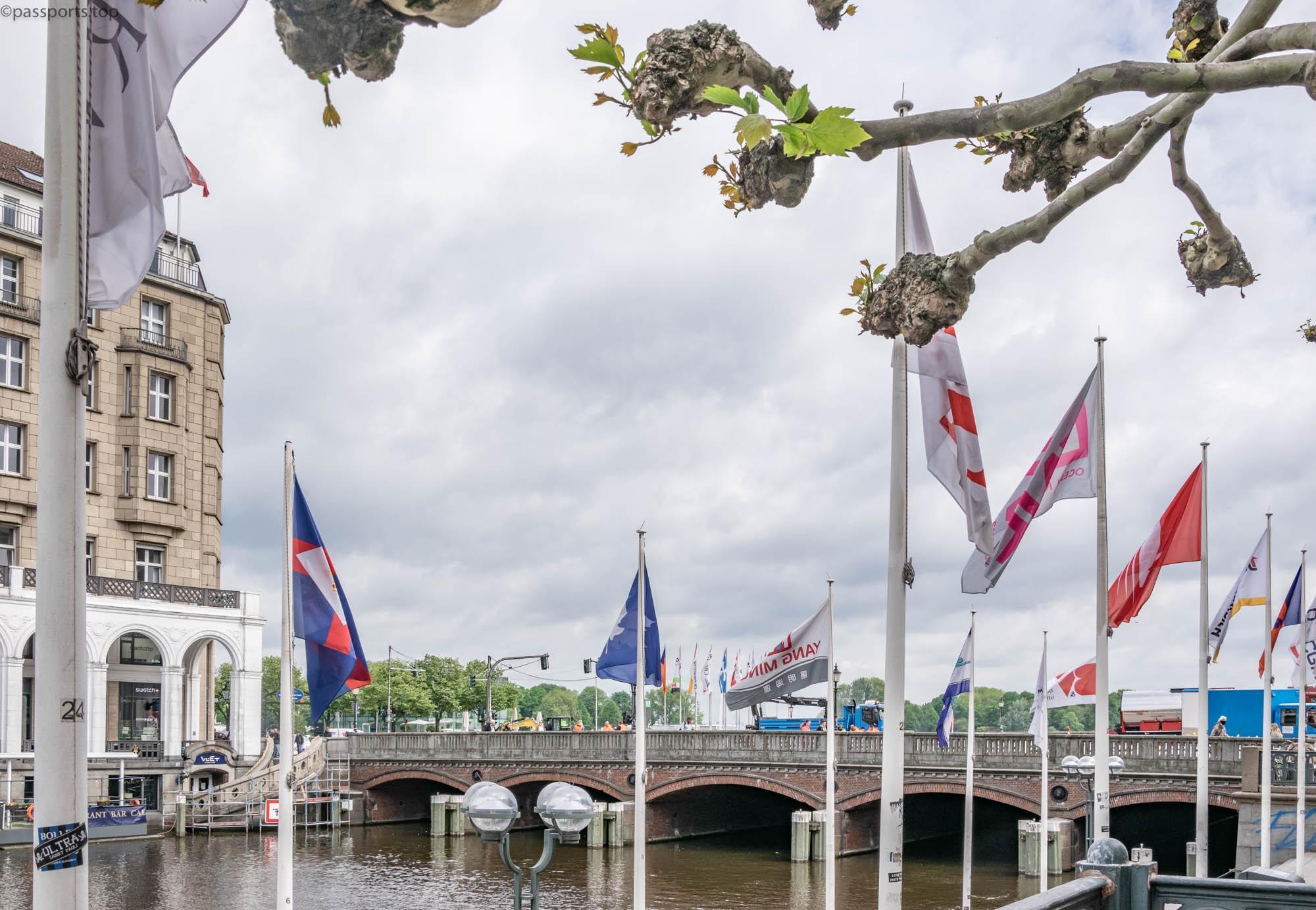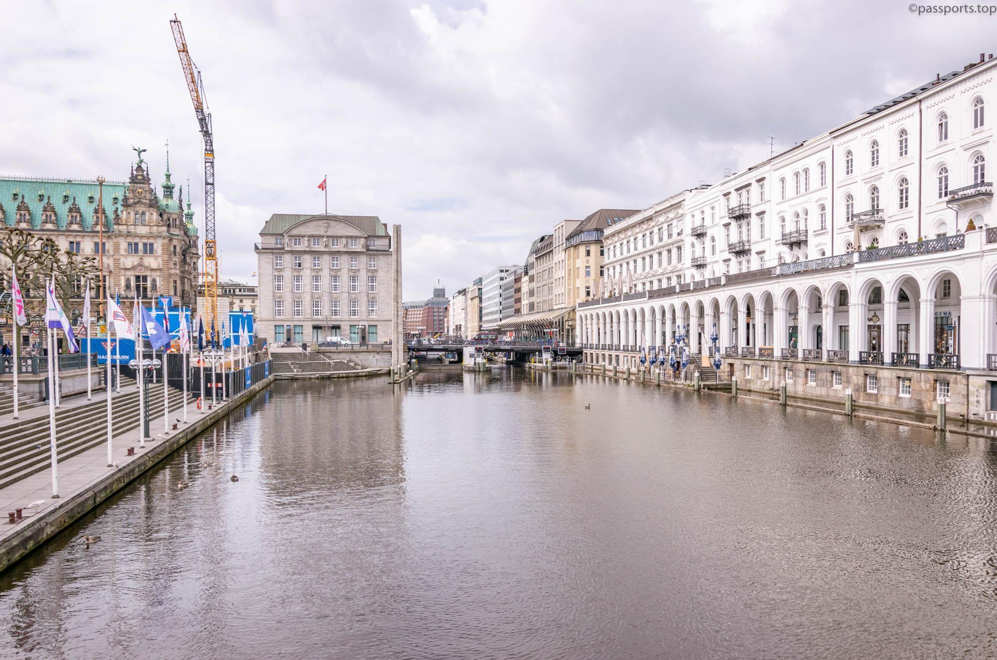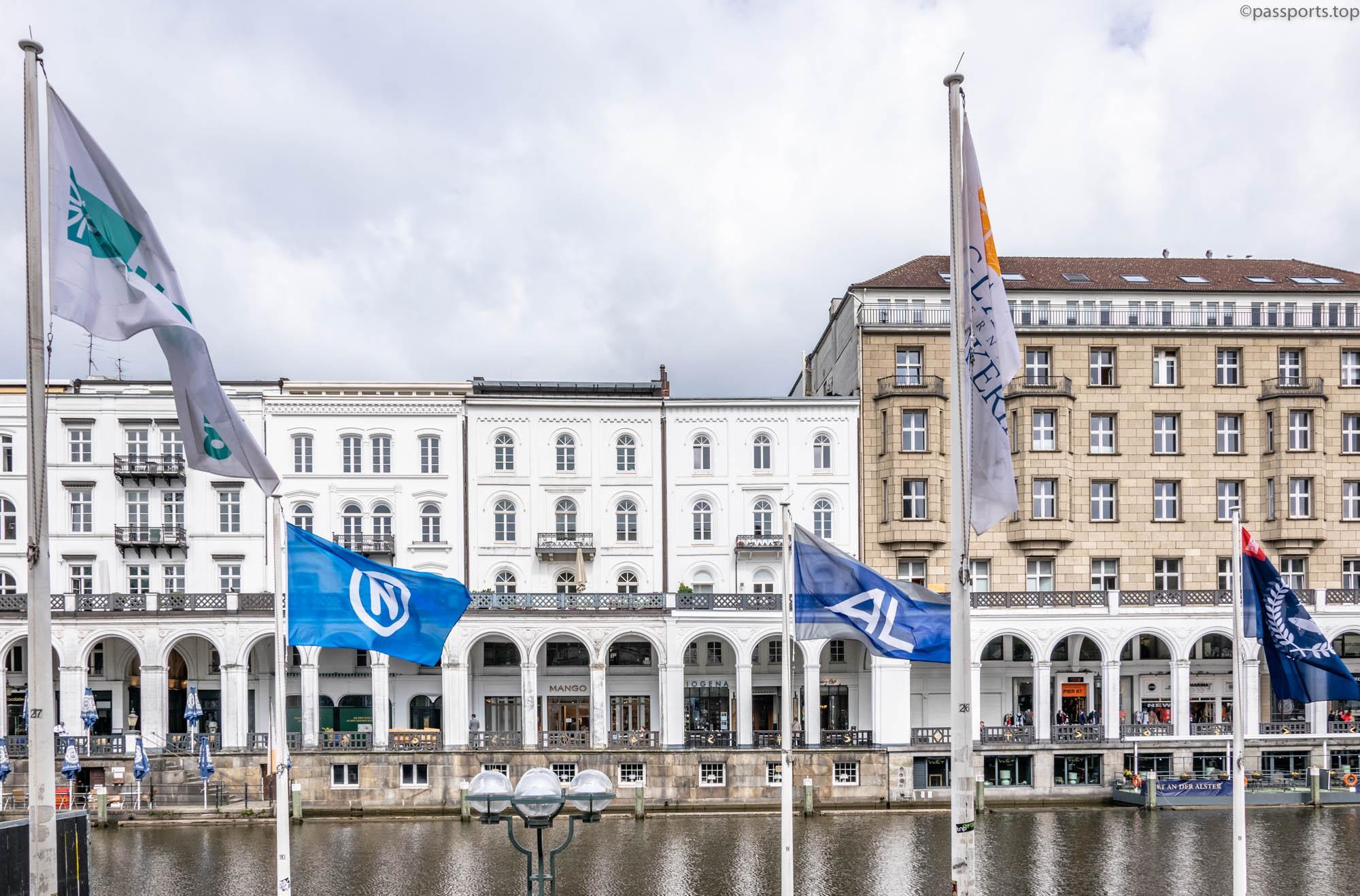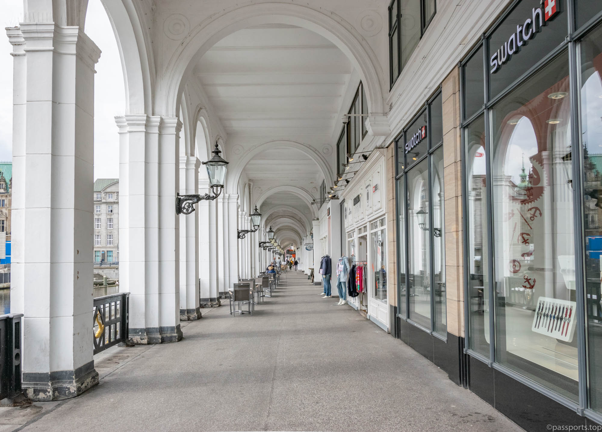 De la Primărie, am mers prin Rathausmarkt (Piața Primăriei) și pe străduțele înguste spre Alsterarkaden (Arcadele Alster) care, împreună cu Pasajul Mellin, sunt printre cele mai vechi zone comerciale și de promenadă din oraș. Arcadele albe și terasele pitorești emană un fler venețian chiar în centrul Hamburgului.