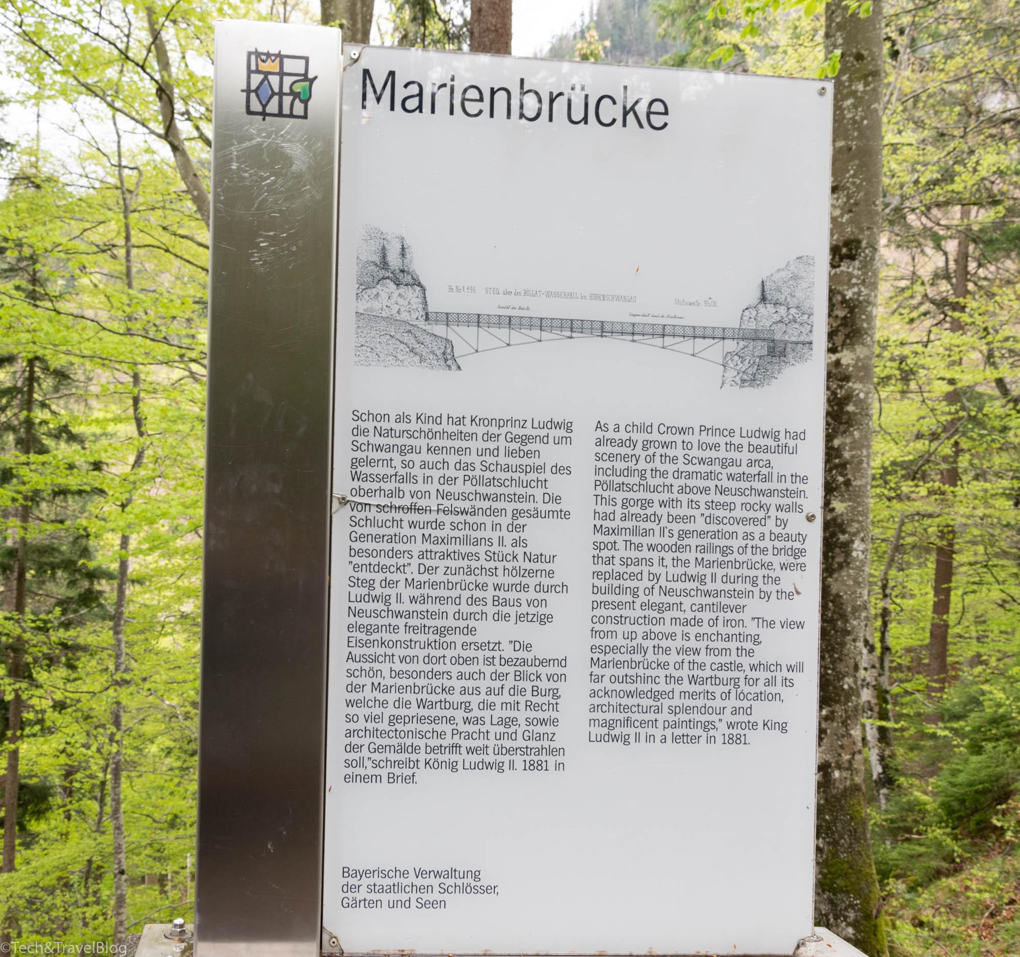 De la castel se ajunge la Marienbrücke – locul perfect de fotografiat și admirat castelul în toată splendoarea lui – un pod de lemn, construit deasupra unei cascade de 45 de metri de unde puteți pleca cu una dintre cele mai frumoase panorame asupra Alpilor bavarezi.