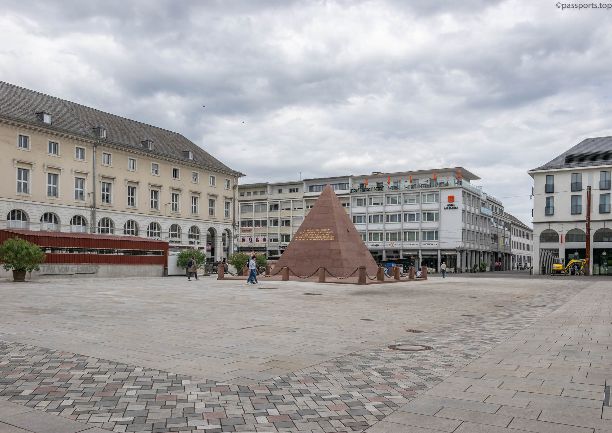 În Marktplatz se află și unul dintre identificatorii orașului Karlsruhe – Piramida care adăpostește mormântul lui Karl III Wilhelm. Considerată a fi a doua emblemă a orașului, după castel, piramida a fost costruită din gresie roșie și are o înălțime de 6,5 metri, fiind inspirată din arhitectura renascentistă egipteană.