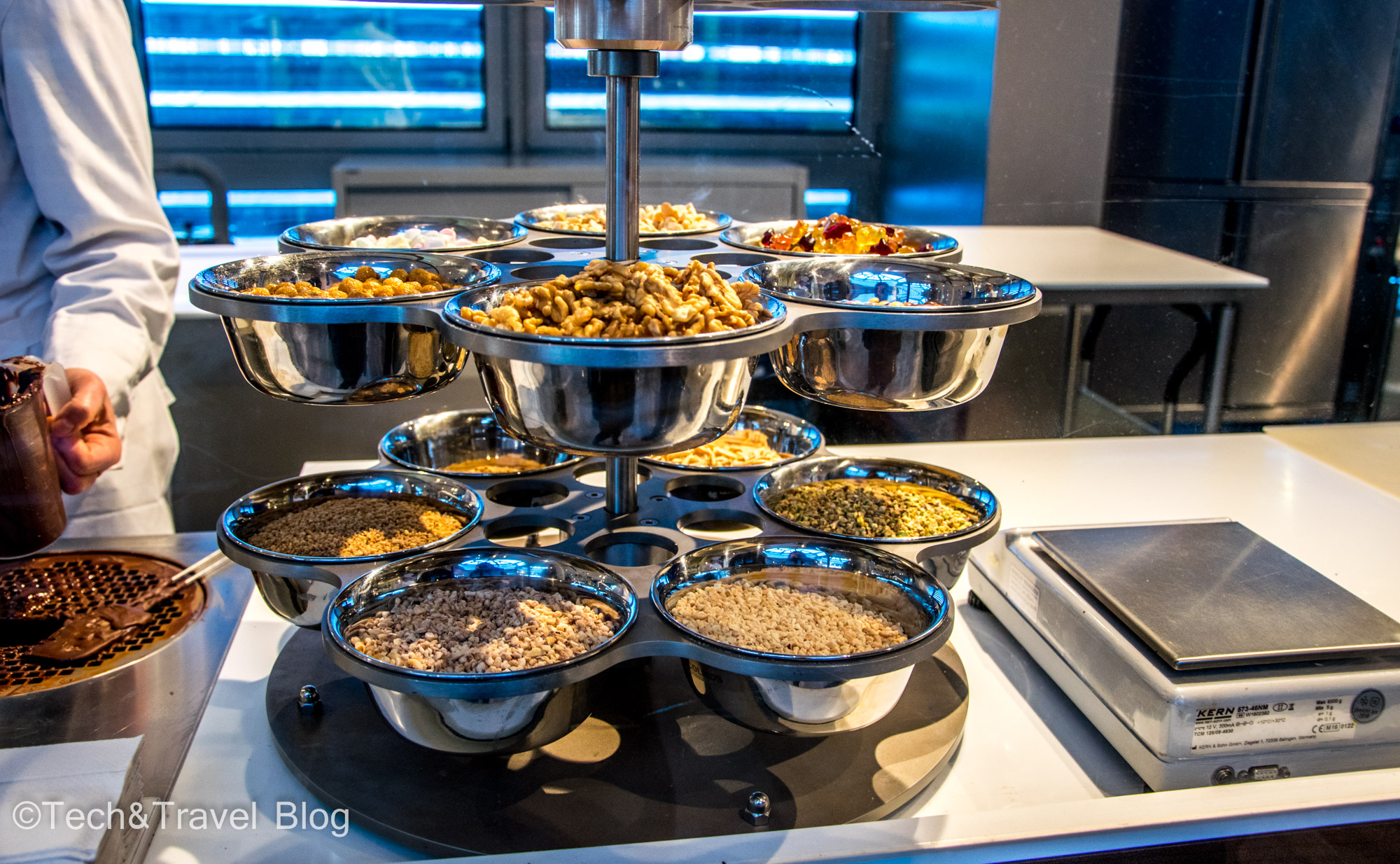 De asemenea, vă puteți crea rețeta pentru propria ciocolată, contra cost bineînțeles. Completați o fișă în care alegeți tipul de ciocolată dorit (albă, cu lapte sau amăruie) și 4 ingrediente dintre fructe, alune, nuci, fistic, jeleuri sau piper cayenne, iar apoi așteptați între 35 de minute și o oră, în funcție de numărul cererilor. Ciocolata este făcută sub ochii voștri și apoi este lăsată la frigider pentru a se întări. Eu zic că merită atât banii, cât și timpul pe care îl așteptați până o să fie gata. Biletul a costat 6,5€/persoană (preț redus cu Köln Card).