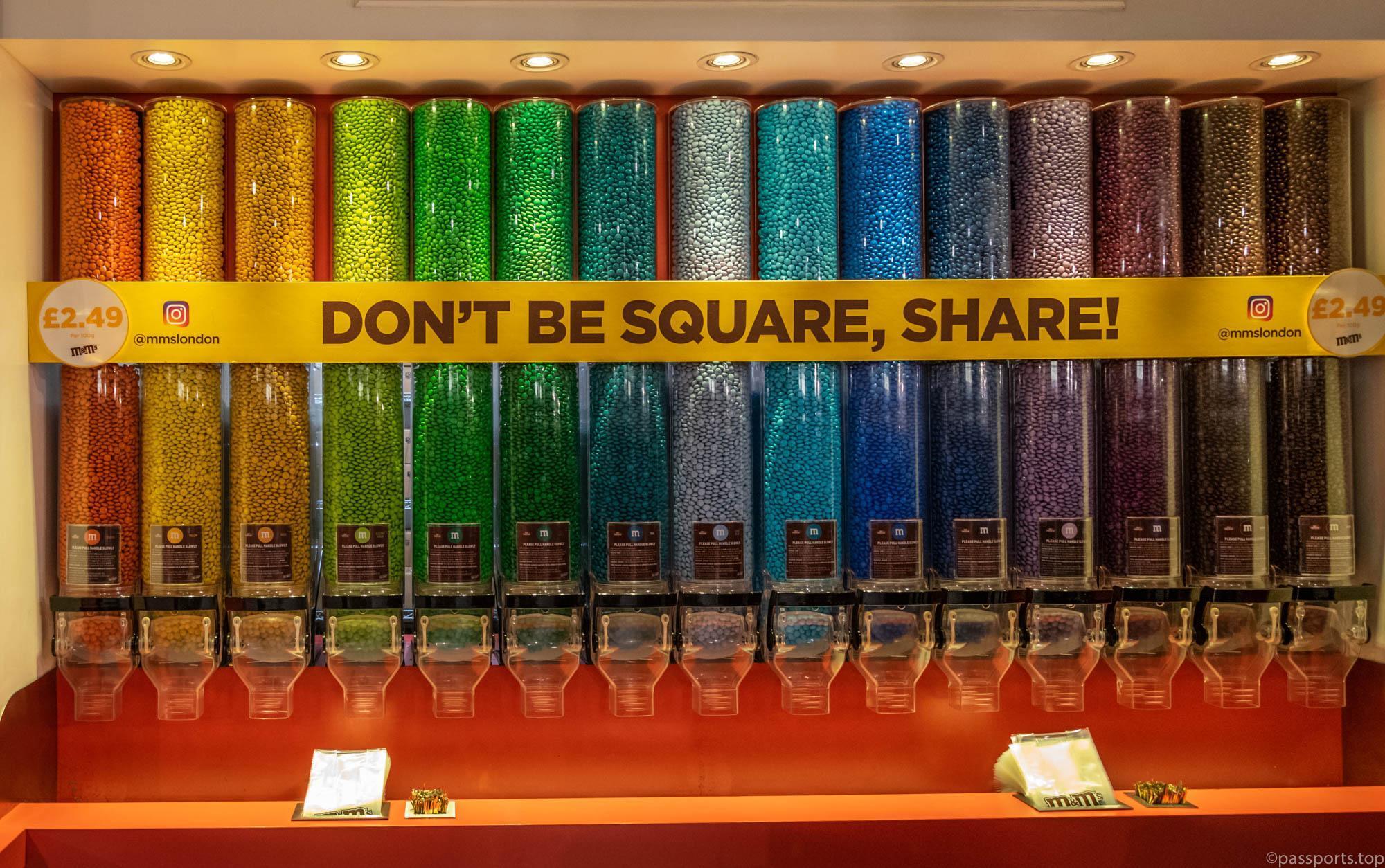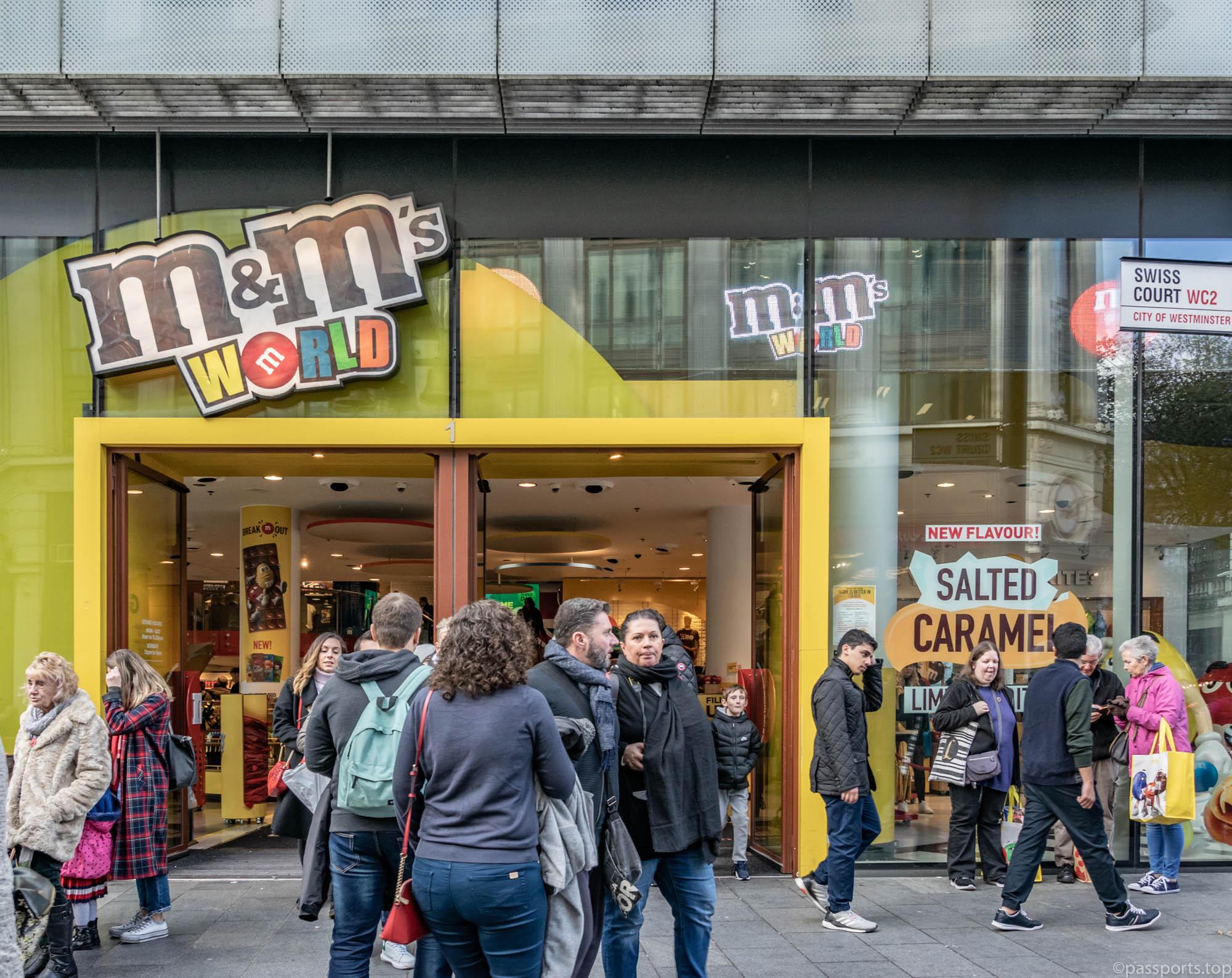 M&M’s World se află în inima pieței Leicester și este cel mai mare magazin de bomboane din lume, cu o suprafață de 35.000 de metri pătrați. Întins pe patru etaje, M&M’s World are cel mai mare perete de bomboane de ciocolată, cu o selecție de peste 100 de tipuri M&M’s.